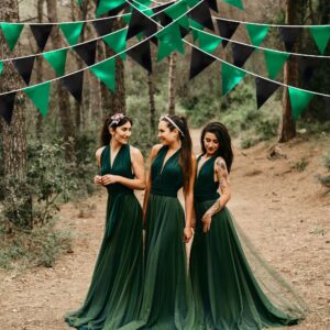 PartyDecorpro Black Green Party Decorations: Metallic Fabric Triangle Pennant Banner Flag