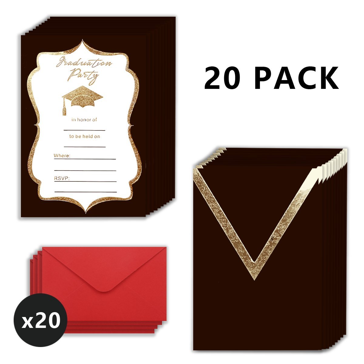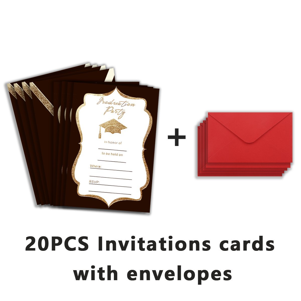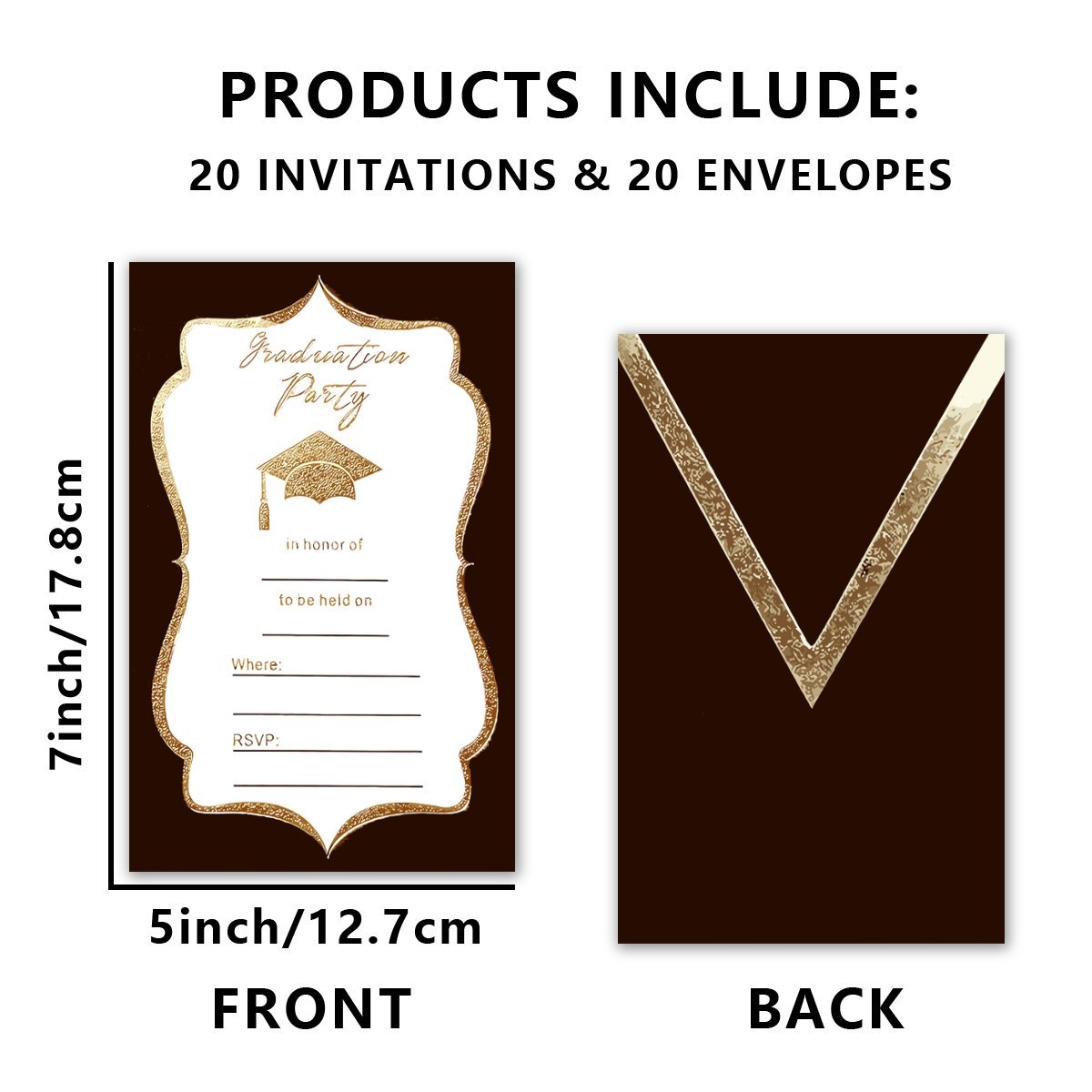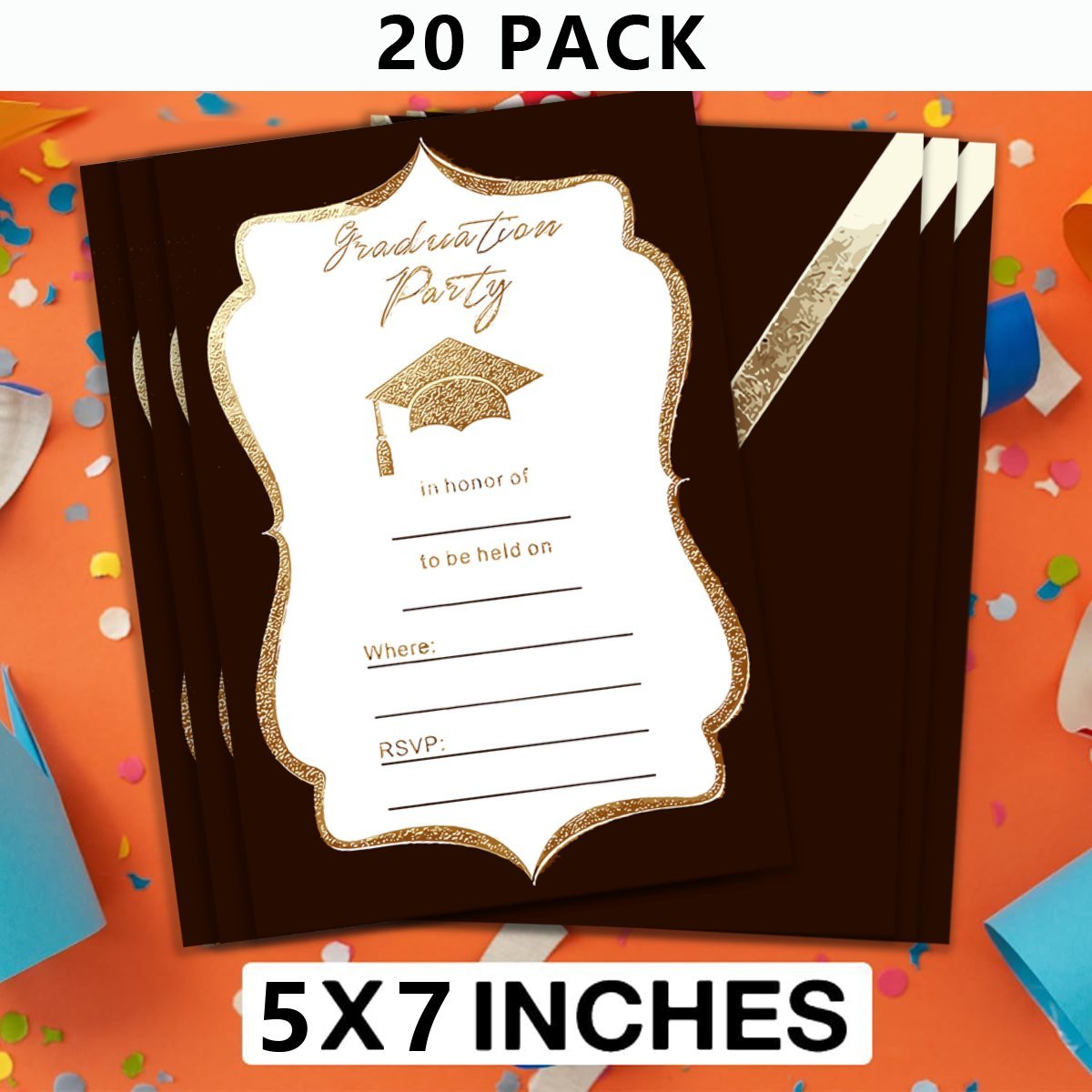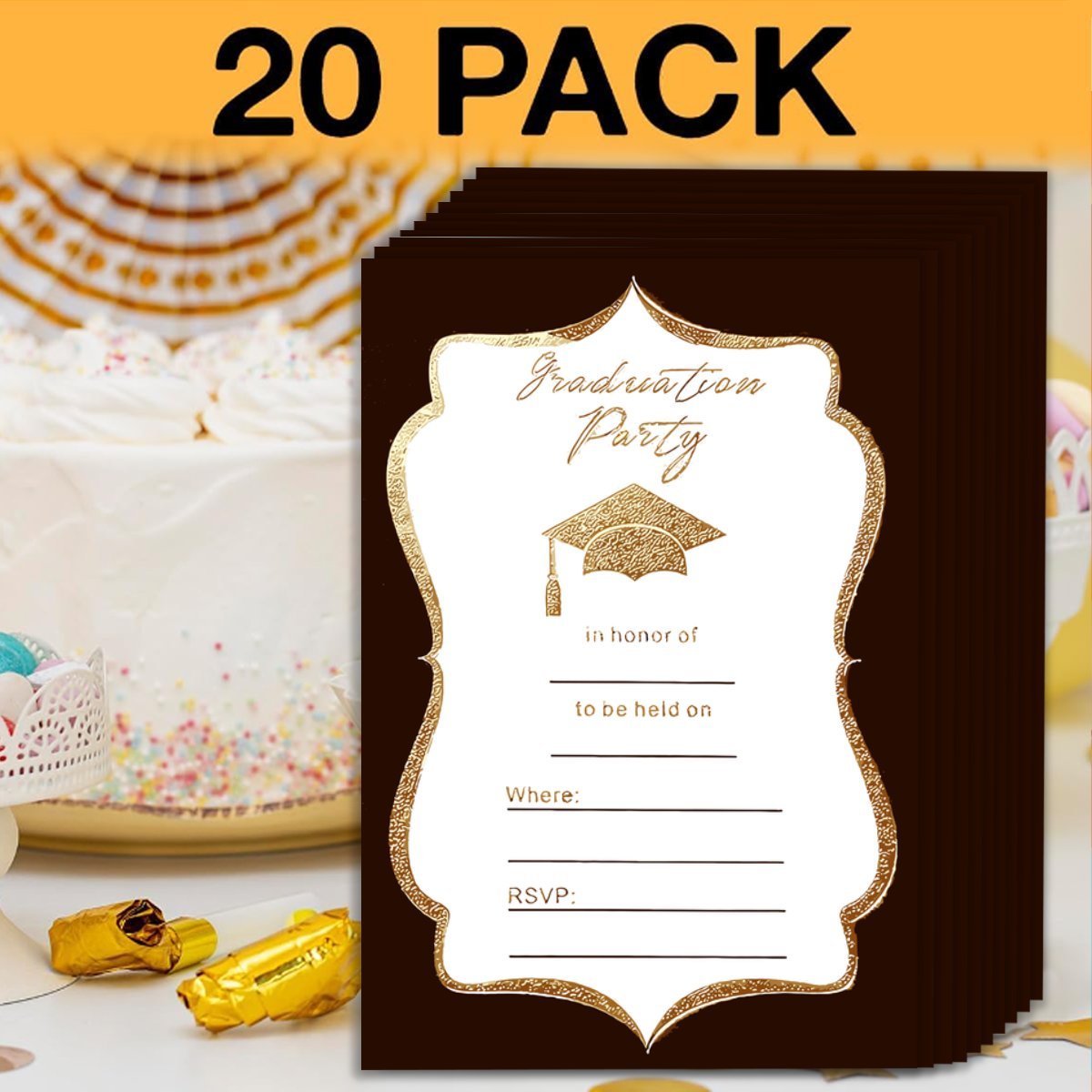 PartyDecorpro Graduation Invitation Cards with Red Envelopes – Elegant golden & brown fill-in style for high school/college grads. 20pcs premium paper set, 5×7 inches. Perfect graduation gift. As a leading Graduation Cards Manufacturer, we offer B2B wholesale and College Graduation Party Invites Custom options, including Bulk Graduation Invitations OEM per client requirements.