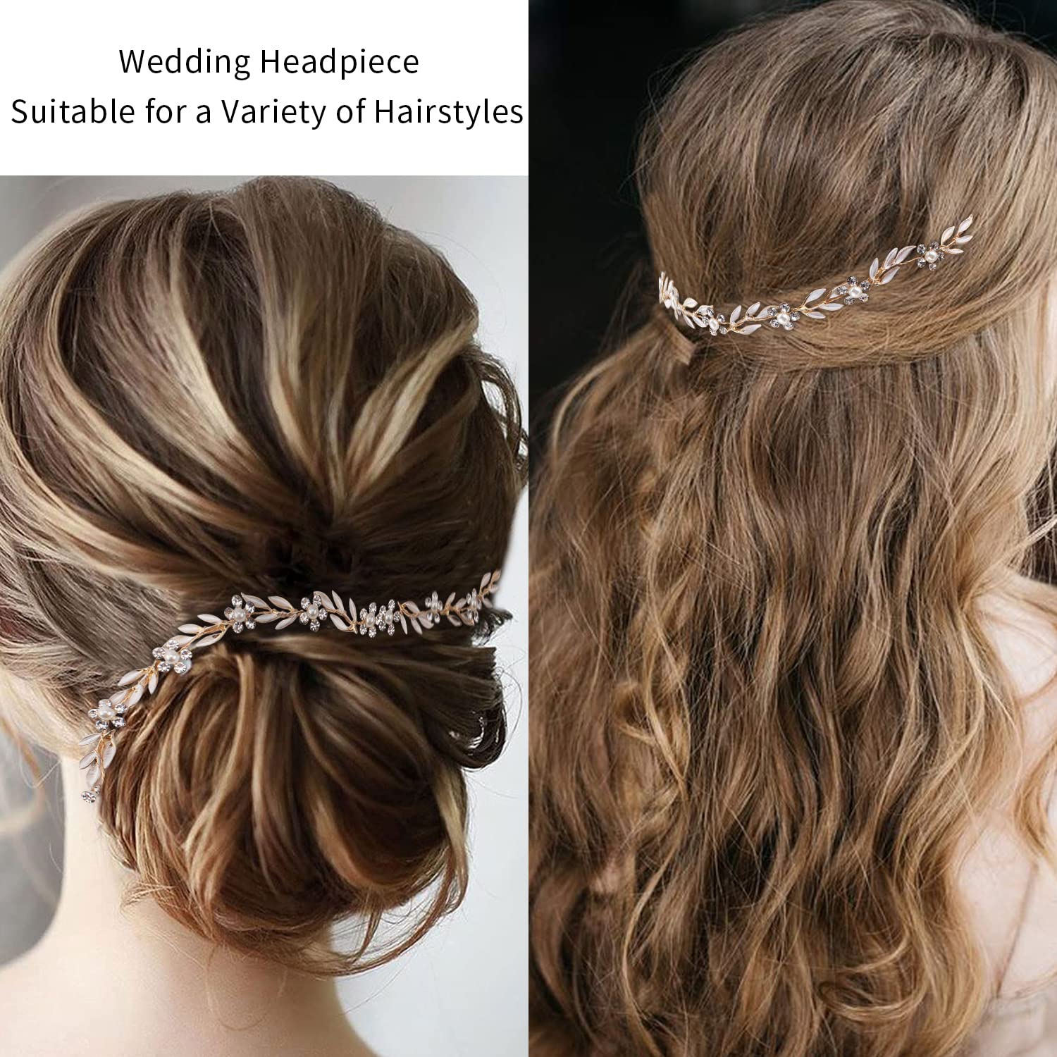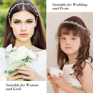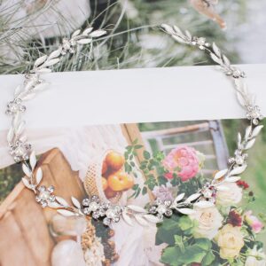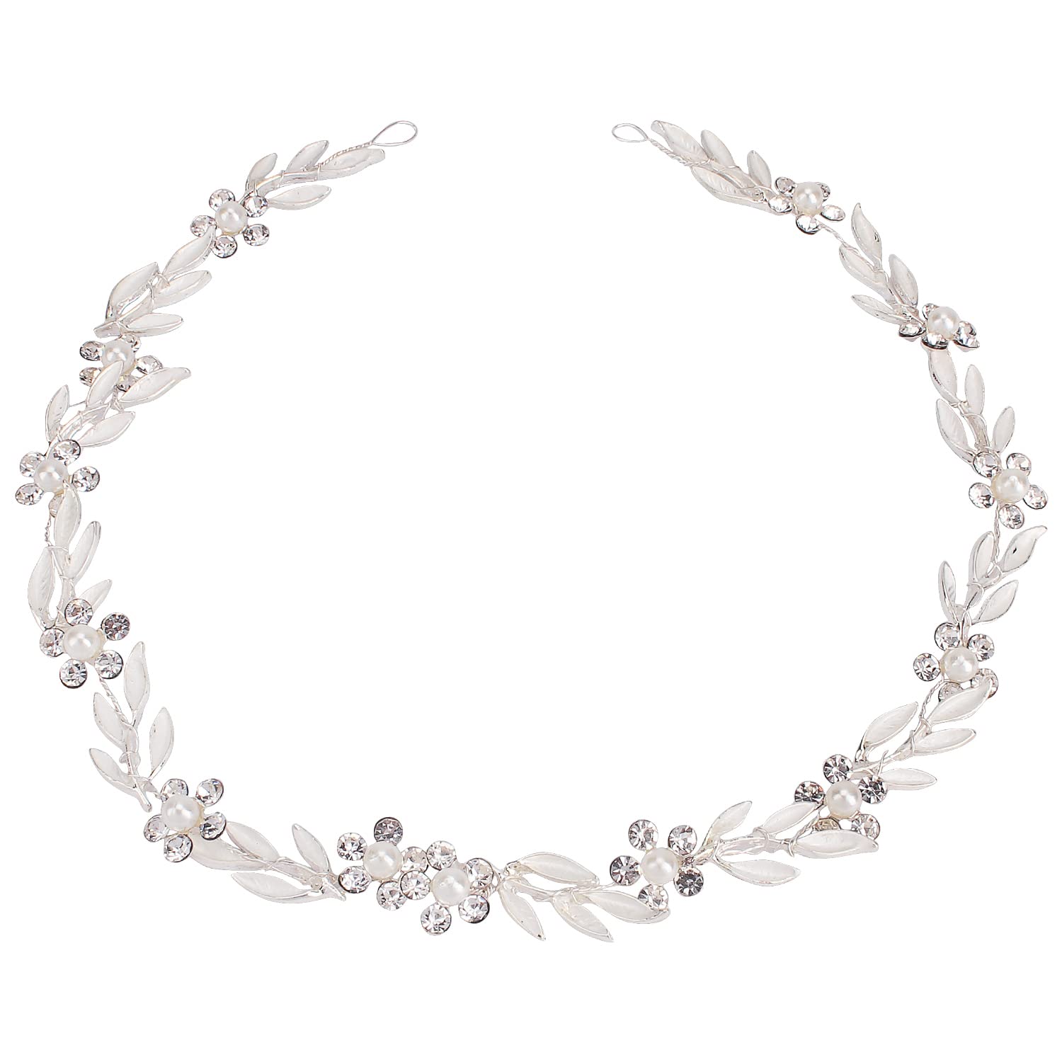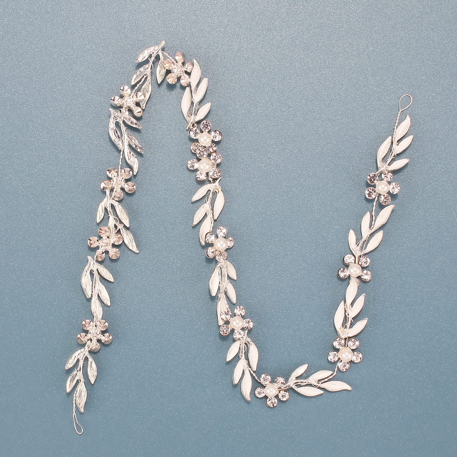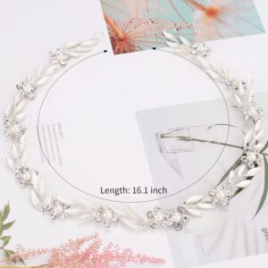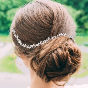 Bridal Leaf Pearl Crystal Hair Vine Headband with Flowers