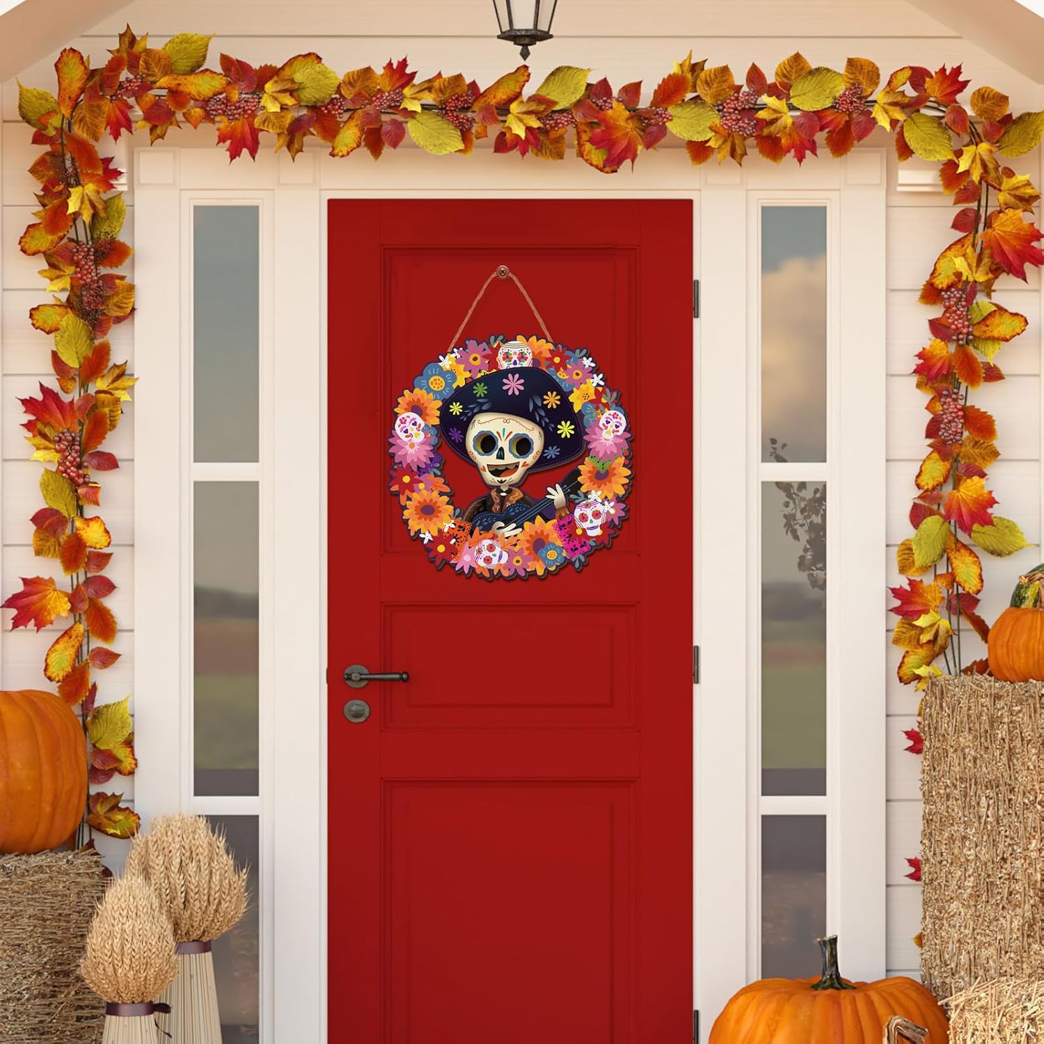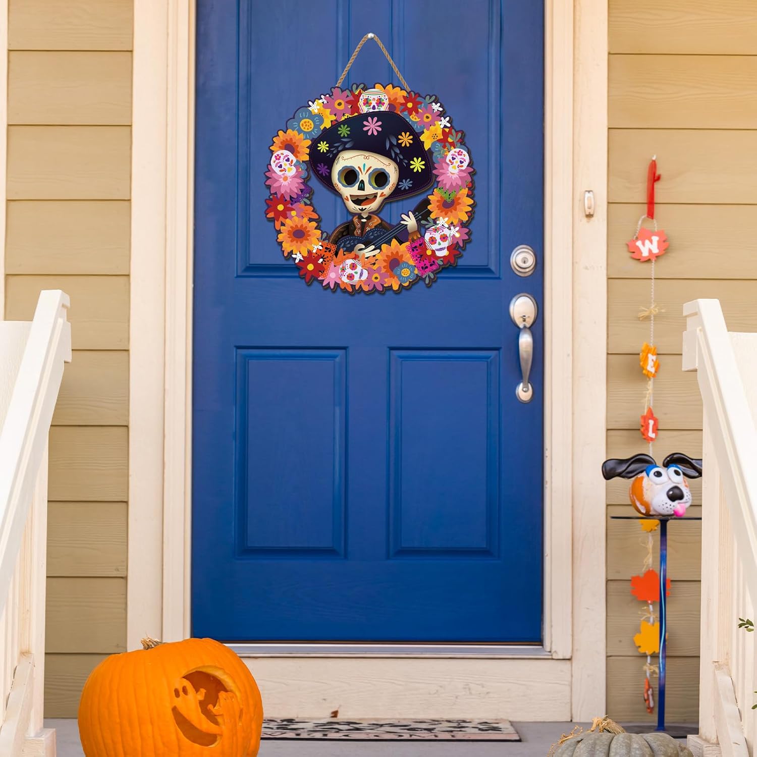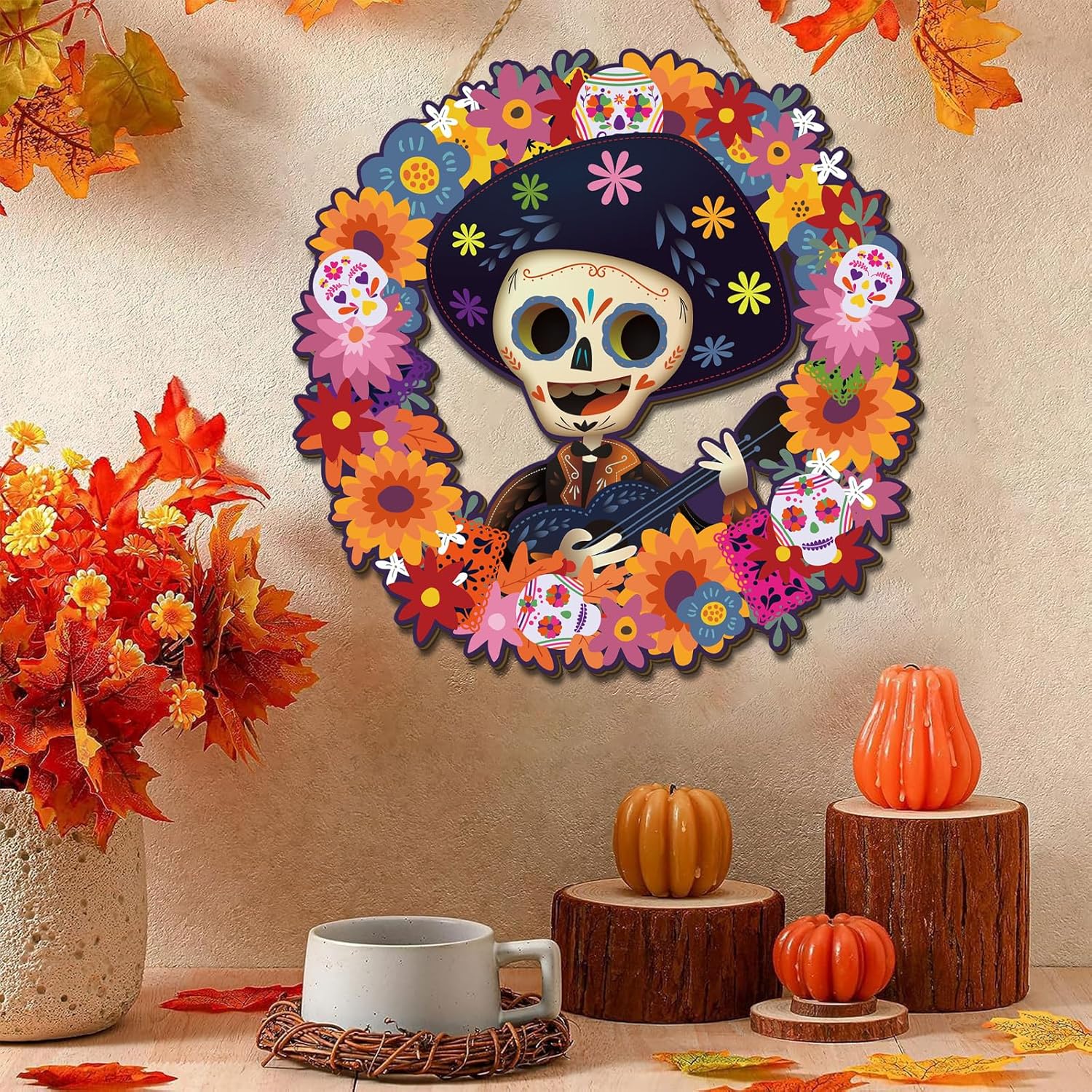 Day of the Dead Wooden Door Sign – Bulk Wall Decor Wholesale Sugar Skull Wreath