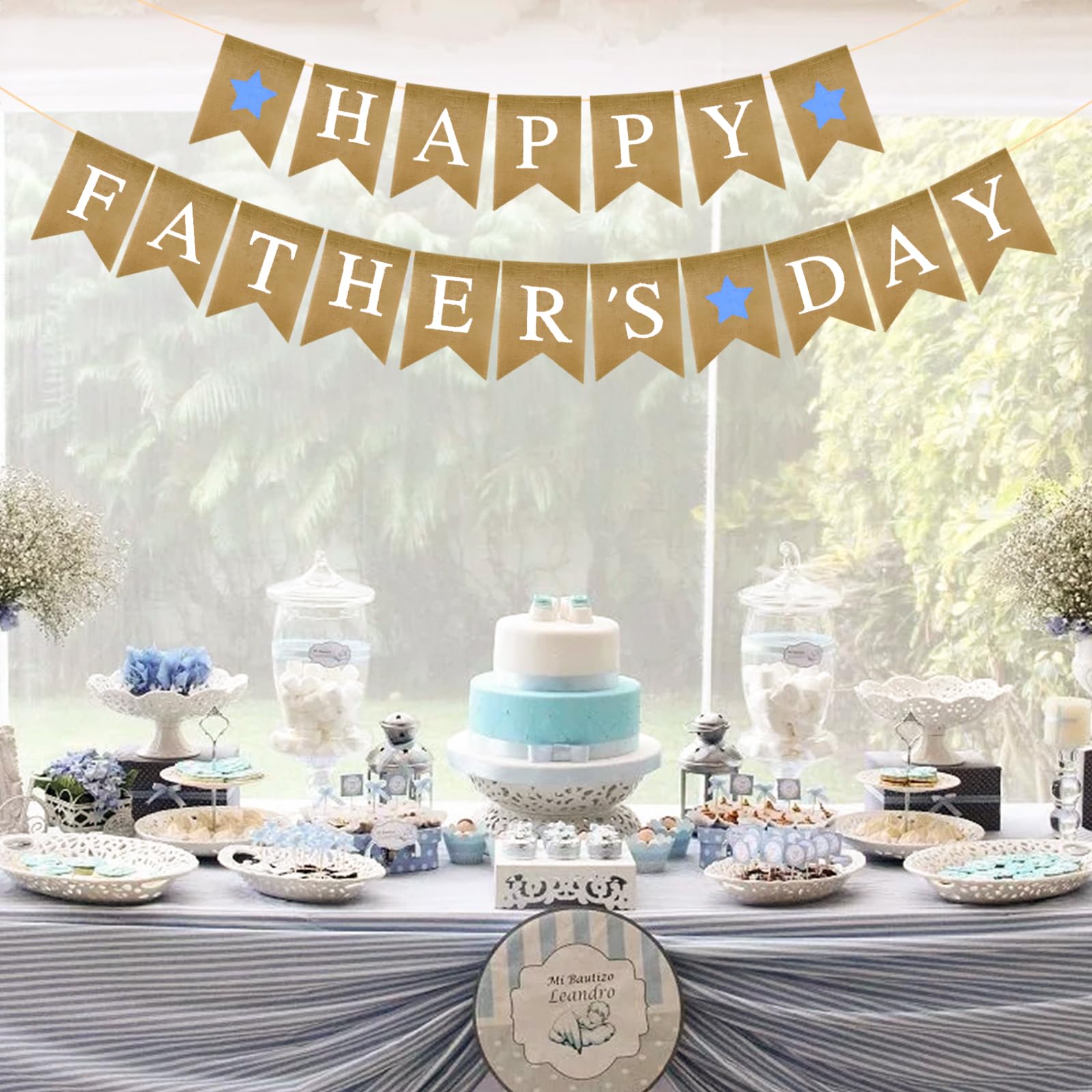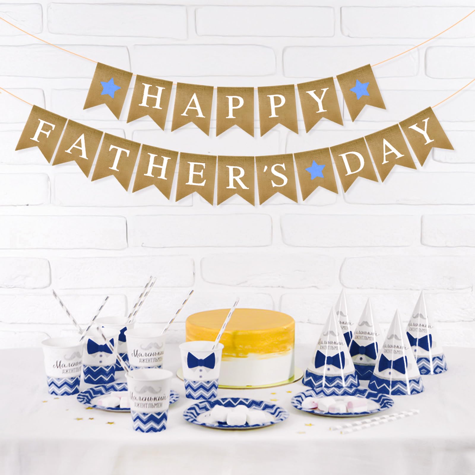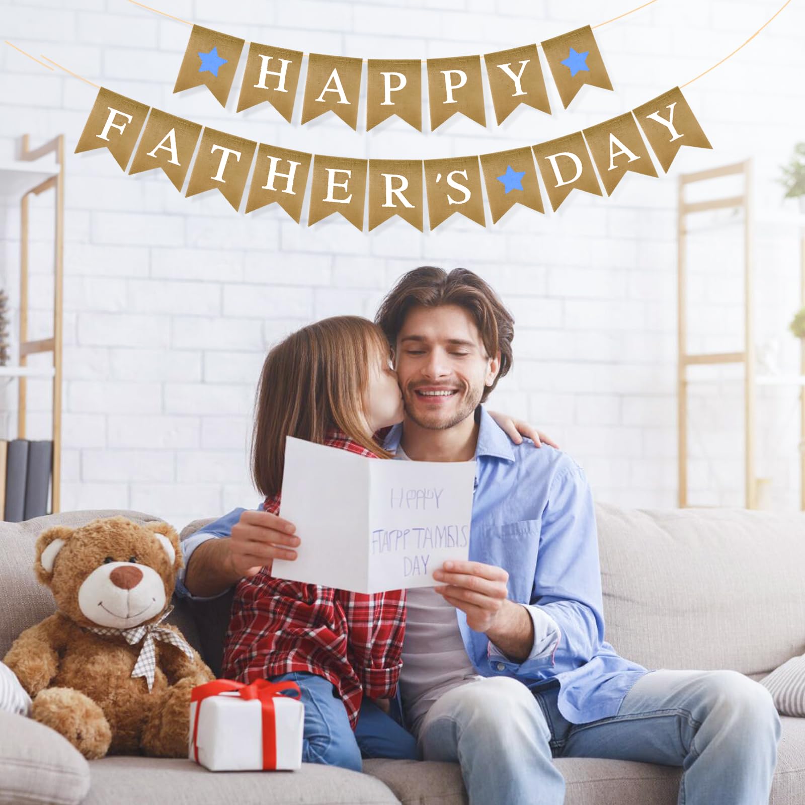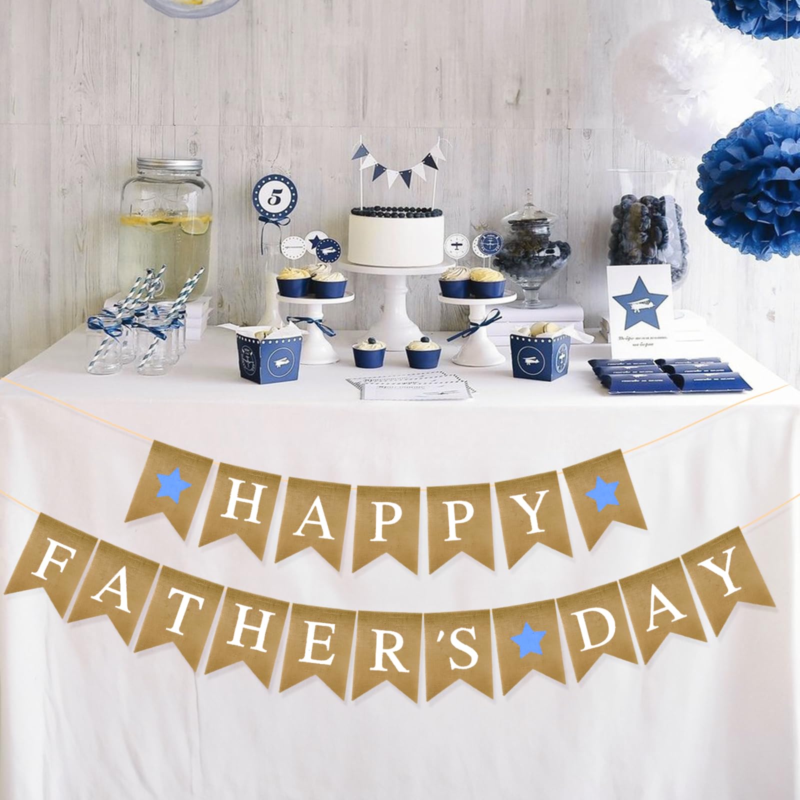 PartyDecorpro Father’s Day Burlap Banner: Pre-strung Happy Father’s Day Hanging Decorations