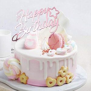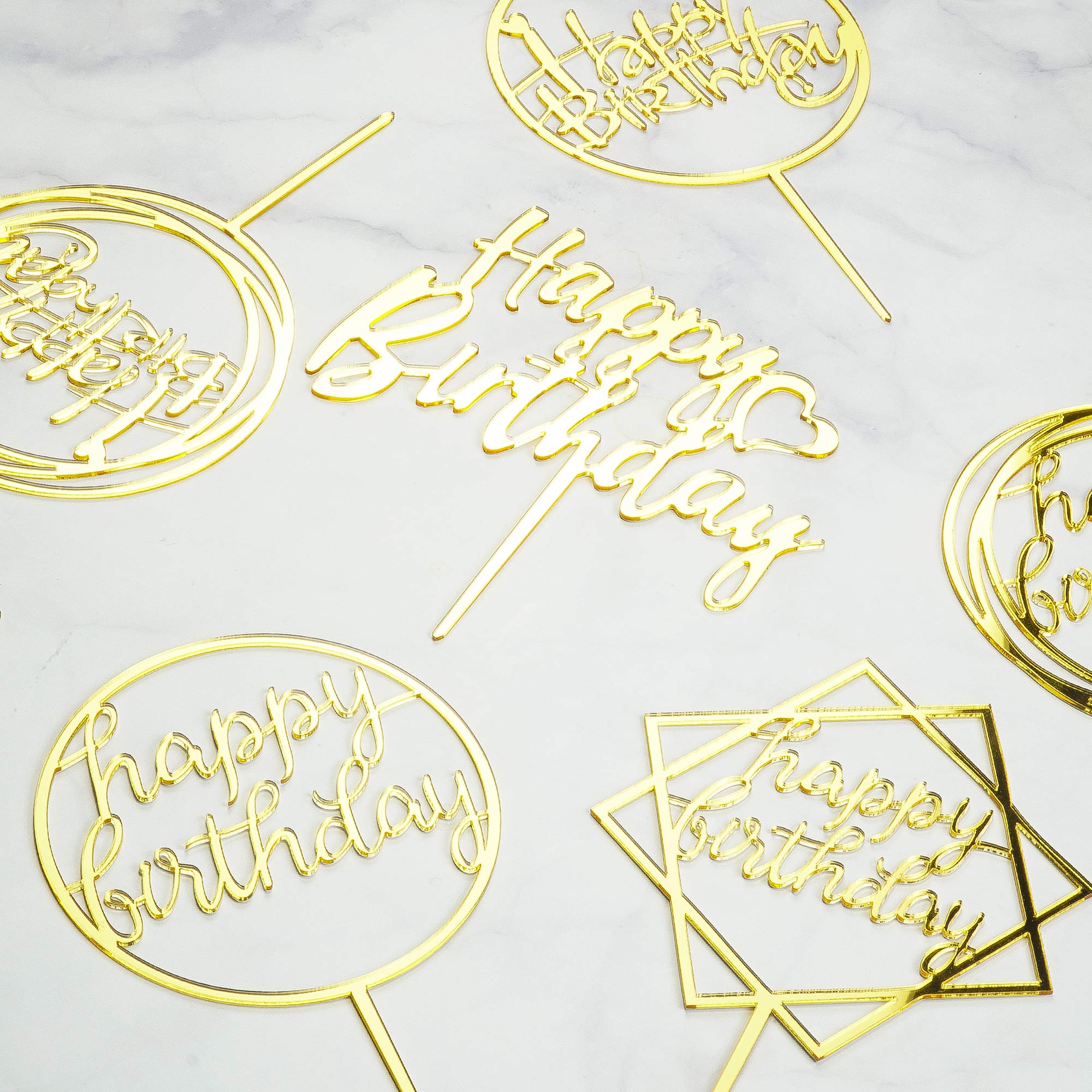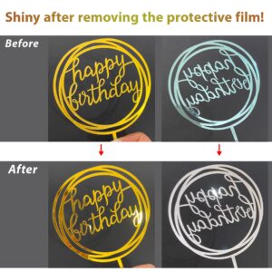 Happy Birthday Cake Toppers Set, Double-Sided Glitter Acrylic