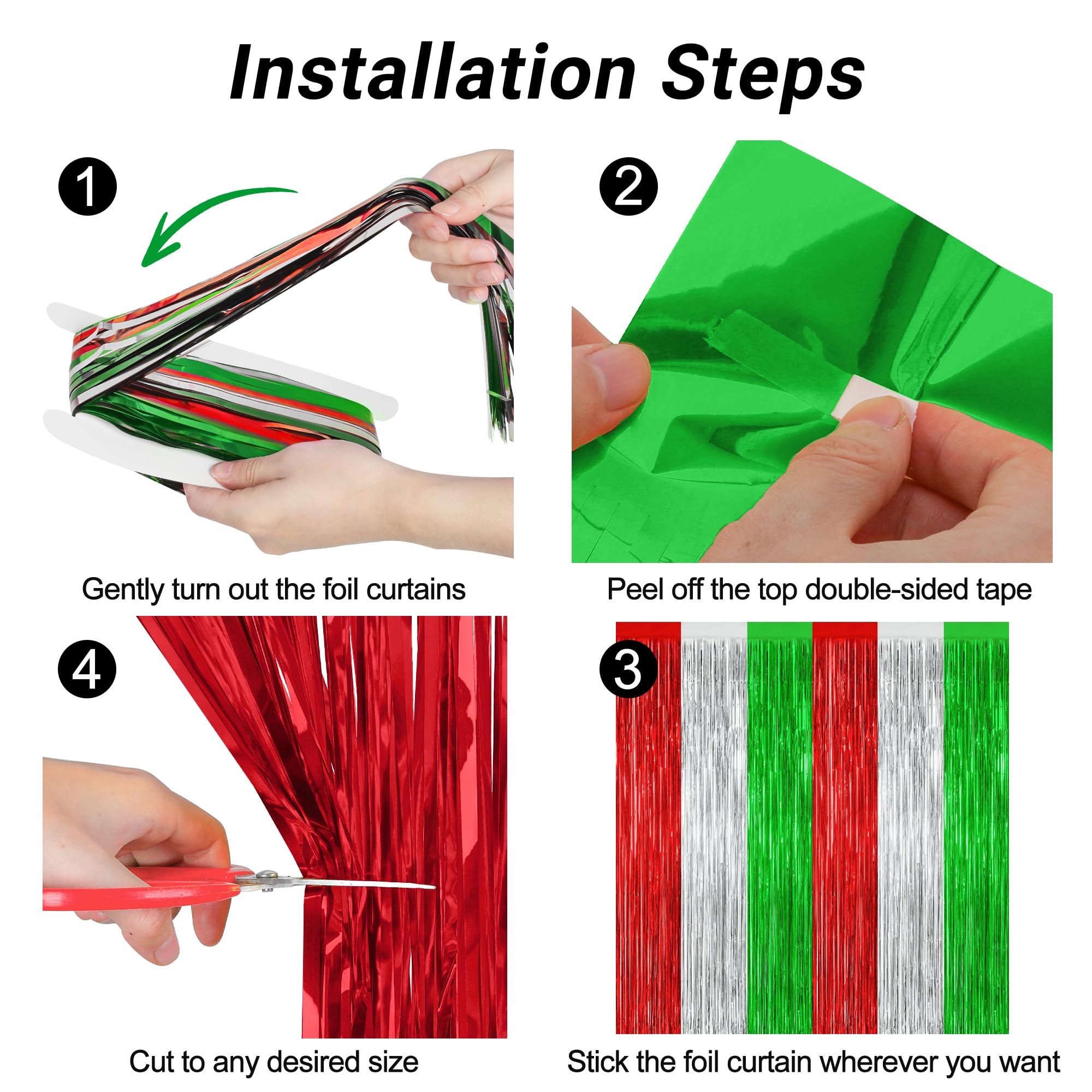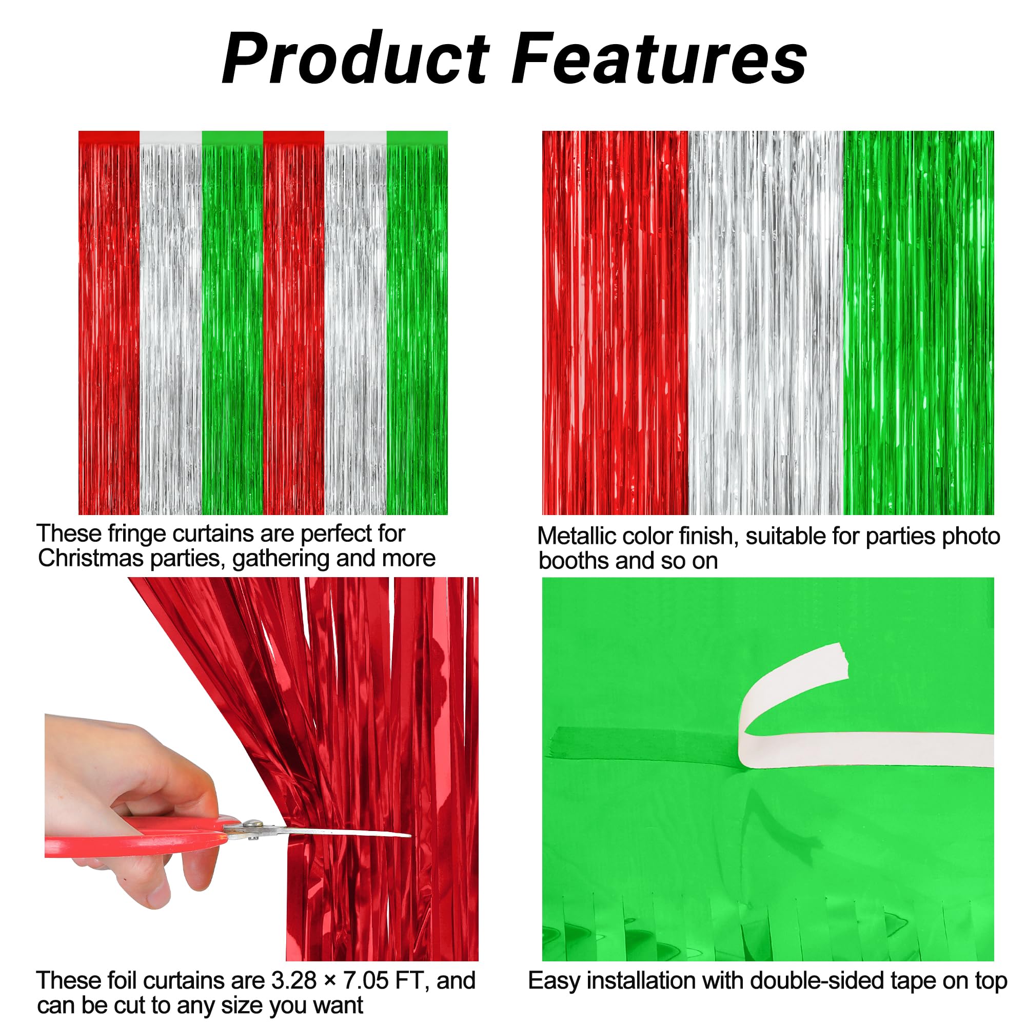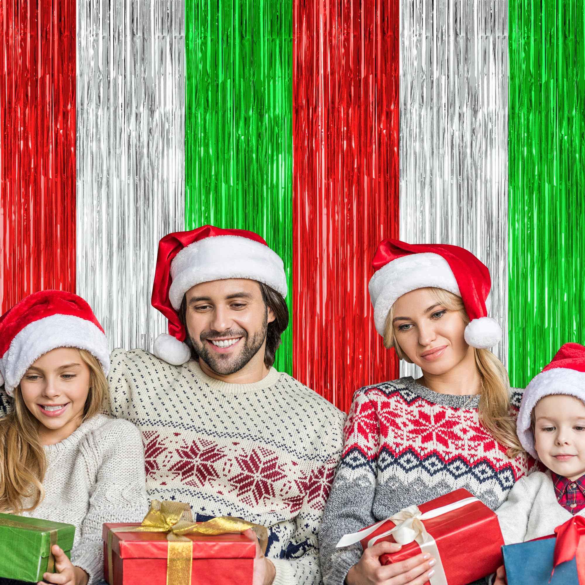 The Christmas Tinsel Curtain features metallic foil fringe panels in classic holiday colors of red, silver, and green, designed specifically for wholesalers, e-commerce sellers, event suppliers, and retail outlets seeking high-quality Christmas Decorations.