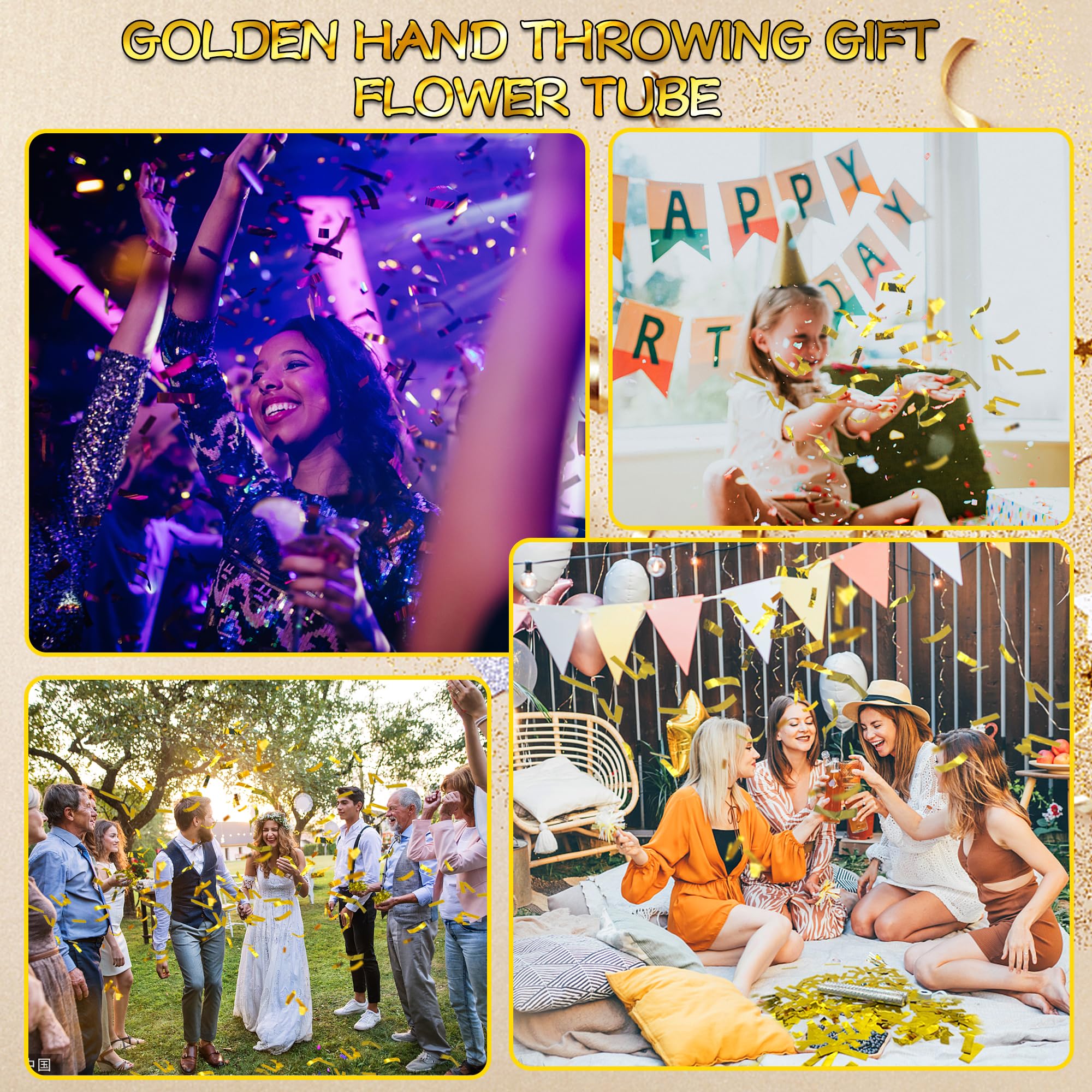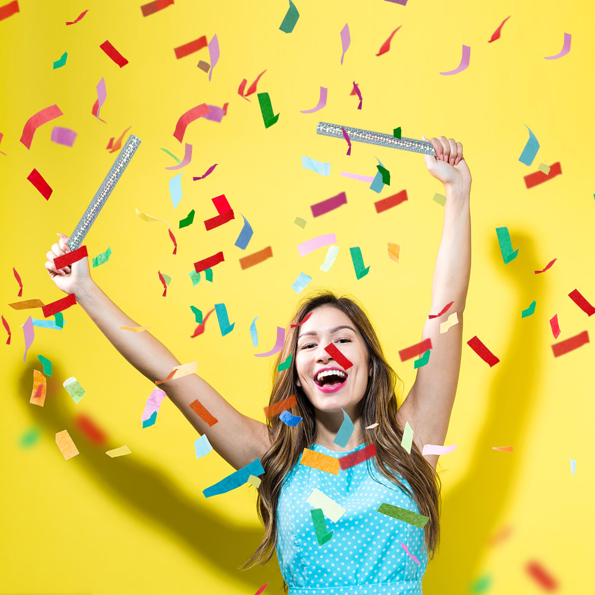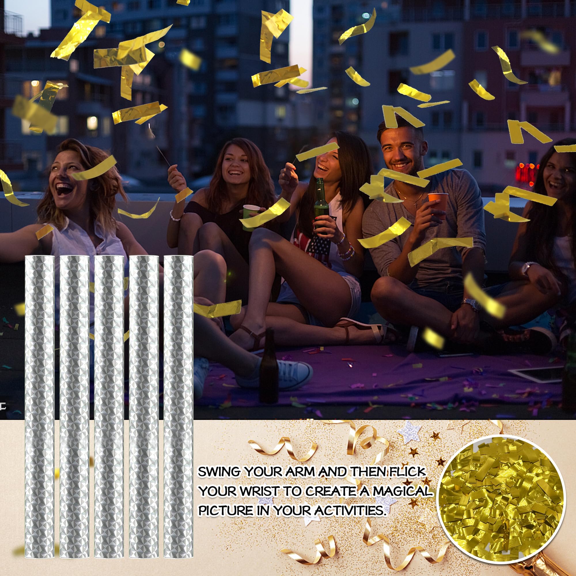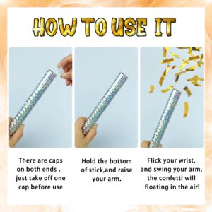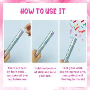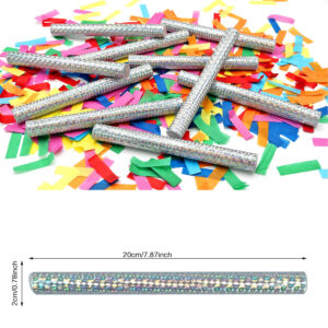 Usage Instructions Open one cap, hold the bottom, flick wrist vigorously—confetti wands release colorful paper into the air. Suitable for indoor/outdoor use; shake away from face.