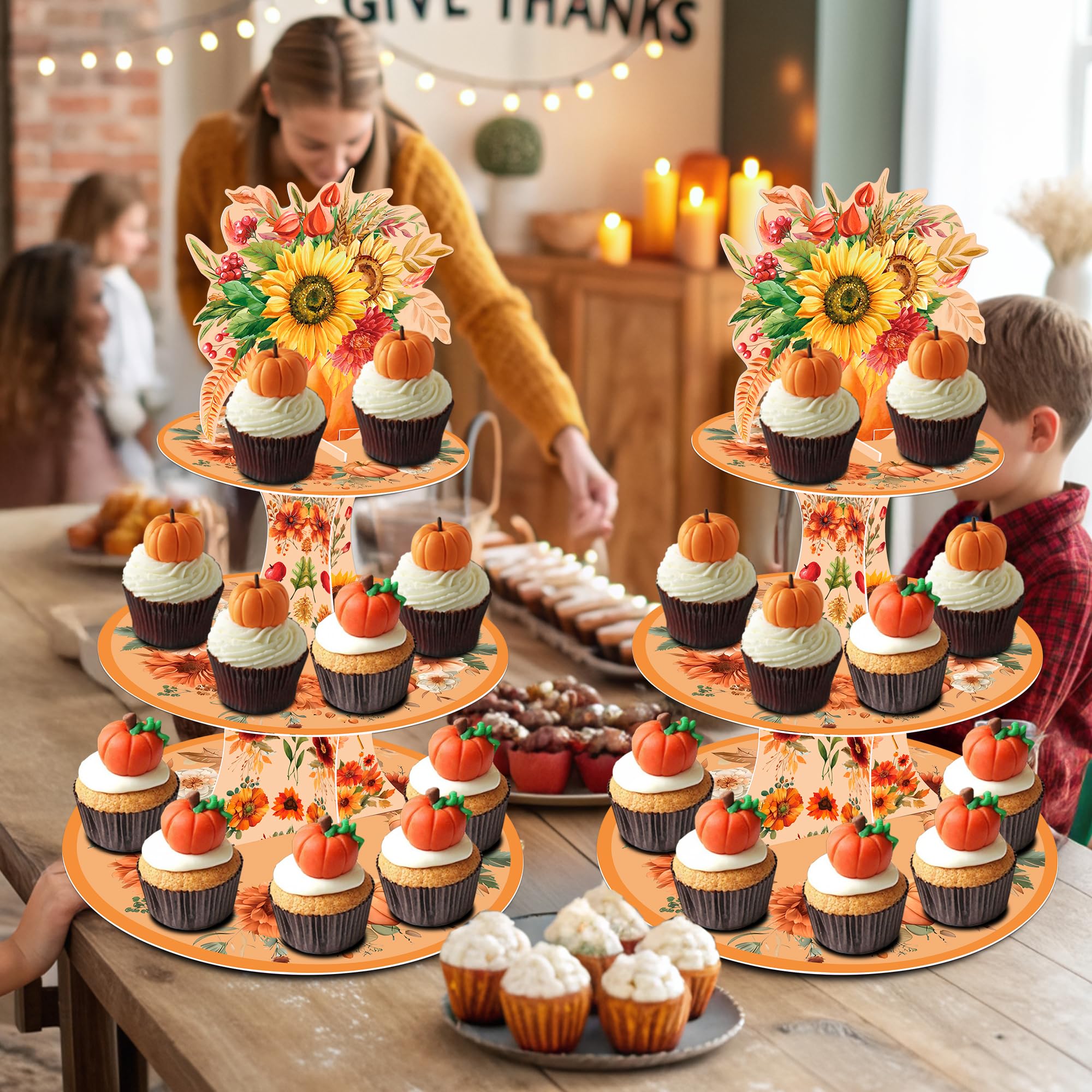 Fall Pumpkin 3-Tier Cupcake Stand for Thanksgiving & Harvest Parties