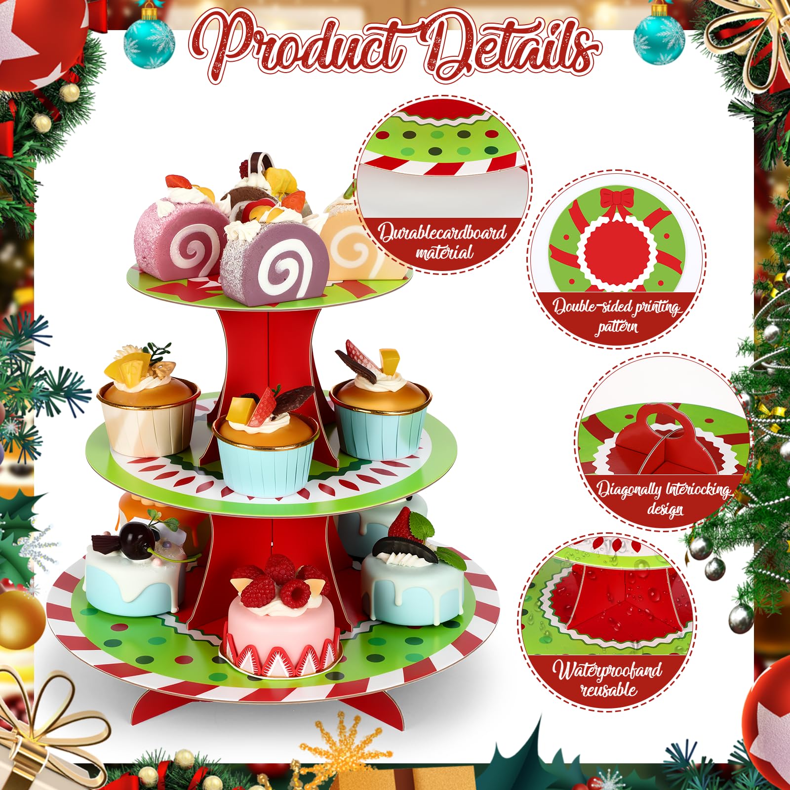 | Use Widely | Ideal for displaying cupcakes, cookies, candies, fruits, macarons, donuts and desserts at parties, weddings, tea parties and holiday gatherings |