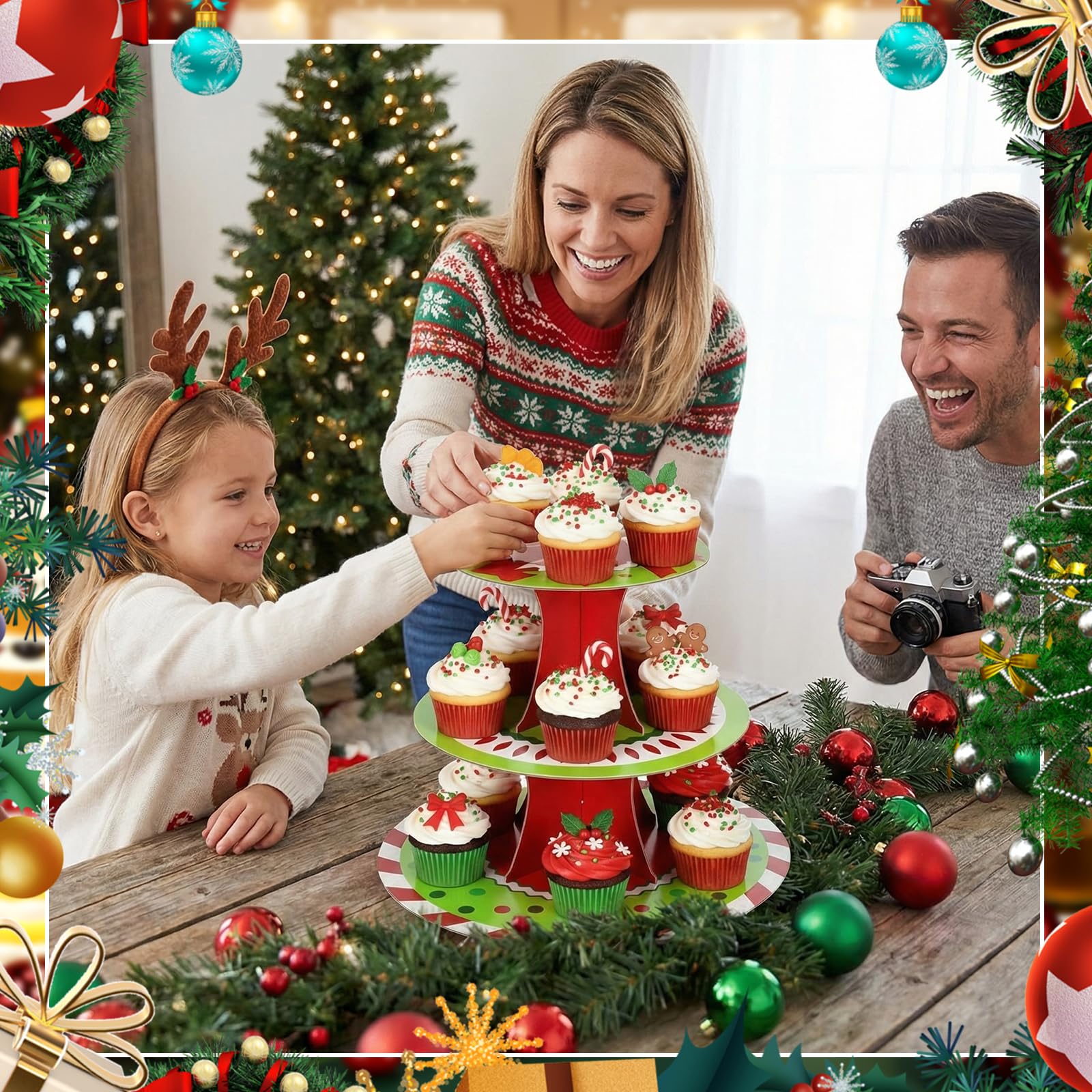 3 Tier Christmas Cupcake Stand