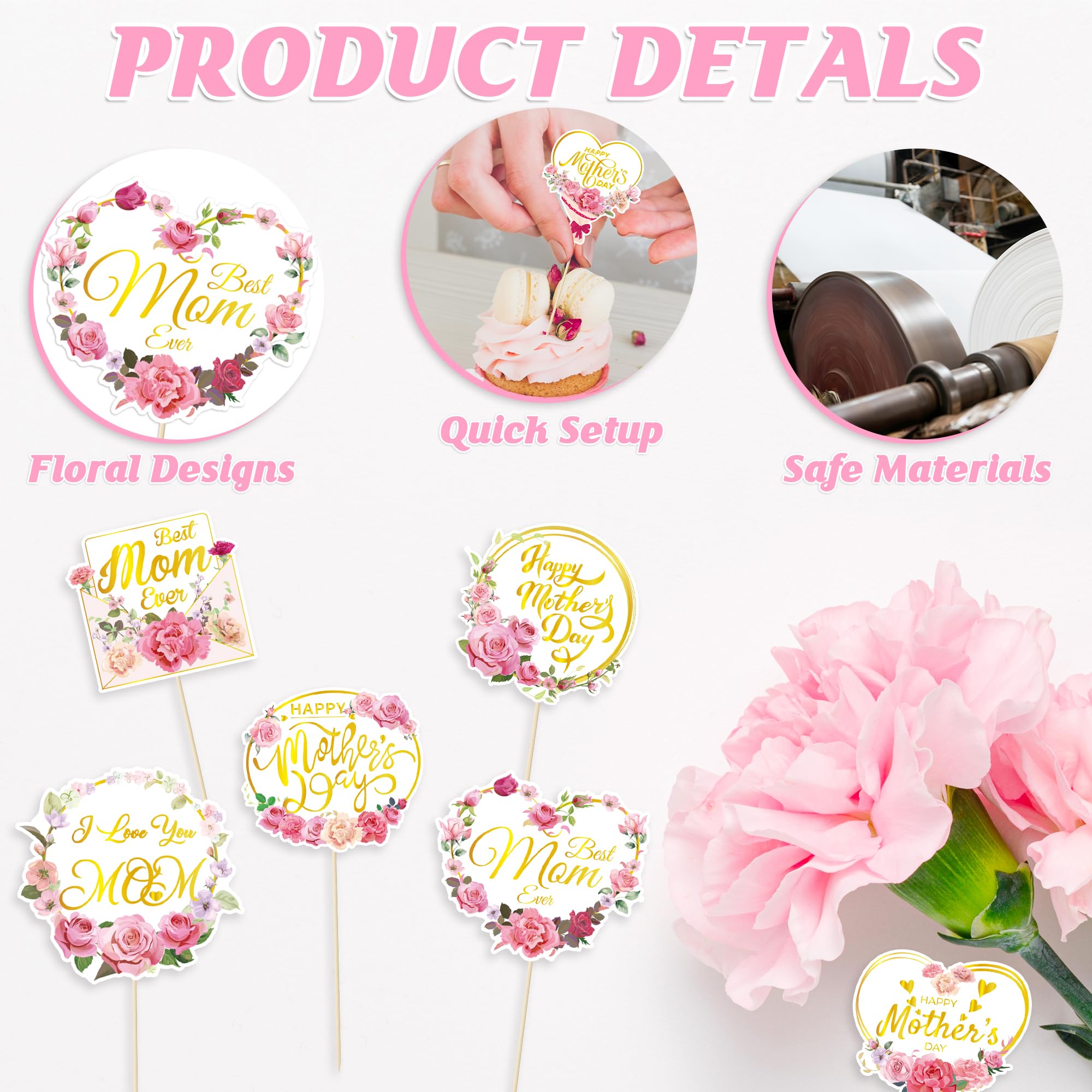 PartyDecorpro: As a professional cupcake toppers manufacturer, we offer high-quality OEM/ODM services worldwide. Our mother’s day cupcake toppers feature elegant floral designs. Ideal for cake picks supplier needs, with wholesale options for custom logo, pattern and style.