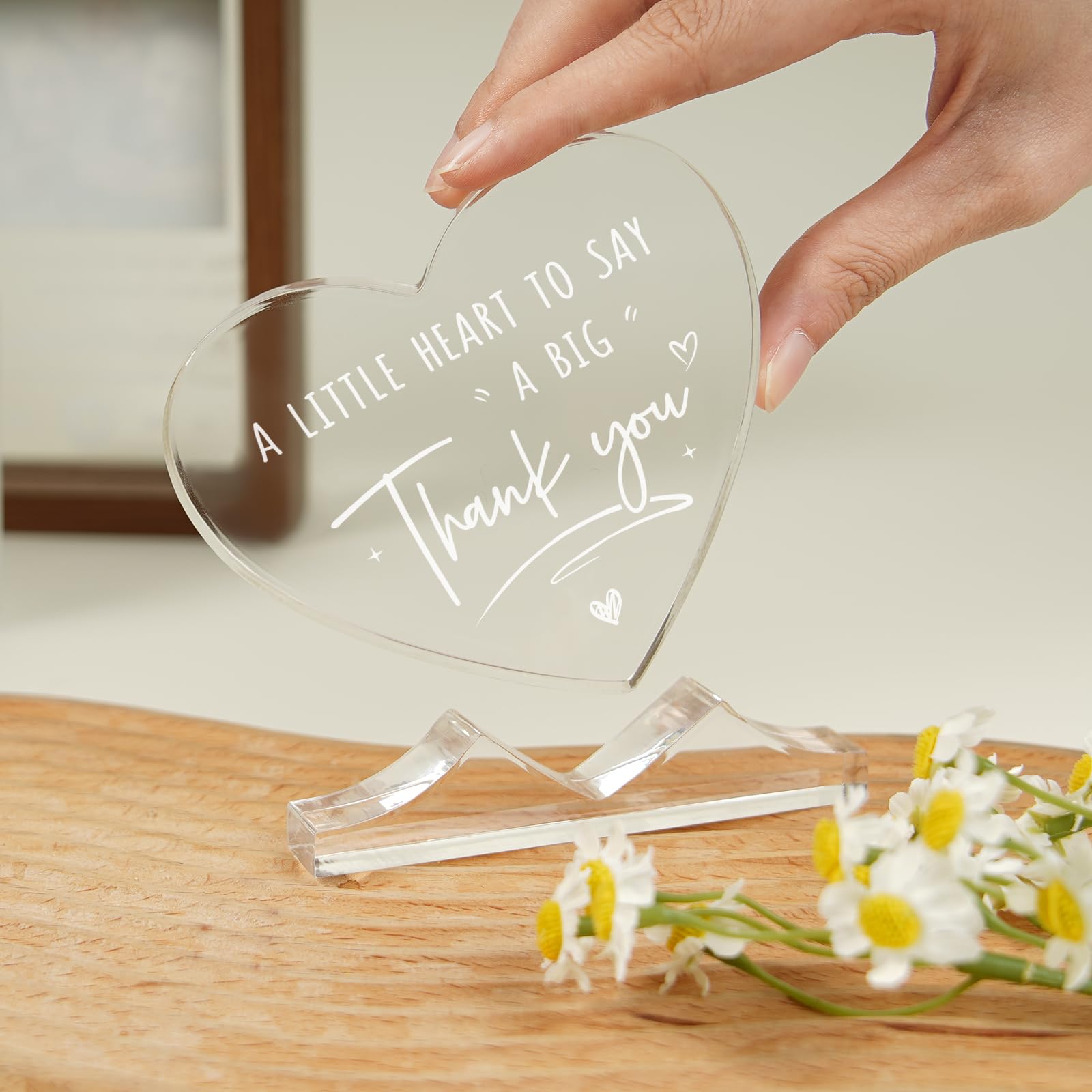 Heart-shaped acrylic thank you plaque for appreciation gifts. Custom acrylic plaque manufacturer and OEM acrylic desk decor supplier offers wholesale with custom logo, pattern, size.