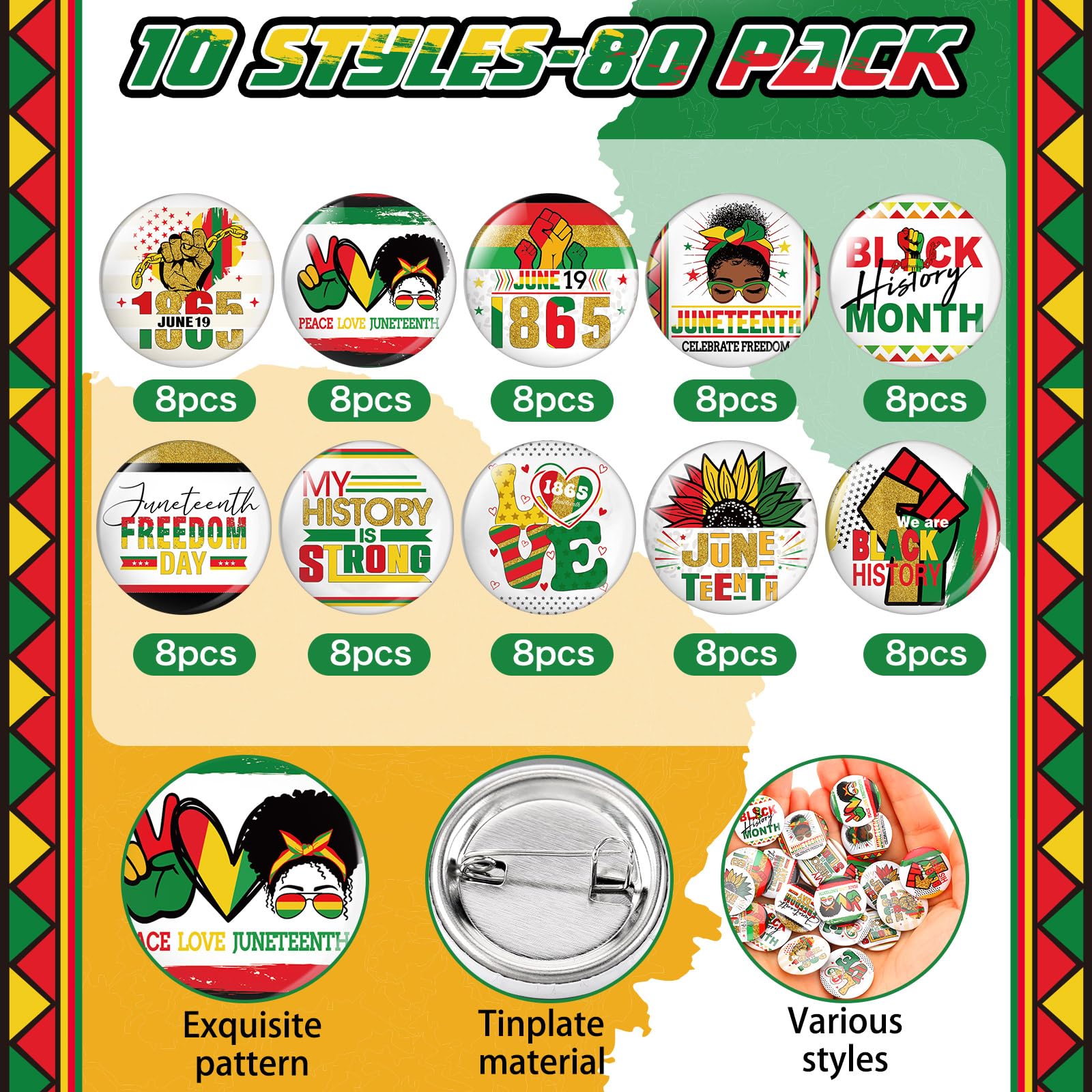 PartyDecorpro: As a professional button pins manufacturer, we offer high-quality OEM/ODM services worldwide. Our Juneteenth button pins feature vibrant designs for celebrations. Ideal for custom button pins wholesale needs, with options for custom logo, pattern and style.