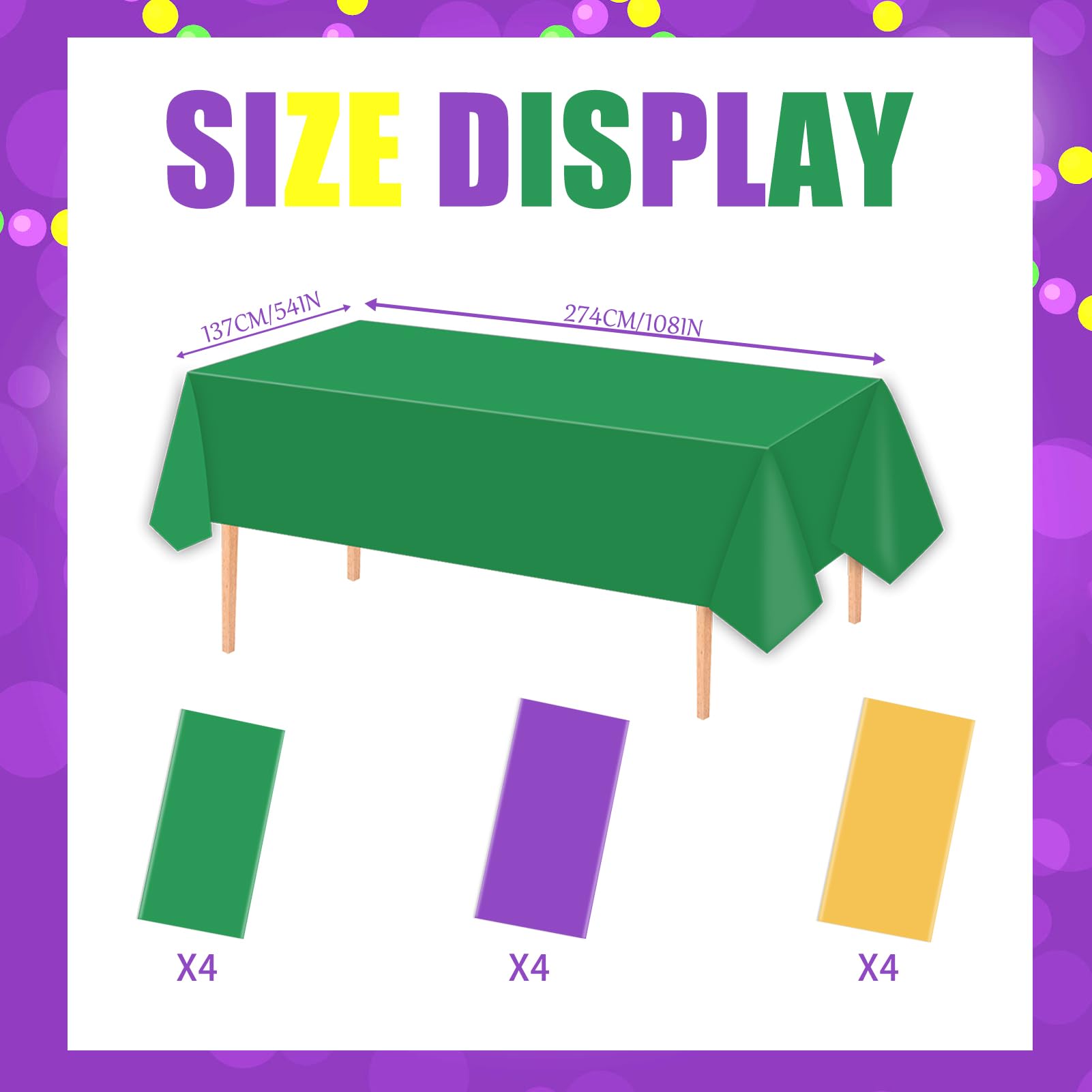 PartyDecorpro: As a professional custom disposable tablecloths manufacturer, we provide OEM/ODM services globally. Our mardi gras tablecloths are waterproof and vibrant. Perfect for wholesale plastic tablecloths supplier needs, with flexible options for custom logo, pattern, color and size.