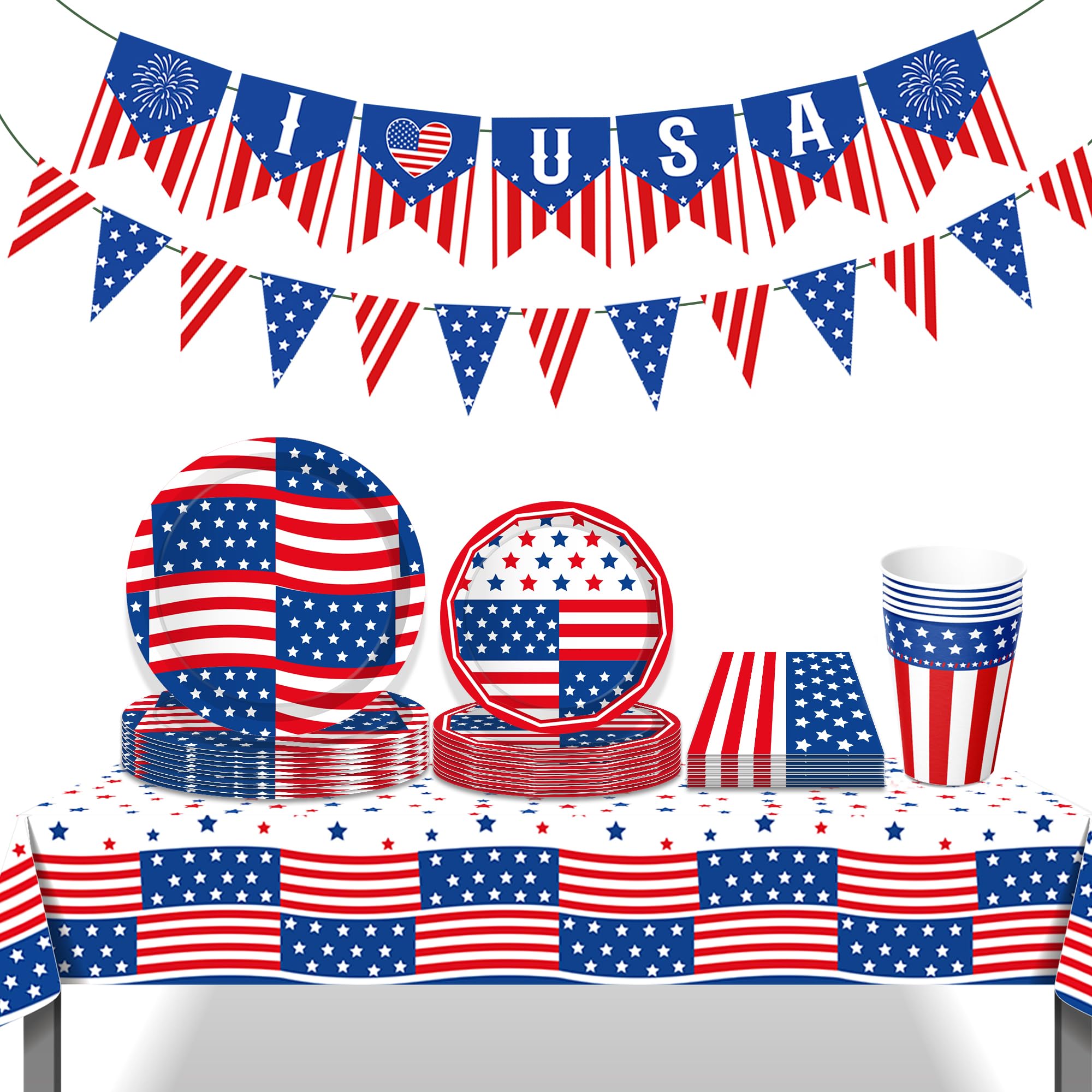 | Package Includes | 9 inch Plates 16 count, 7 inch Plates 16 count, Paper Cups 16 count, Napkins 20 count, Tablecloth 1 count (Supports custom size), Banner 1 set |