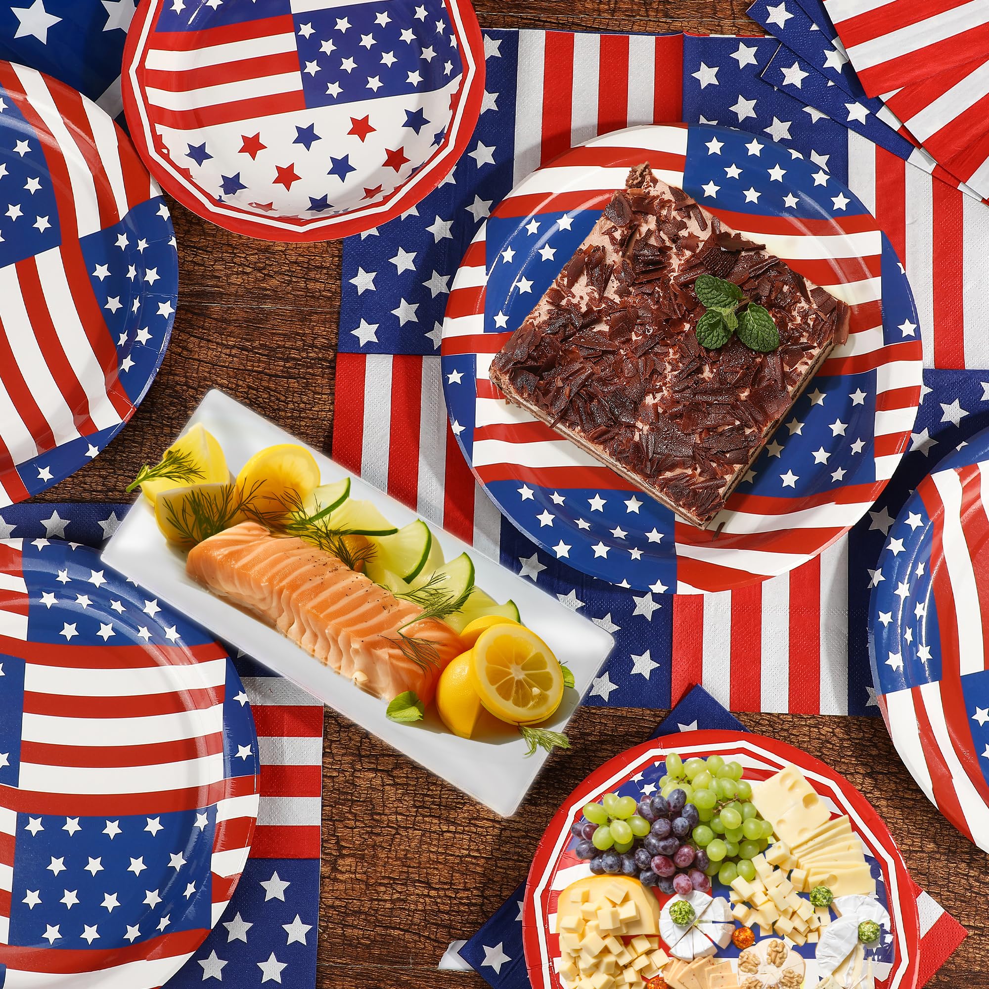 PartyDecorpro is a leading custom disposable tableware manufacturer and patriotic tableware wholesale supplier, providing high-quality independence day tableware and 4th of july party supplies for B2B partners. This durable paper set with classic flag design supports full OEM customization of patterns and sizes—ideal for patriotic events and wholesale orders.
