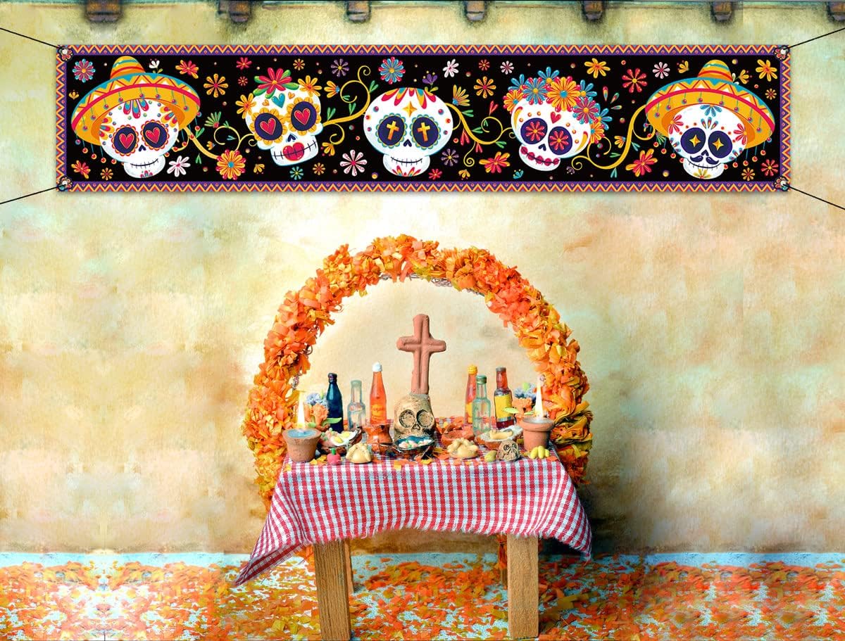 Day of the Dead Sugar Skull Fence Banner