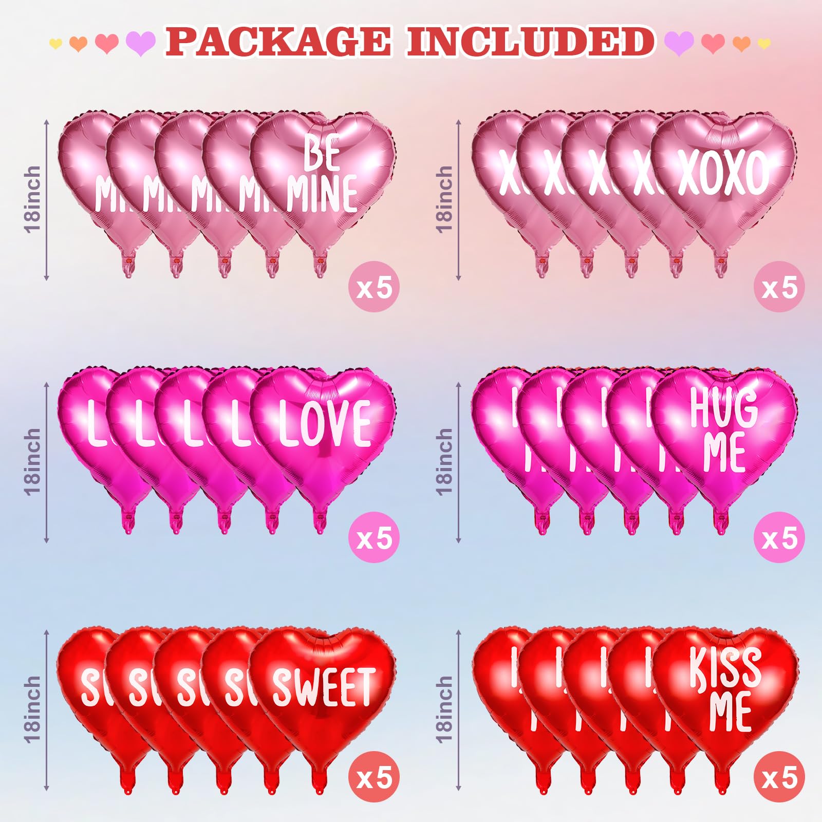 Valentine’s Day Heart Foil Balloons with Romantic Phrases