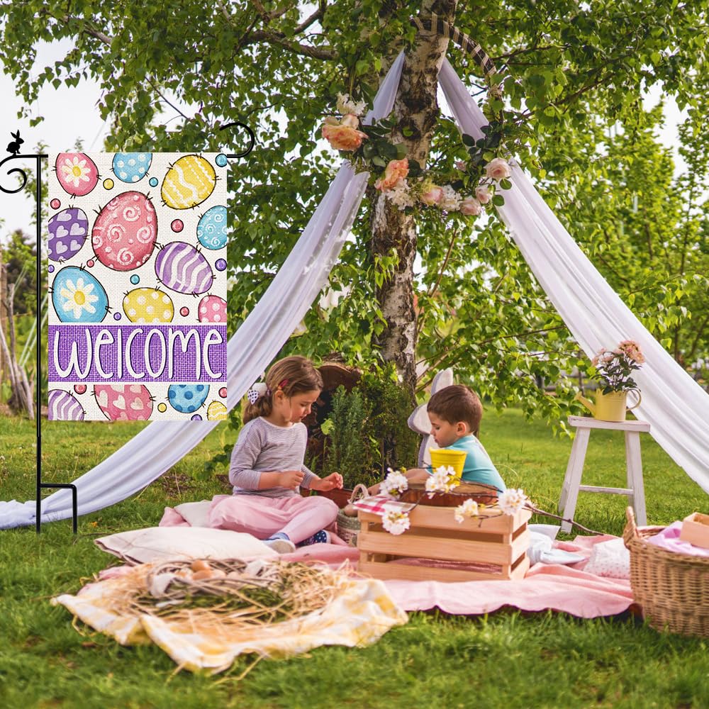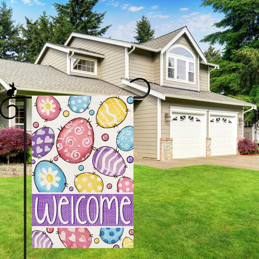 Easter Egg Garden Flag: Welcome Spring Yard Decoration