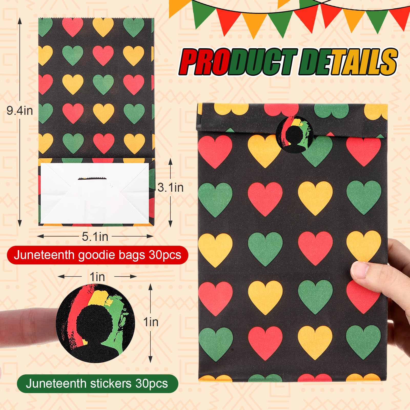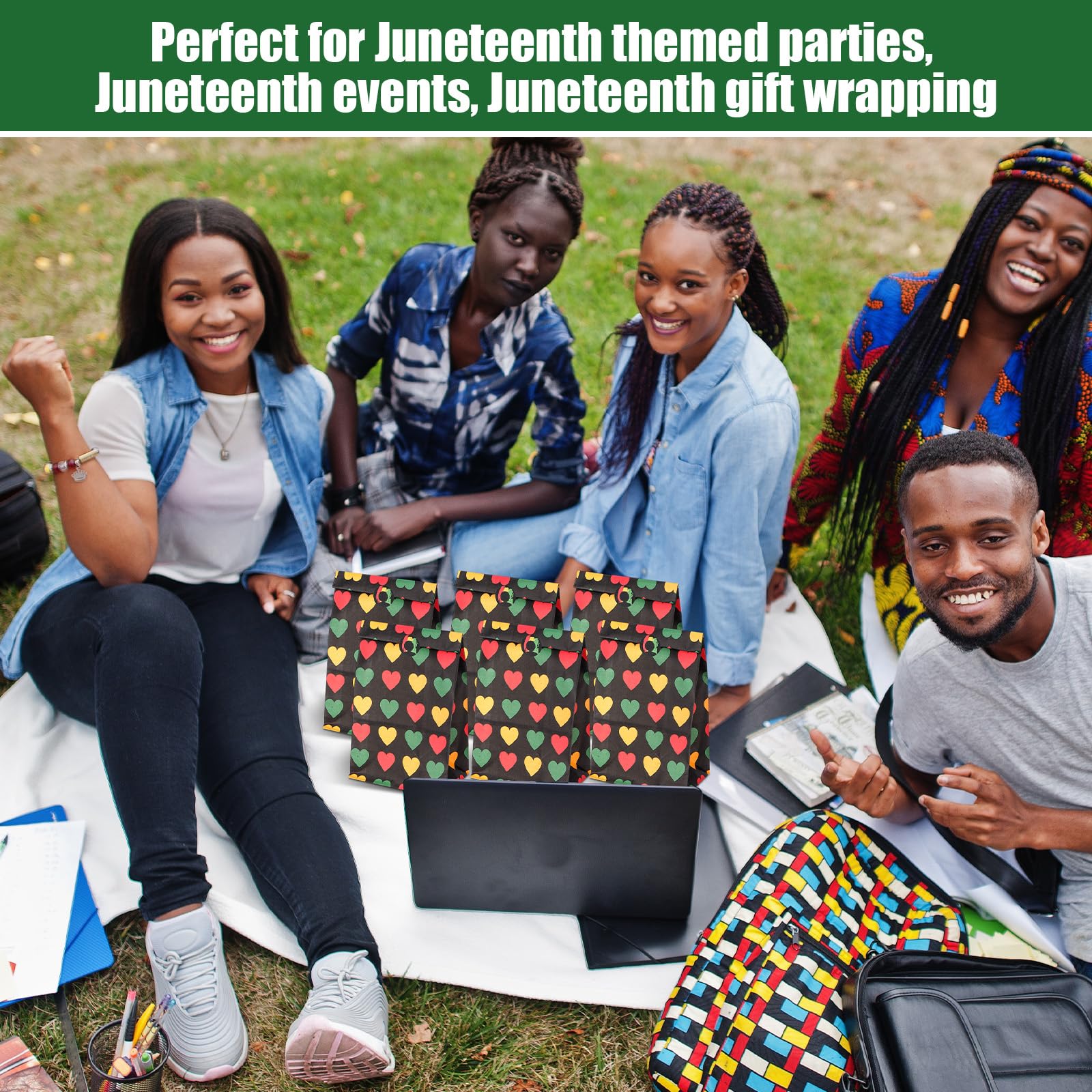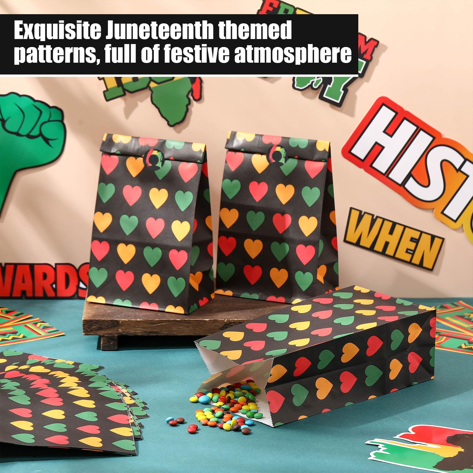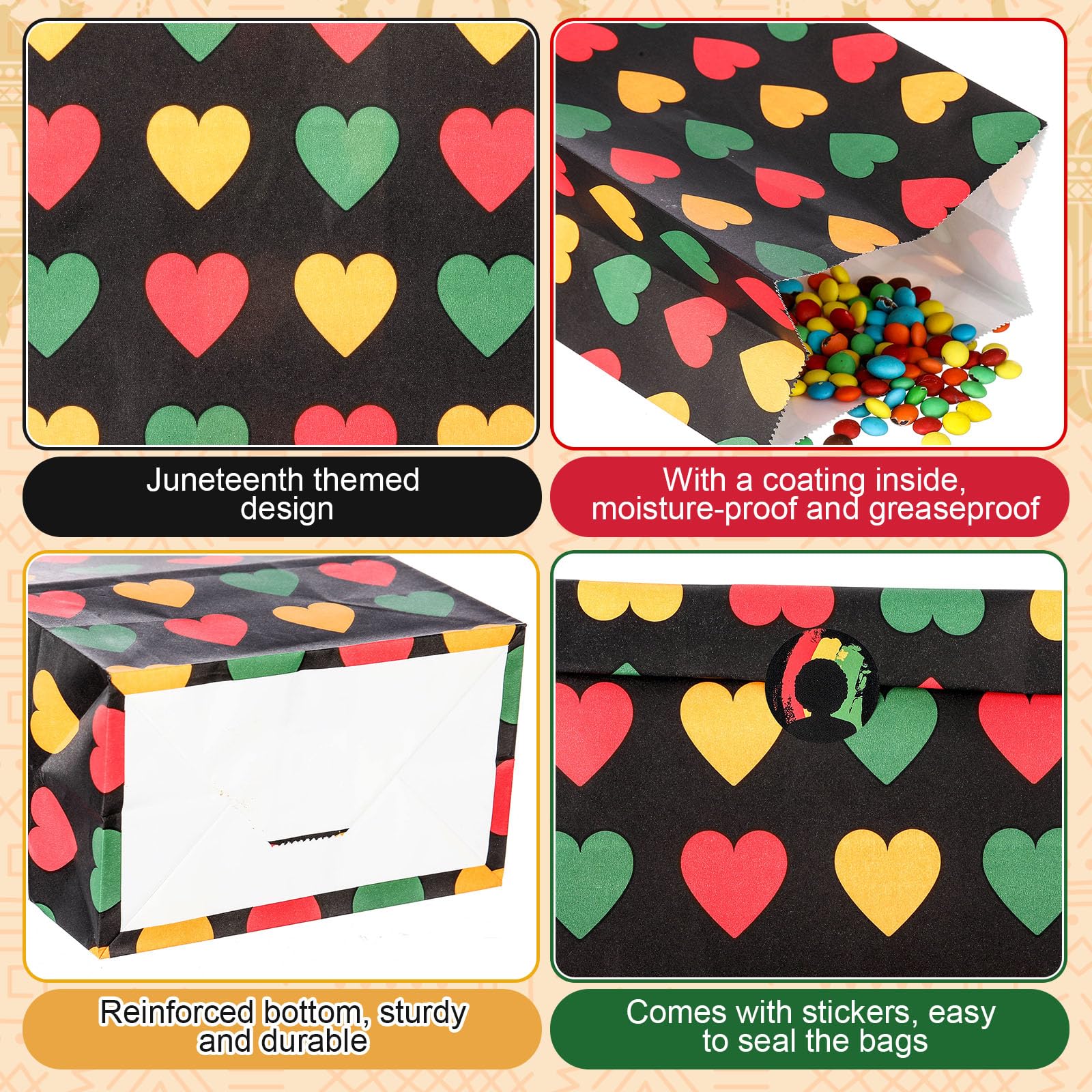 Juneteenth Heart Paper Gift Bags with Stickers PartyDecorpro: As a professional custom gift bags manufacturer, we provide factory-direct paper favor bags wholesale and OEM/ODM services. Our Juneteenth party favor bags feature durable kraft paper. Ideal for themed supplier needs, with flexible MOQ for custom logo, pattern, style and size.
