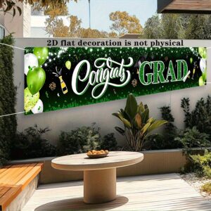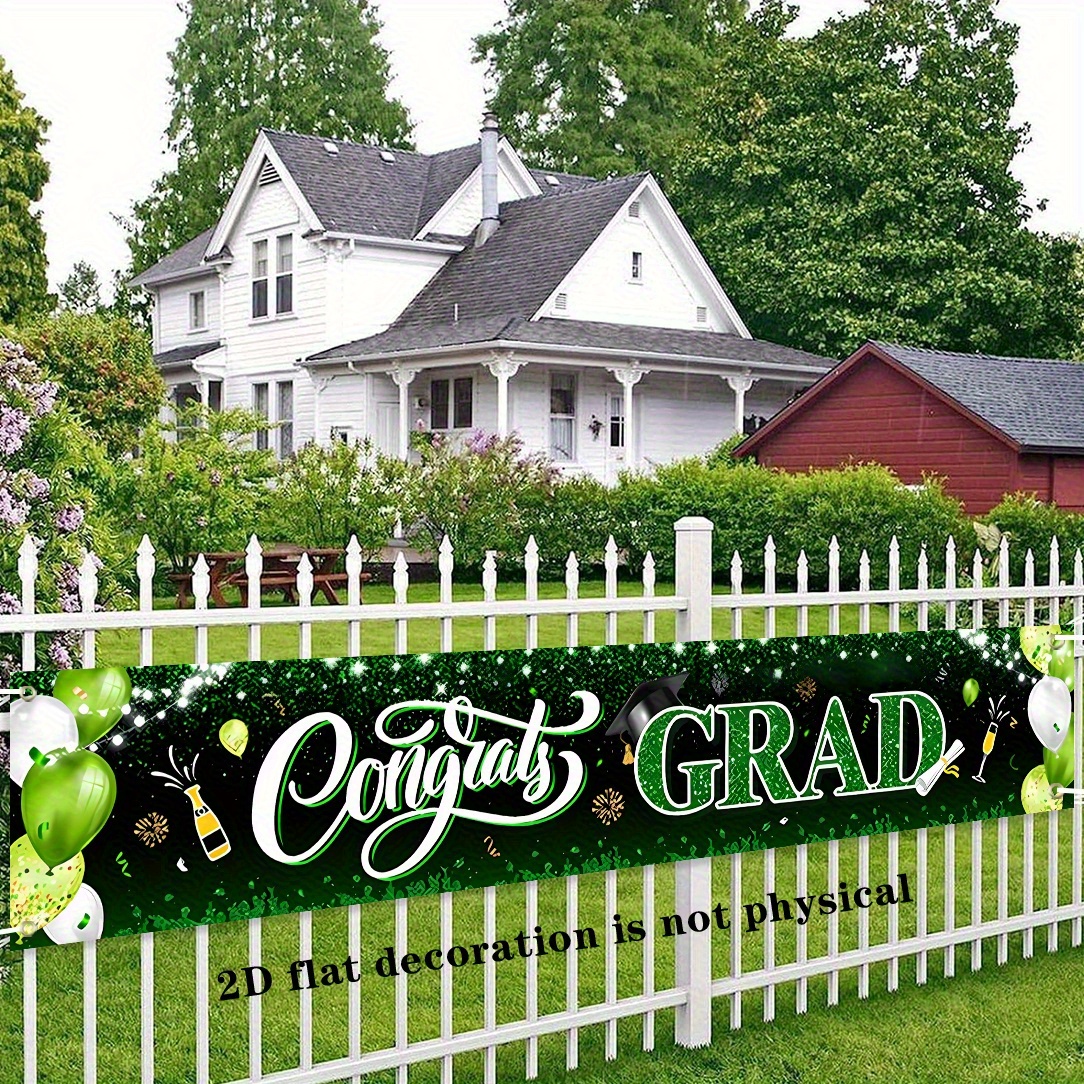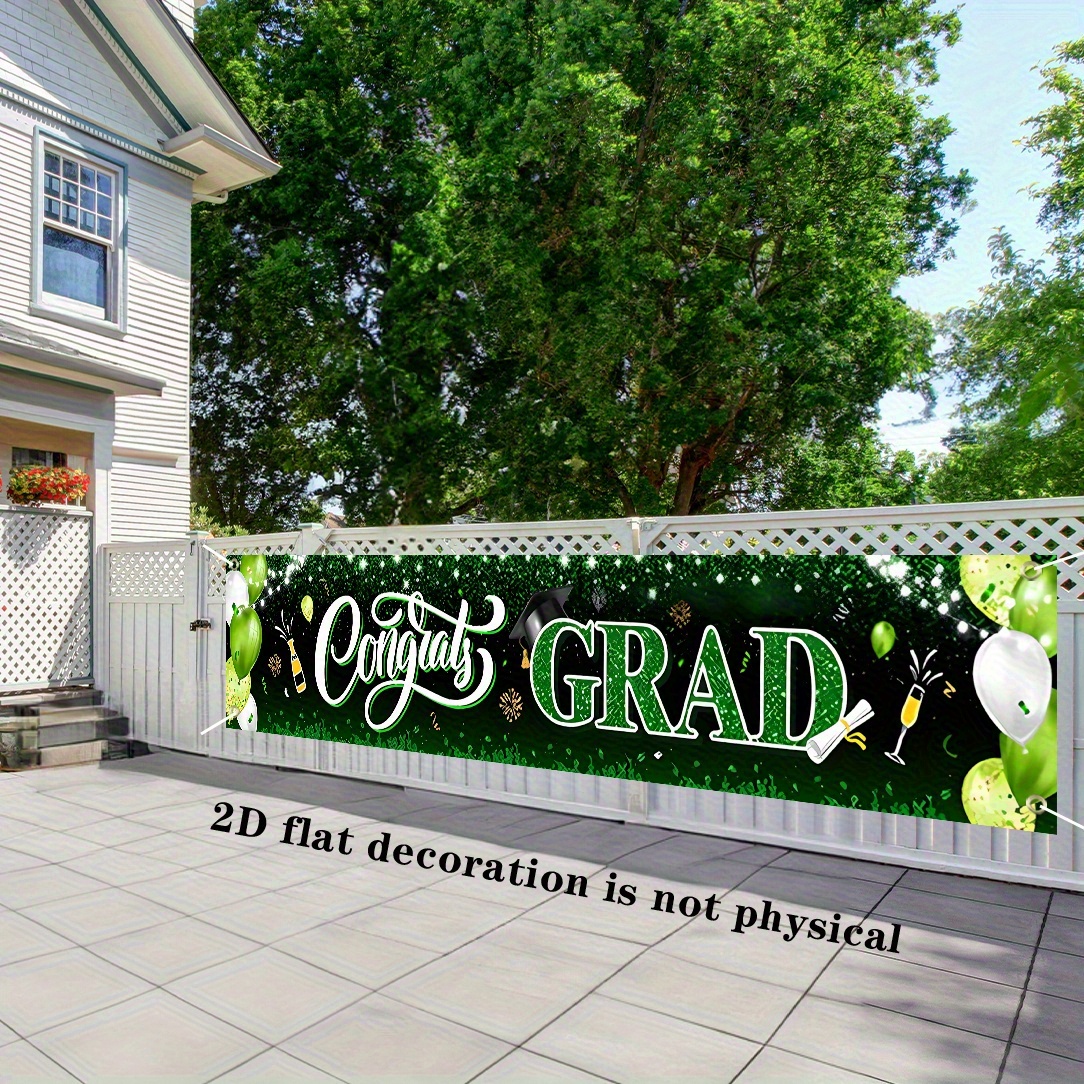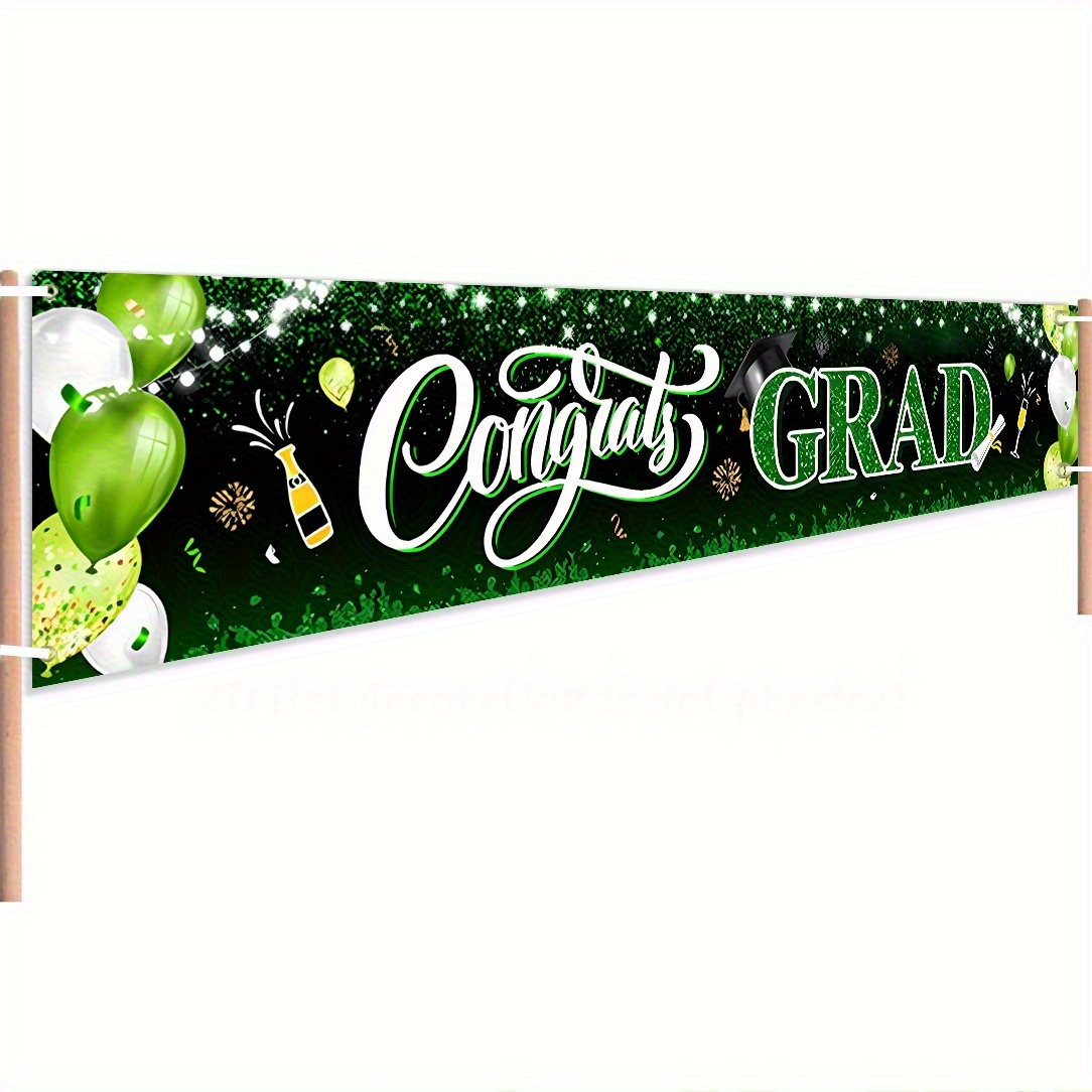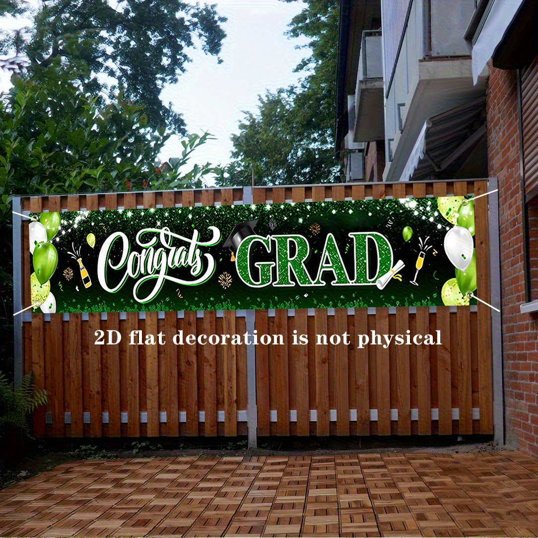 PartyDecorpro Congrats Grad Banner – Durable polyester graduation party banner with balloons and confetti design. Ideal outdoor sign for celebrations. Custom graduation banner options available. B2B wholesale graduation party decorations and OEM per specs.
