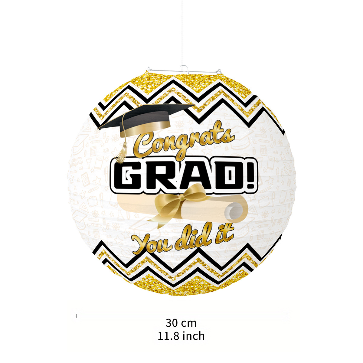 As a professional graduation decorations factory and custom graduation lanterns supplier, PartyDecorpro provides premium hanging graduation lanterns in round paper lanterns graduation style with elegant chevron design. Lightweight paper, easy-to-hang, no electricity needed.