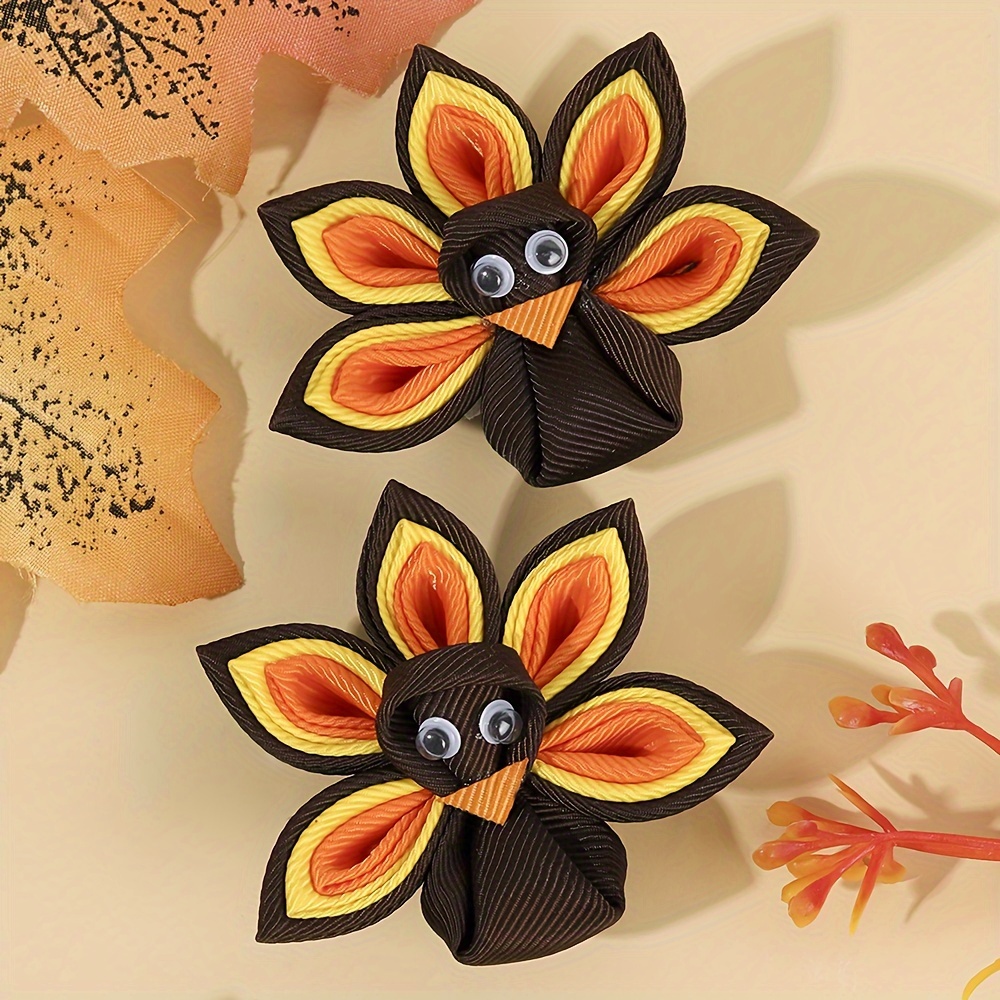 PartyDecorpro: As a professional custom hair accessories supplier, we provide OEM hair clips factory services worldwide. Adorable thanksgiving turkey hair clips with ribbon feathers, ideal for wholesale buyers seeking custom logo, style, color and packaging options.