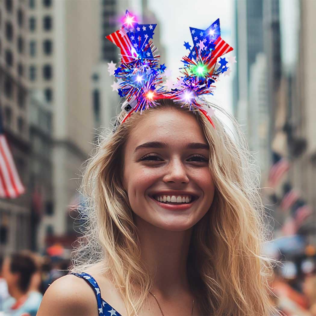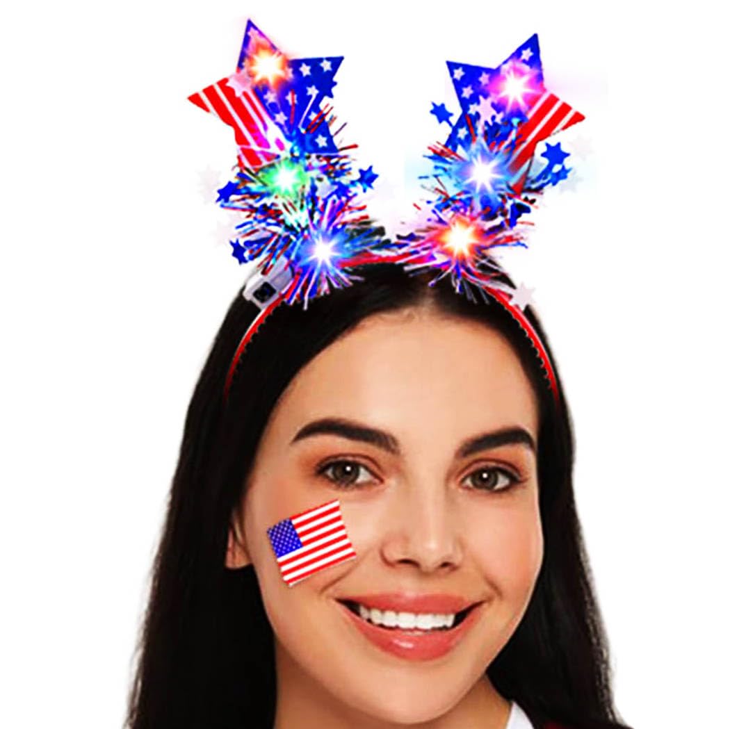PartyDecorpro 4th of July Light up Headbands:LED Patriotic Headband (Big Star)