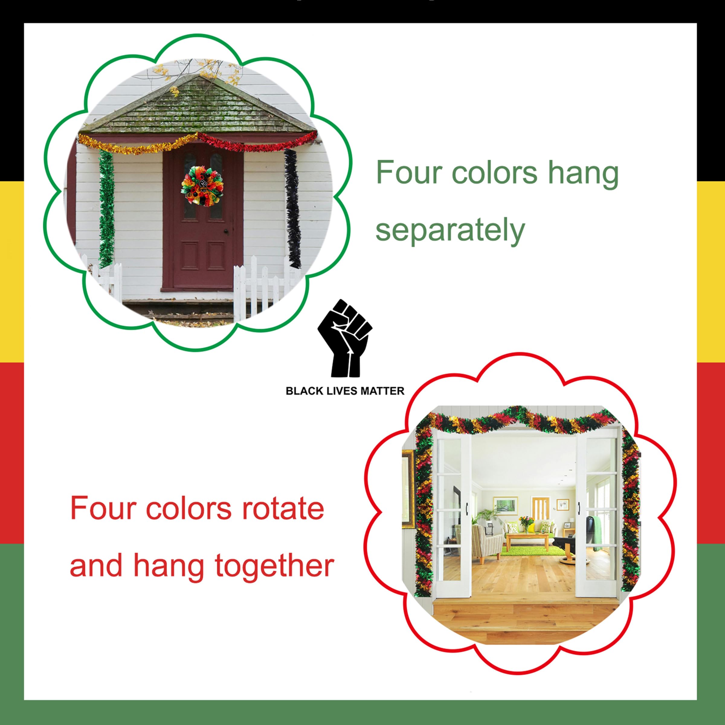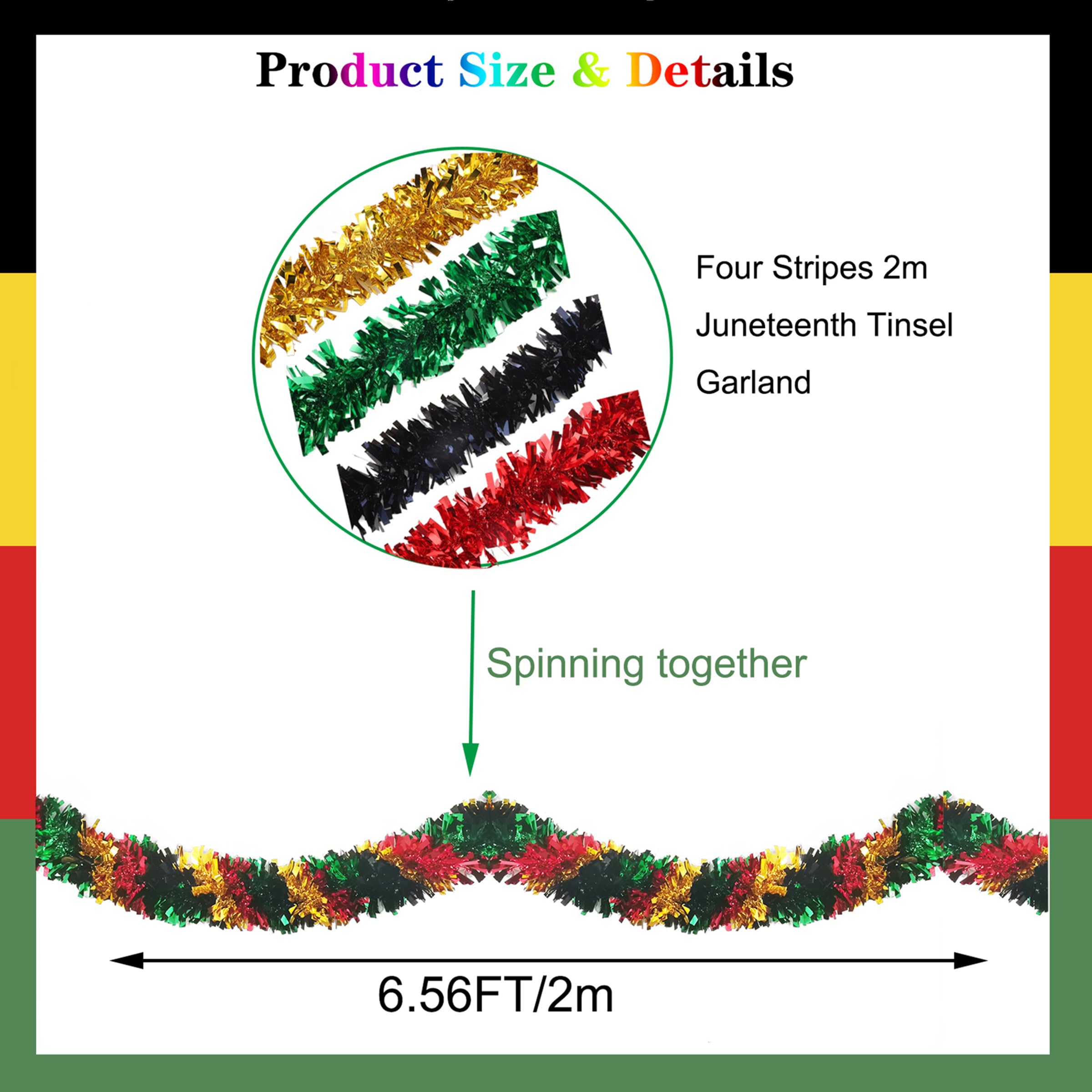 Premium Juneteenth tinsel garland from custom metallic garland supplier. Factory-direct wholesale with OEM options for logo, pattern, style and size customization. Flexible MOQ available.