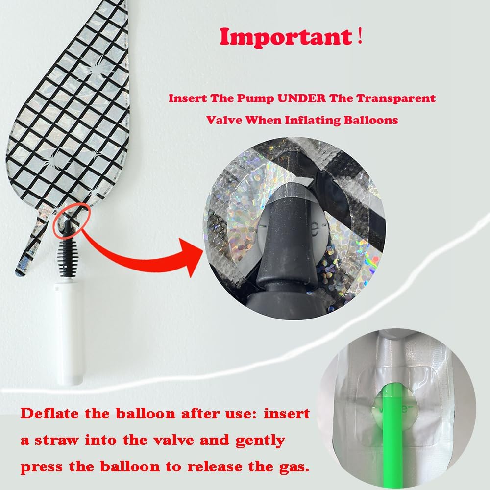 Usage Note: Insert the pump or straw under the transparent valve for inflation/deflation. Do not exceed 85% capacity to prevent bursting and keep uninflated balloons away from children.