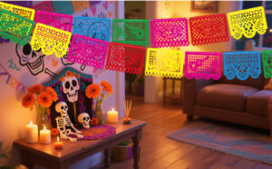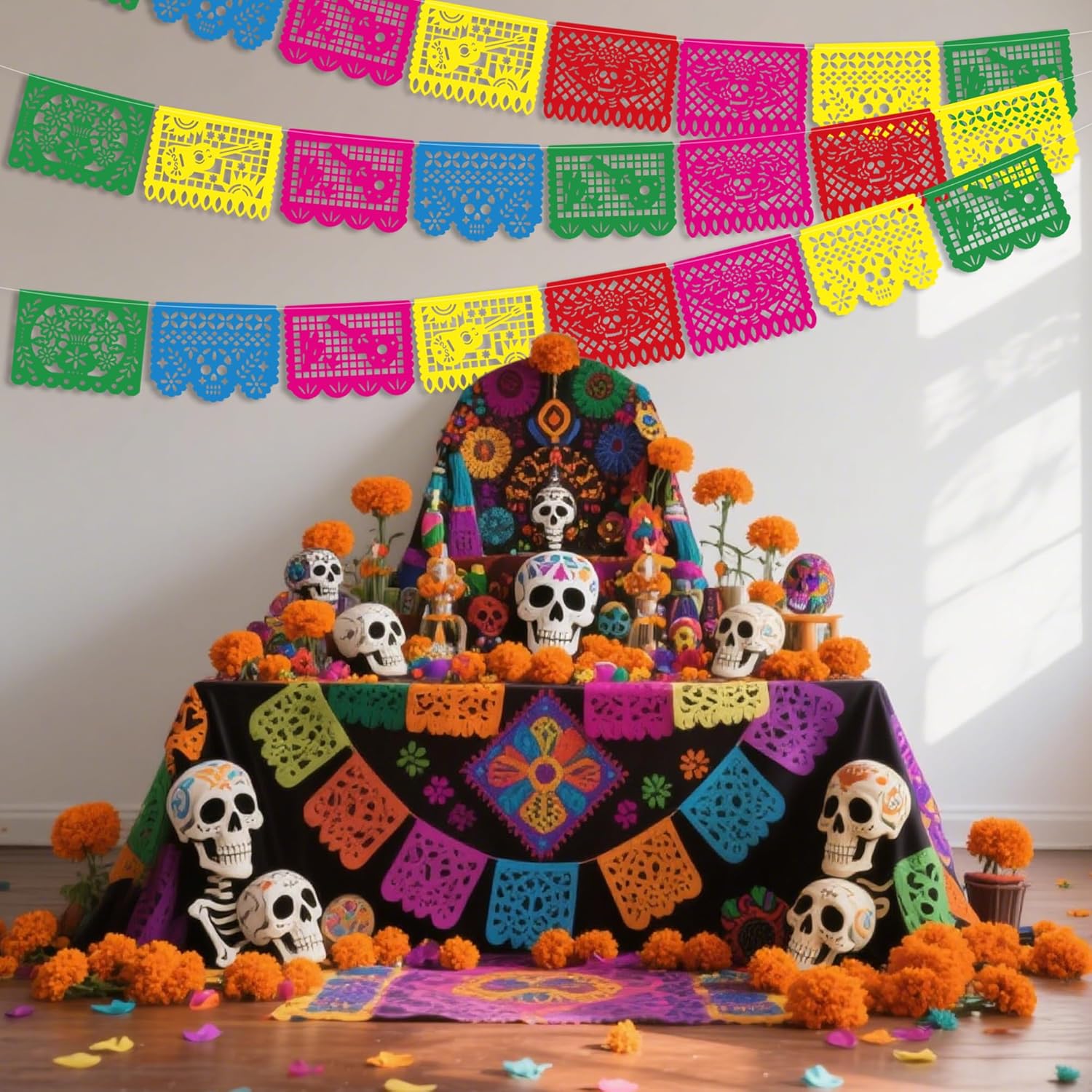 PartyDecorpro: We offer this vibrant party backdrop with high-quality OEM/ODM services worldwide. Our day of the dead party backdrop delivers festive charm as a custom papel picado manufacturer. Ideal for wholesale needs with flexible MOQ, custom patterns, logo, colors, packaging and sizes.