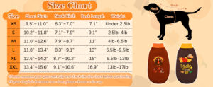 | Size | Chest Girth | Neck Girth | Back Length | Weight Range |