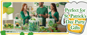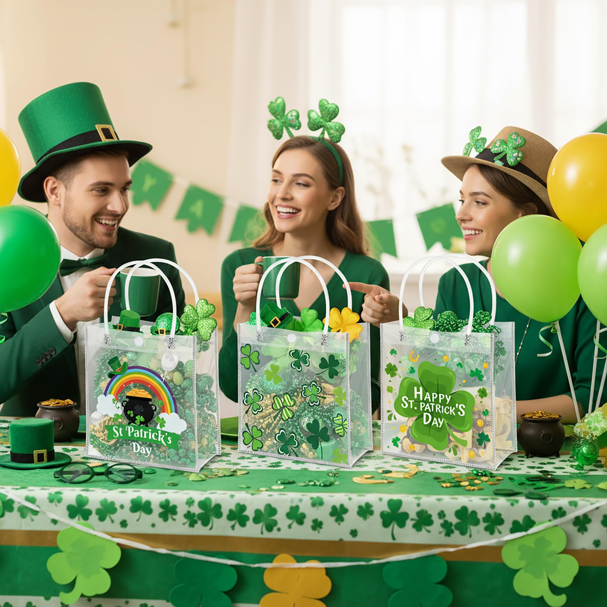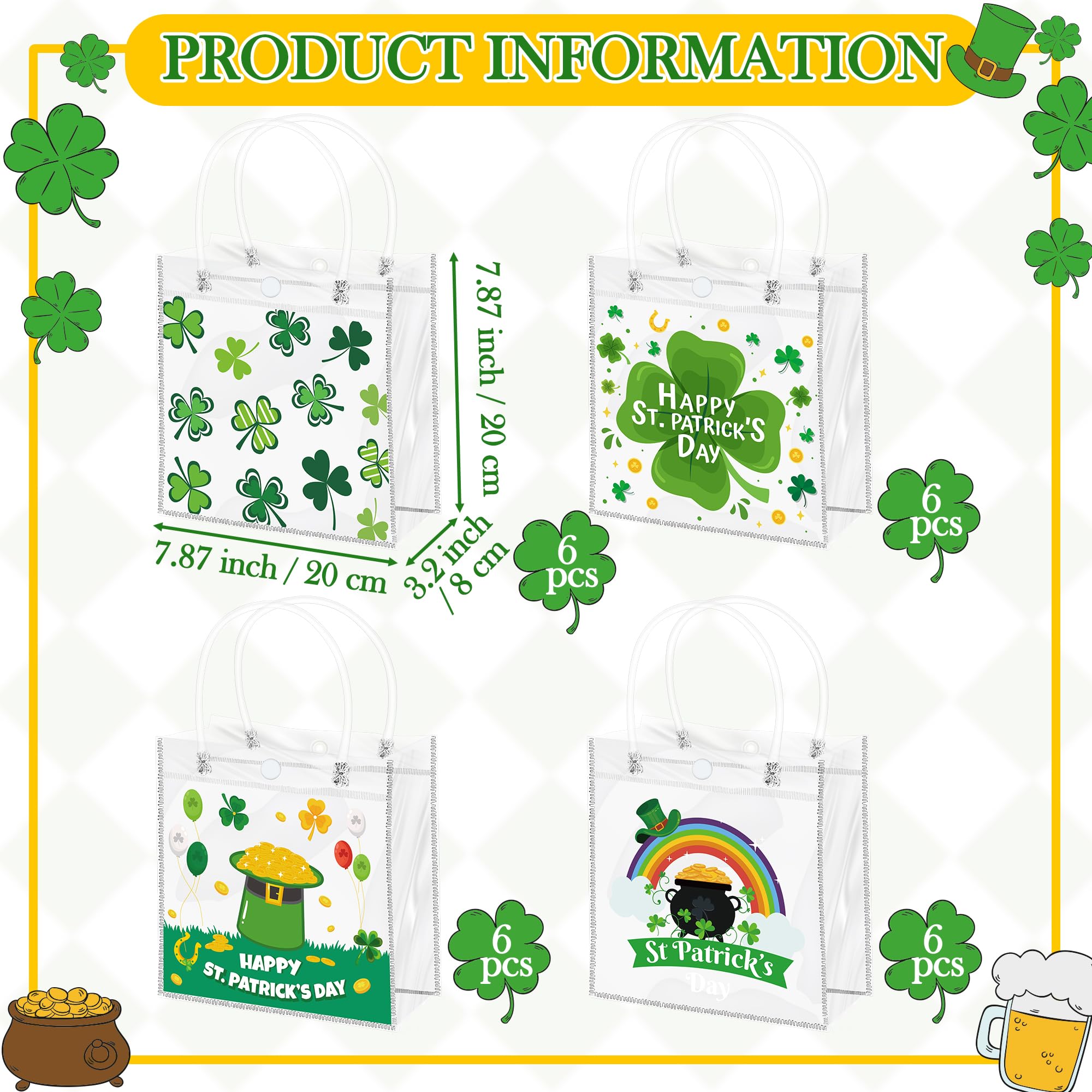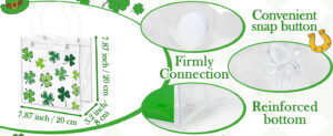 PartyDecorpro: As a professional gift bag manufacturer, we offer high-quality OEM/ODM services worldwide. We provide custom pvc gift bags featuring festive shamrock designs, lightweight and waterproof. Ideal for st patrick’s day party favor bags wholesale and holiday party bags needs, with flexible MOQ for custom logo, pattern, style and size.