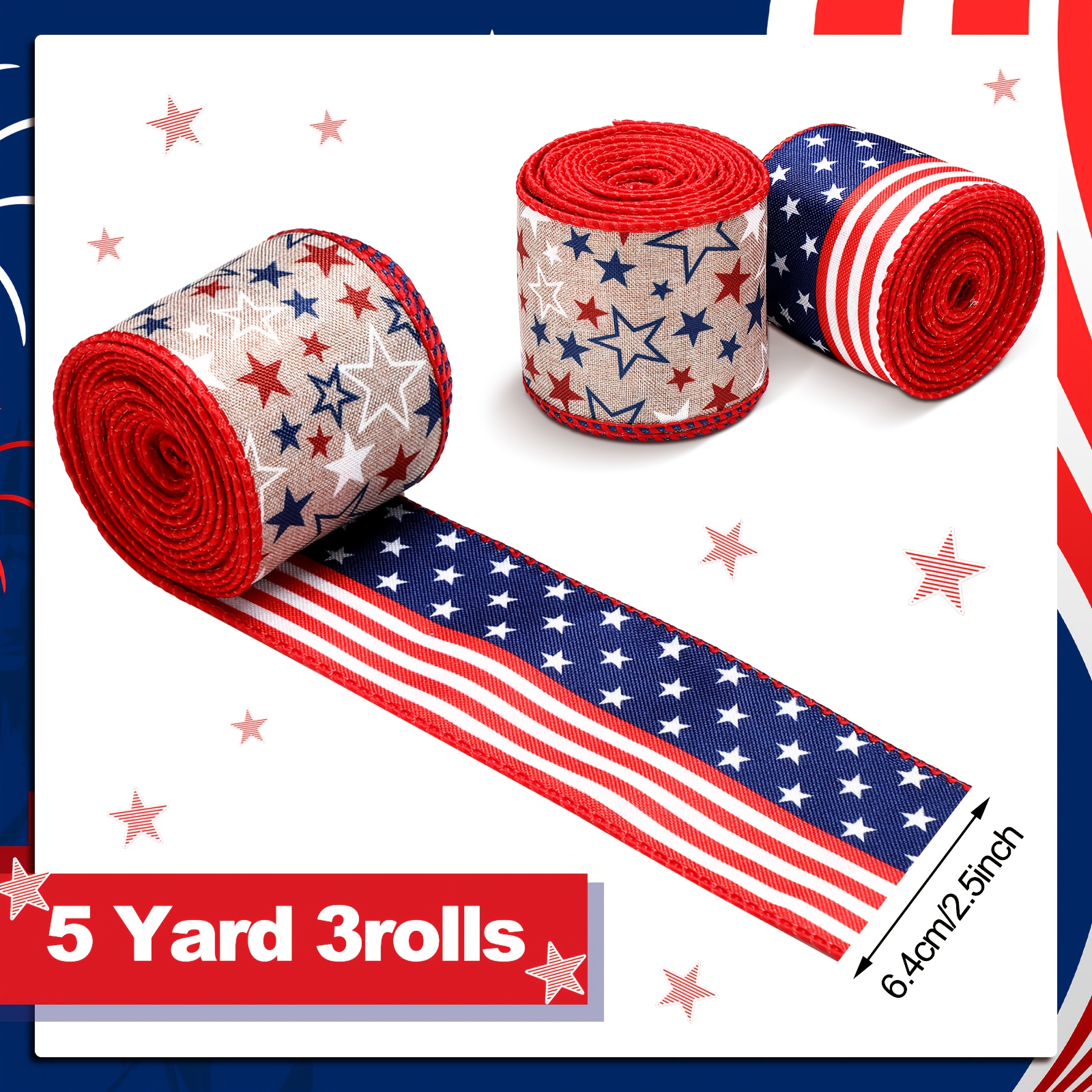 PartyDecorpro Patriotic American Flag Wired Ribbons