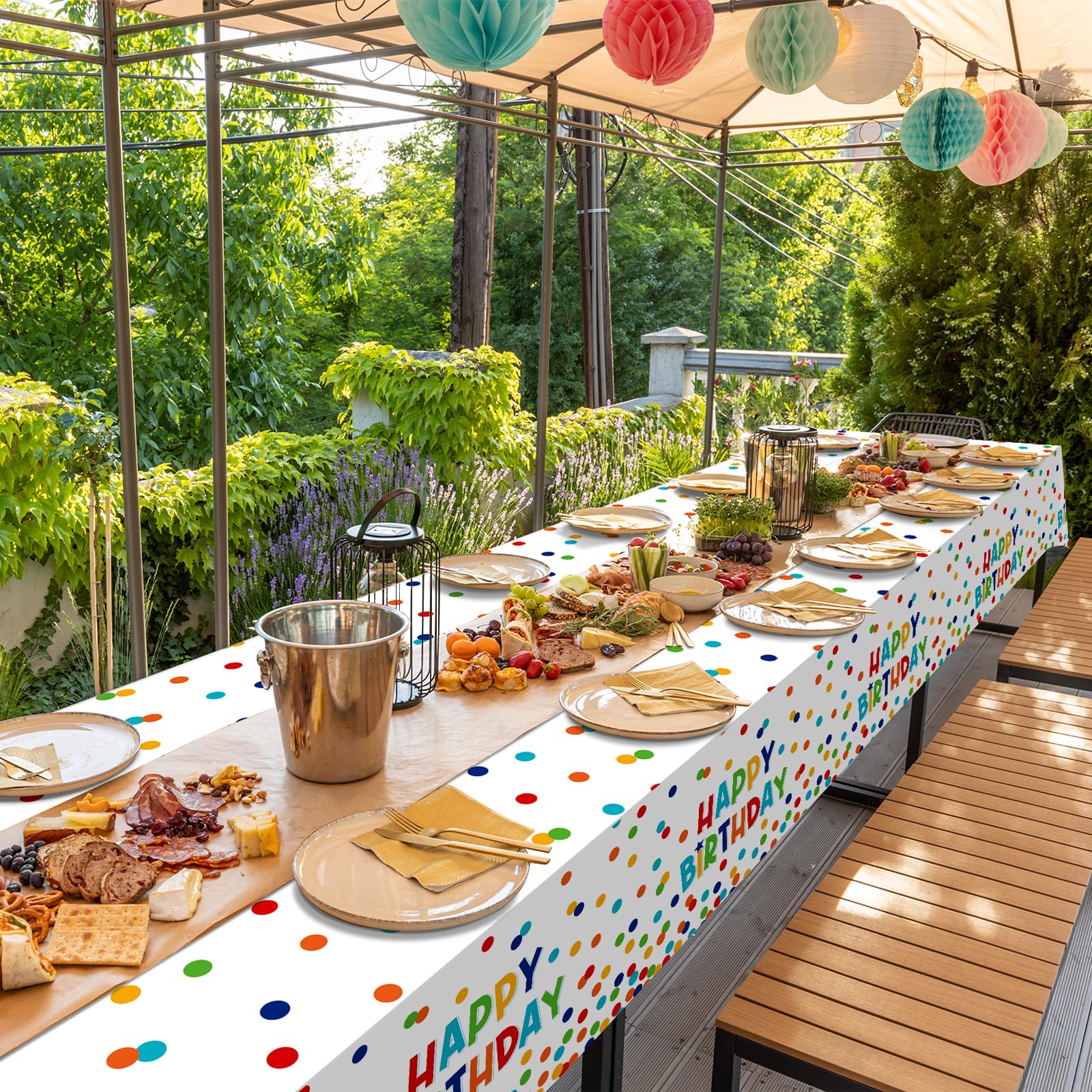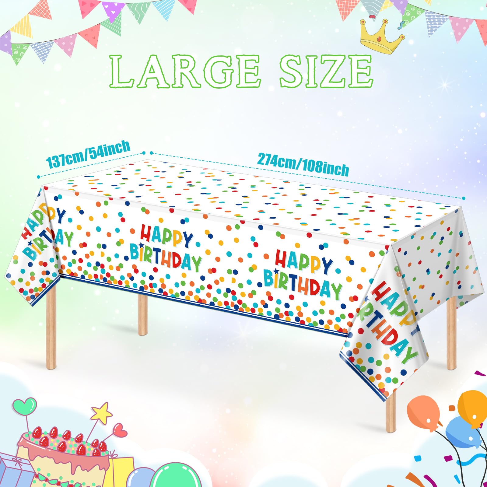 PartyDecorpro: As a professional custom tablecloth factory, we provide factory-direct OEM/ODM services. Our happy birthday tablecloth with vibrant polka dots brings festive joy. Ideal for party supplies wholesale needs, offering custom logo, pattern, style and size options.