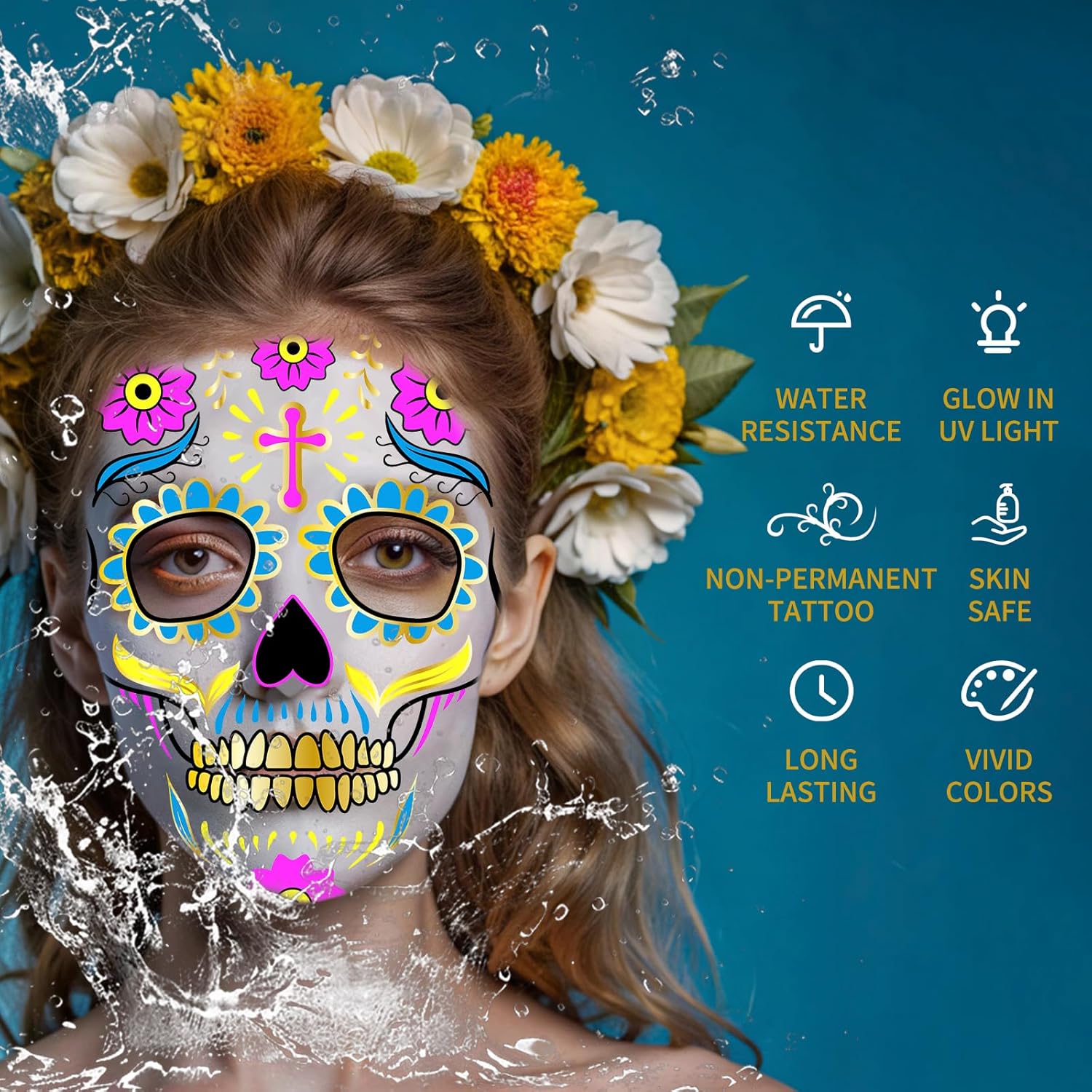 PartyDecorpro: We offer custom temporary tattoos with high-quality OEM/ODM services. Our day of the dead face tattoos provide vibrant glow designs ideal for festive events. Perfect for oem party decorations needs with flexible MOQ, wholesale options and custom logo, pattern, style or size.