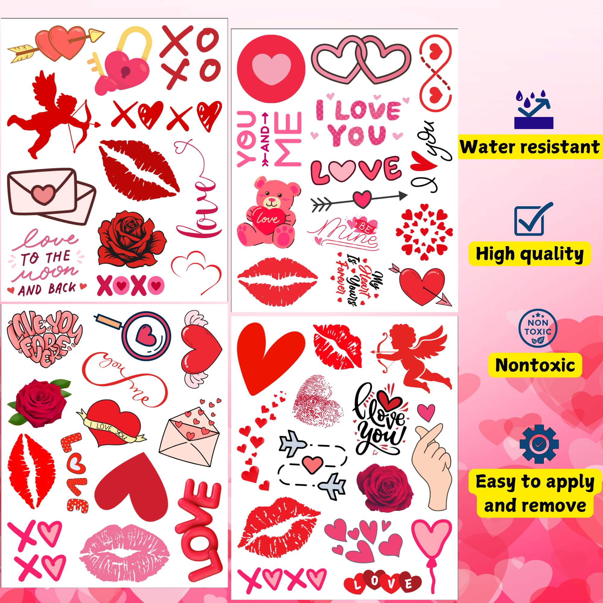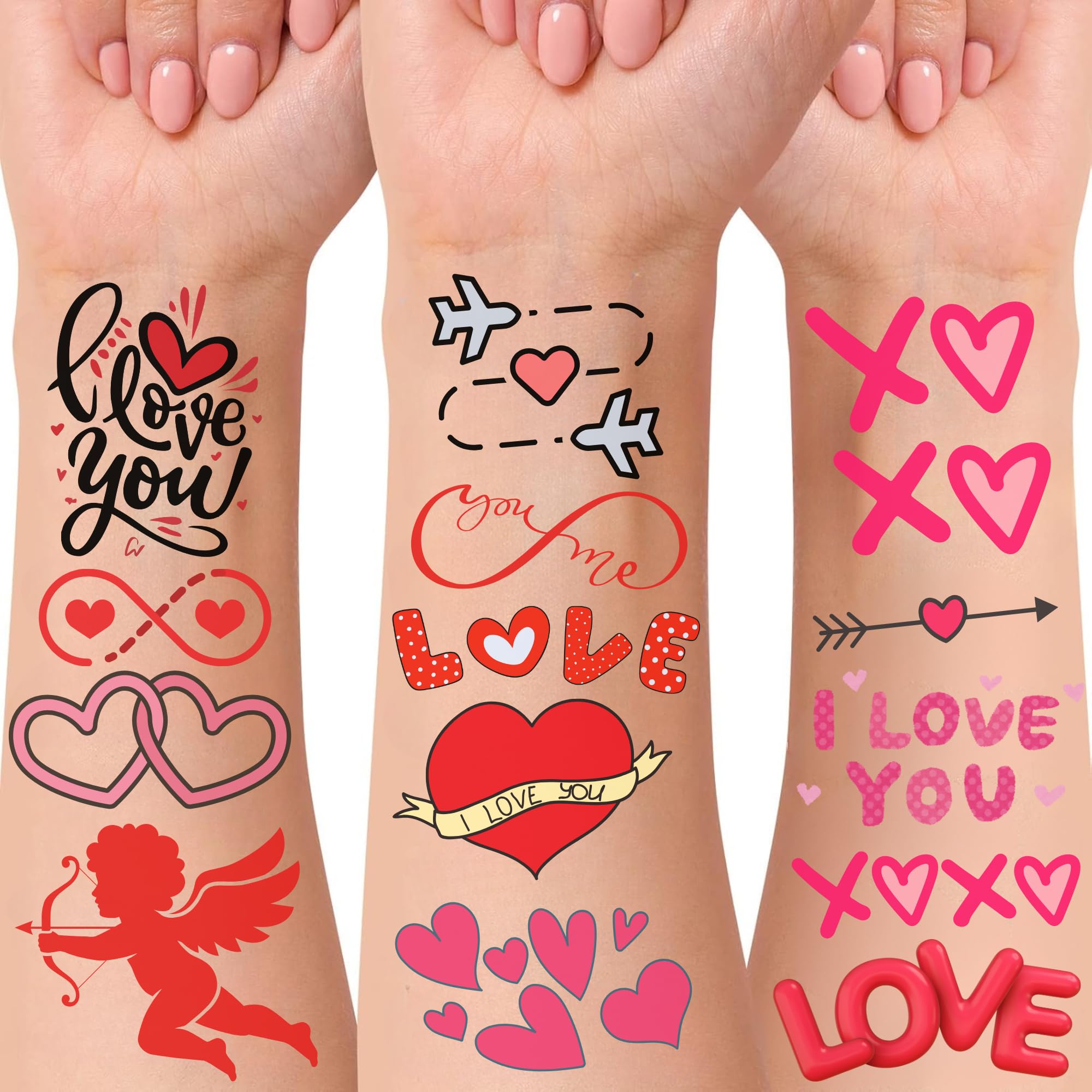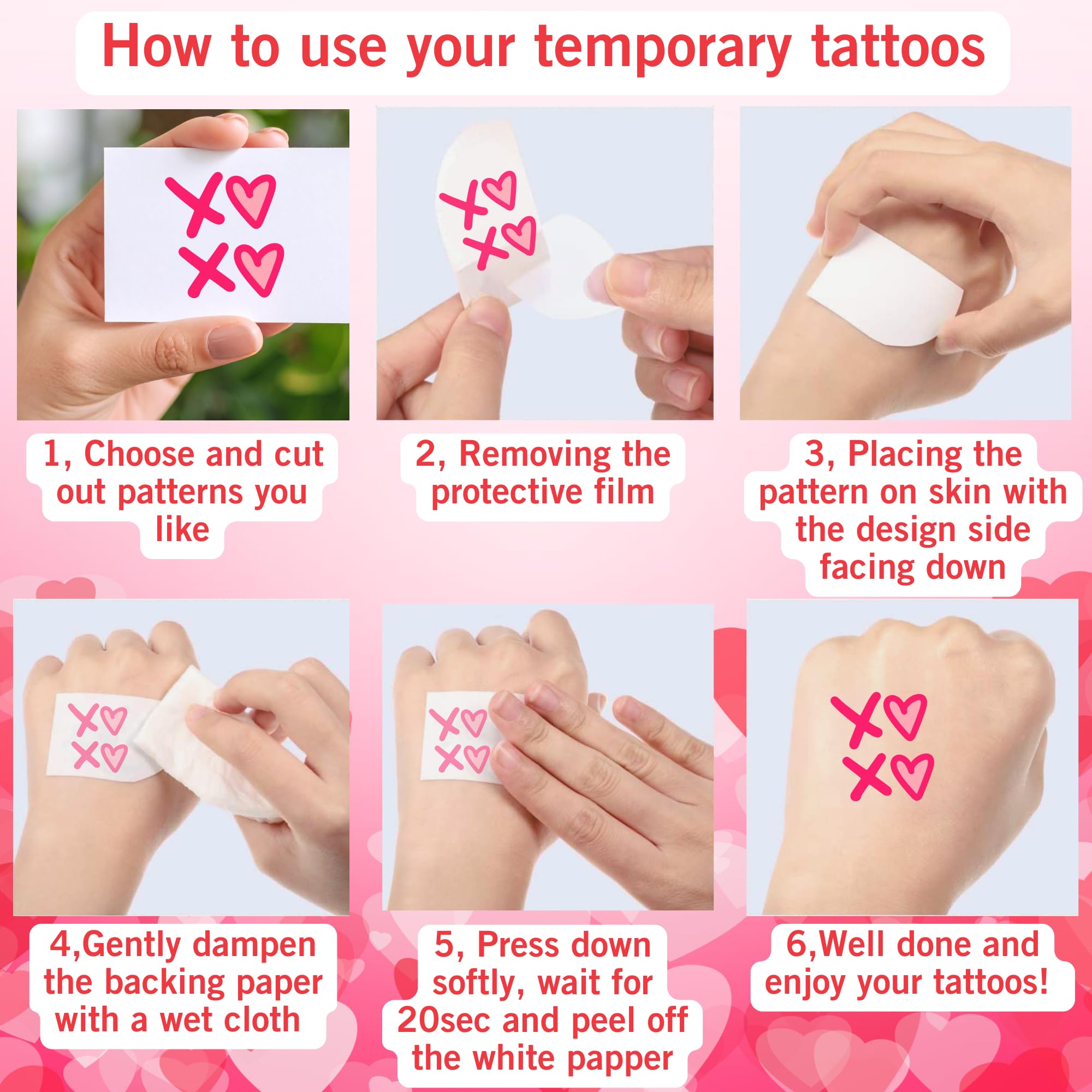 Waterproof valentine temporary tattoos with romantic designs. Custom temporary tattoos manufacturer offers OEM wholesale for patterns, logos and styles. Ideal party favors.