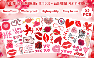 Valentine Temporary Tattoos PartyDecorpro: As a professional temporary tattoos manufacturer, we provide OEM/ODM services globally. Our valentine temporary tattoos feature romantic designs, ideal as custom temporary tattoos supplier options with wholesale for custom patterns, logos and styles.