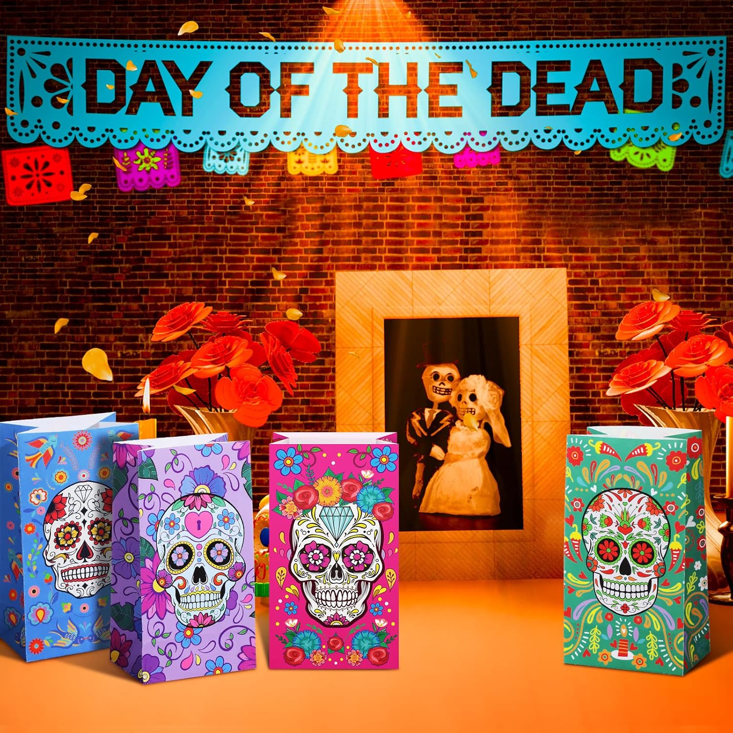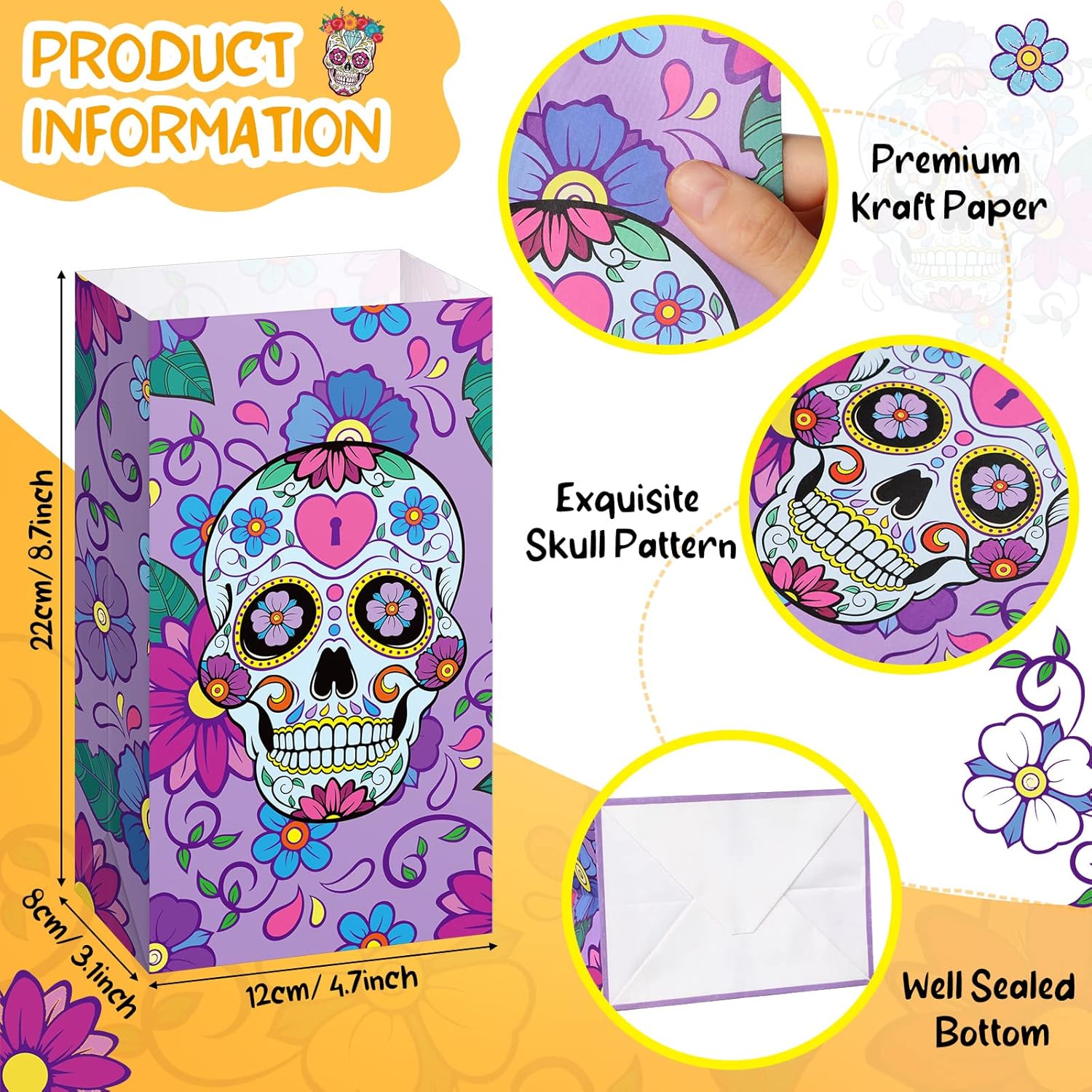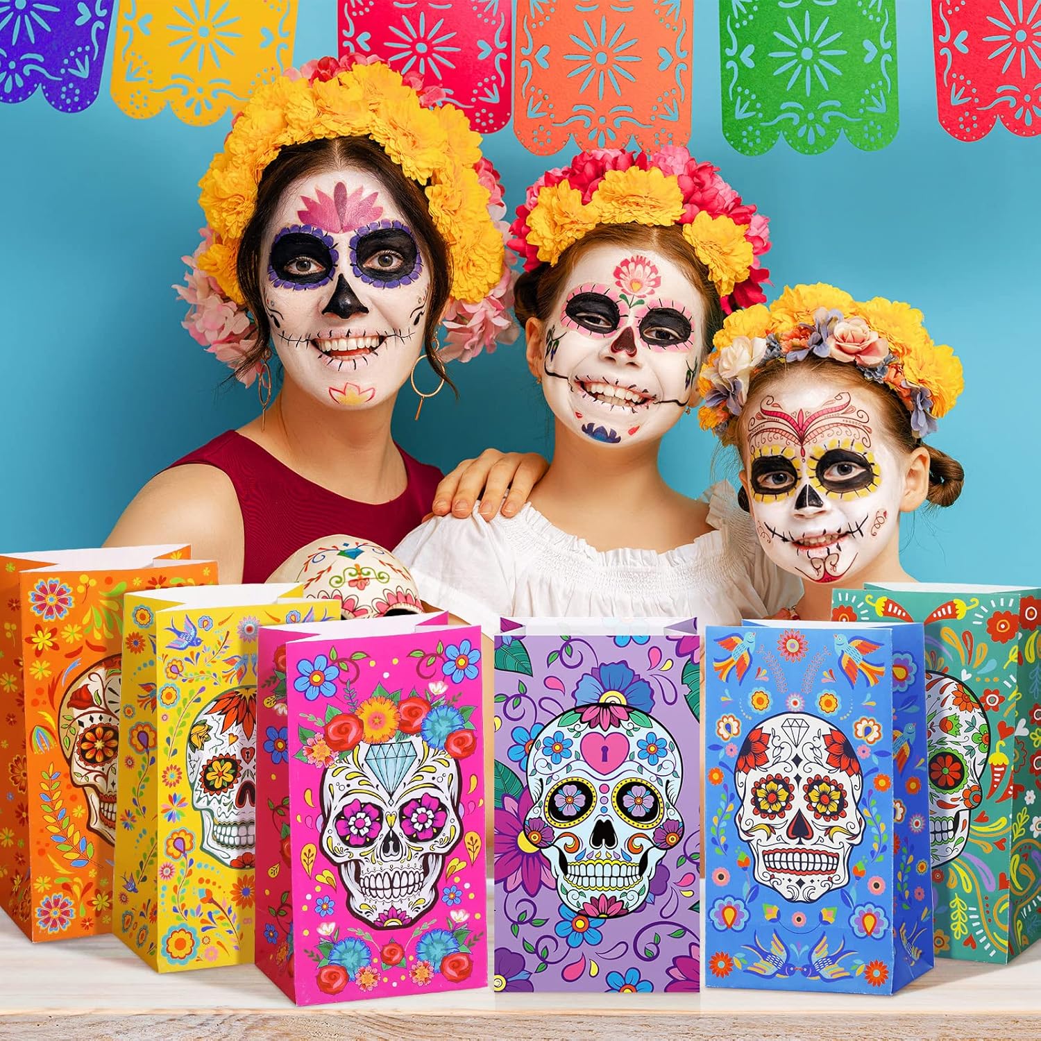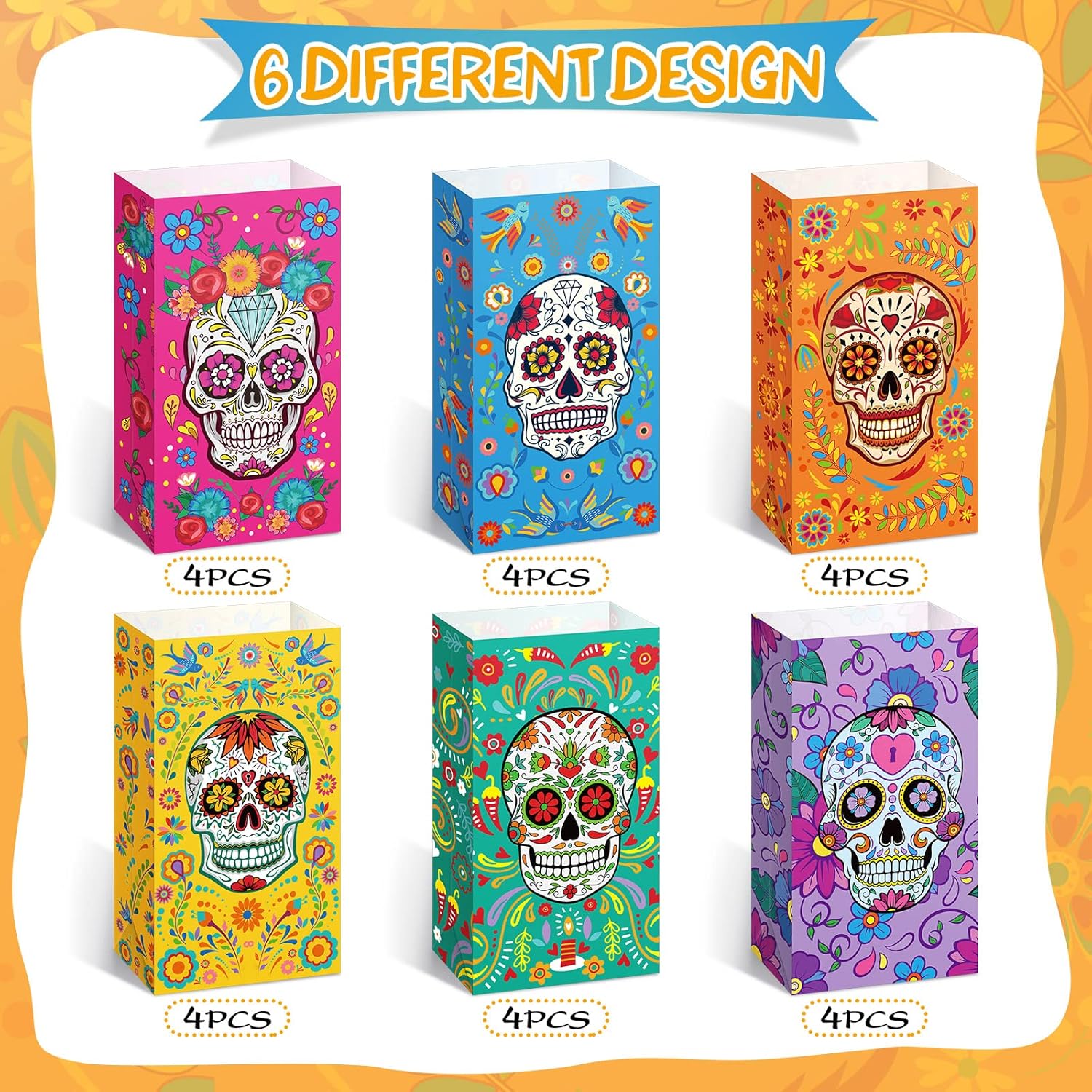 PartyDecorpro: As a professional treat bags manufacturer, we offer high-quality OEM/ODM services worldwide. Our Day of the Dead candy bags feature vibrant sugar skull designs on sturdy kraft paper. Ideal for festival decorations wholesale and custom treat bags needs, with flexible MOQ for personalized logo, pattern, style and size.