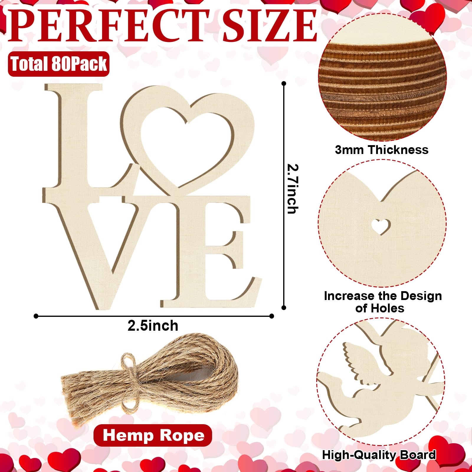 Premium Valentine’s Day wooden craft ornaments and custom unfinished wood cutouts for DIY. Wholesale wooden craft ornaments with OEM support for custom logos, patterns and sizes.