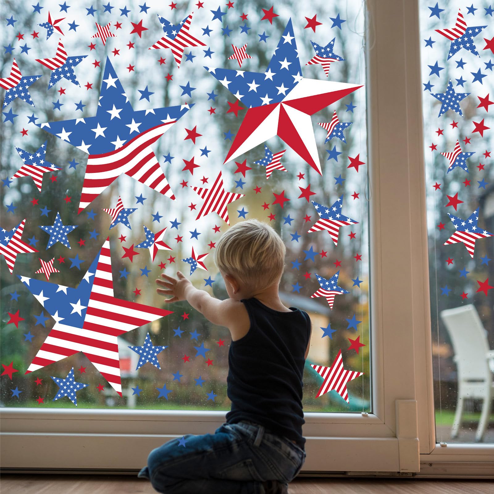 PartyDecorpro 4th of July Window Clings:American Flag & Stars