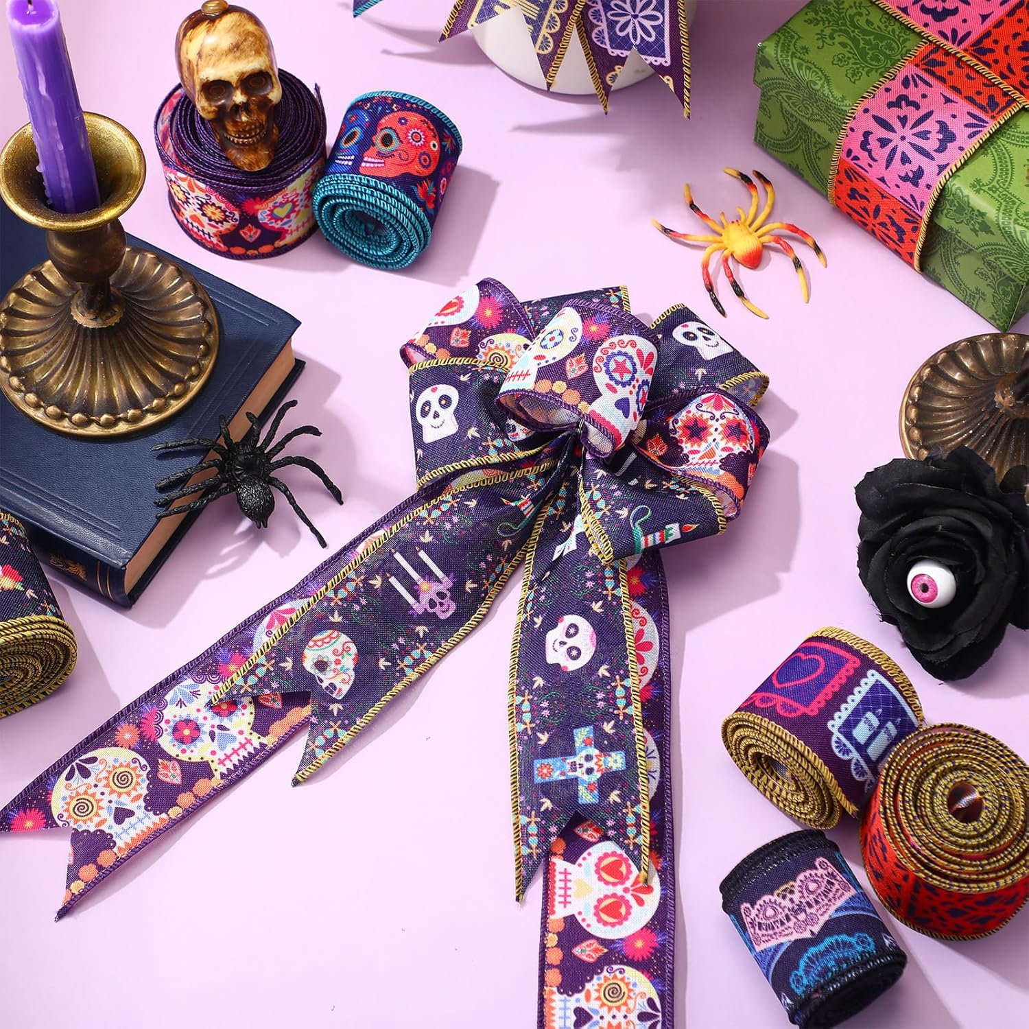 PartyDecorpro: As a custom wired ribbon manufacturer, we provide day of the dead ribbon wholesale solutions. This holiday wreath making ribbon is perfect for OEM custom logo, pattern, and size needs.