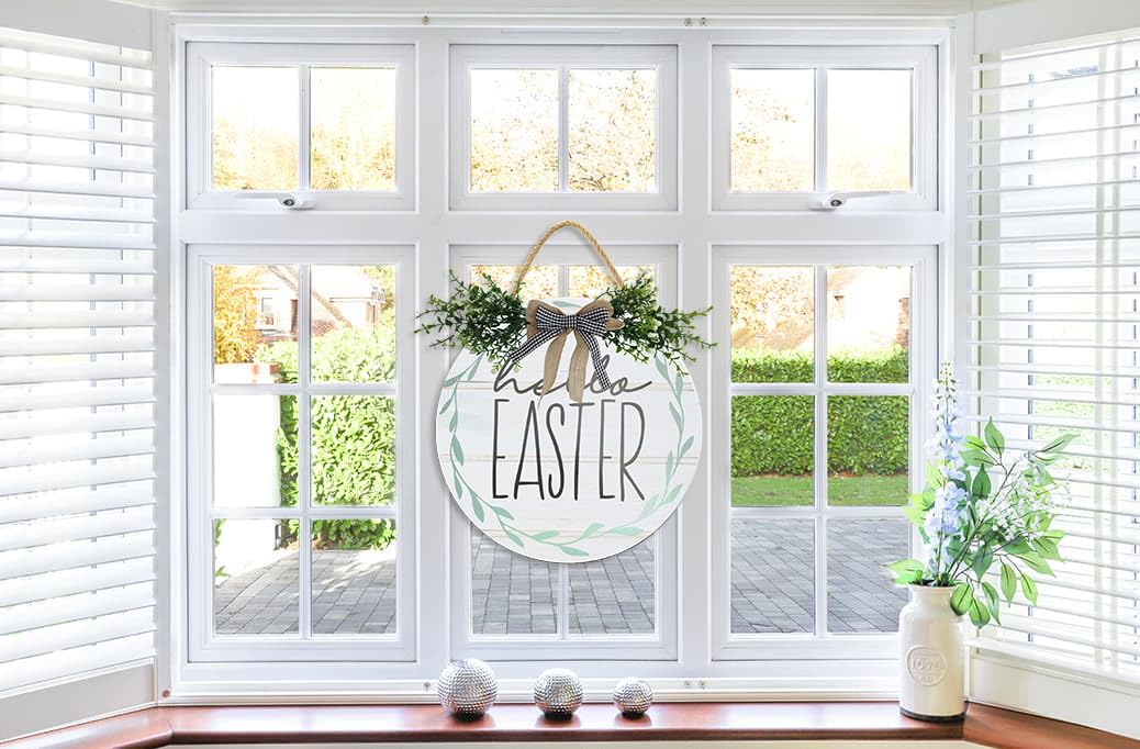PartyDecorpro: Leading wooden hanging sign manufacturer and custom wooden door sign supplier for global B2B clients. This easter wooden hanging sign features customizable patterns, bow and greenery. As professional custom holiday supplies supplier, we offer OEM/wholesale rustic Easter decor for homes, cafes and stores.