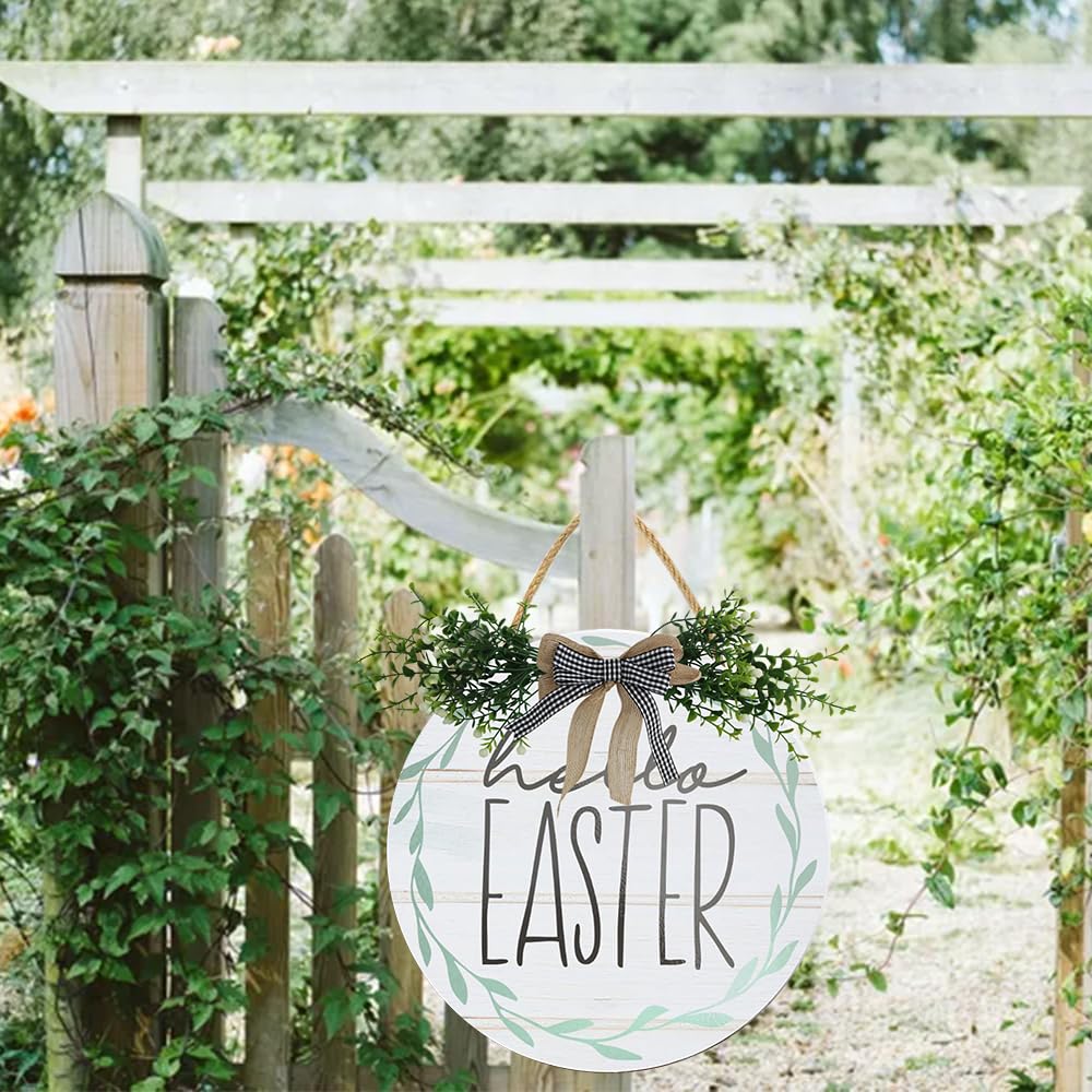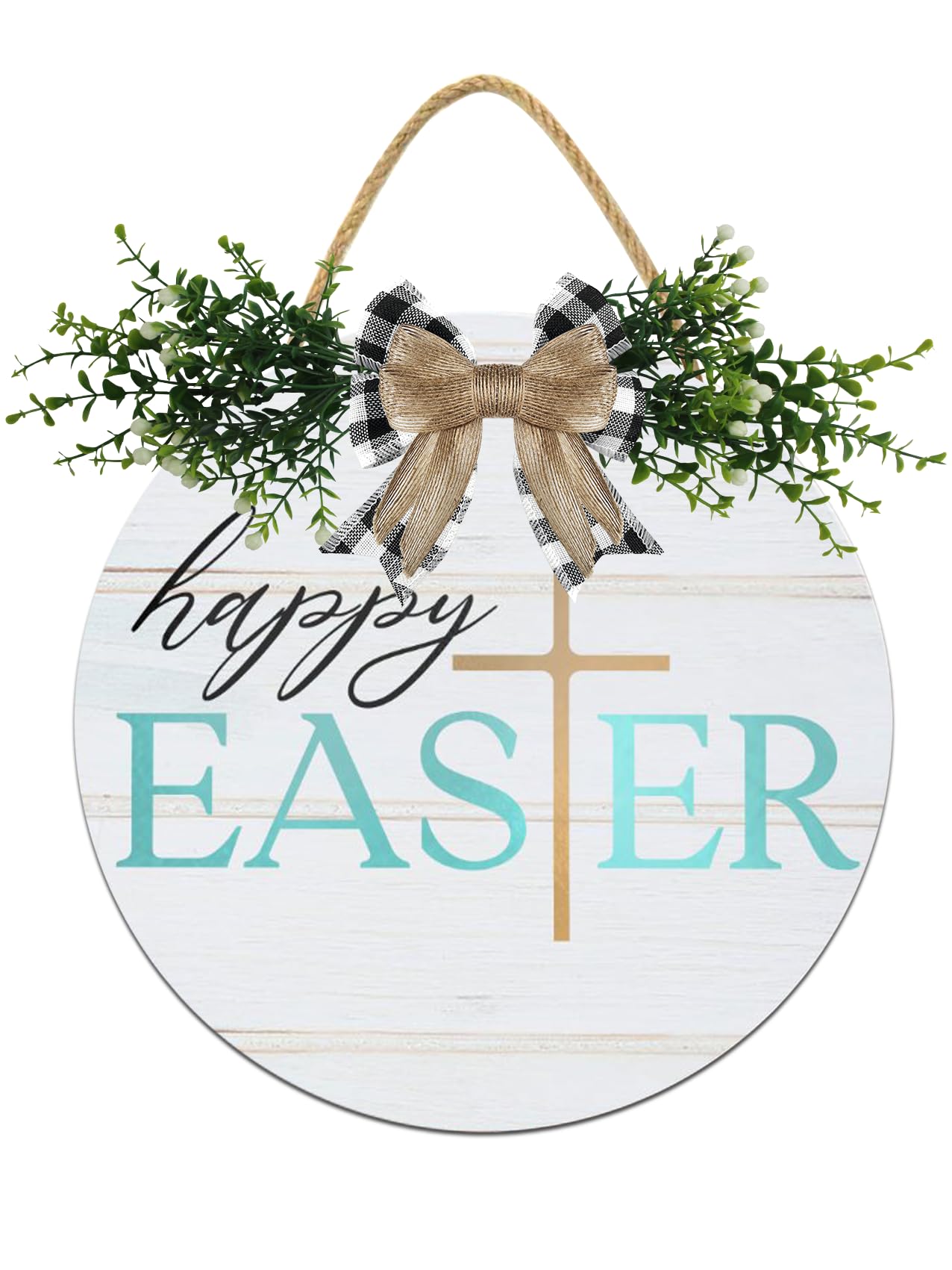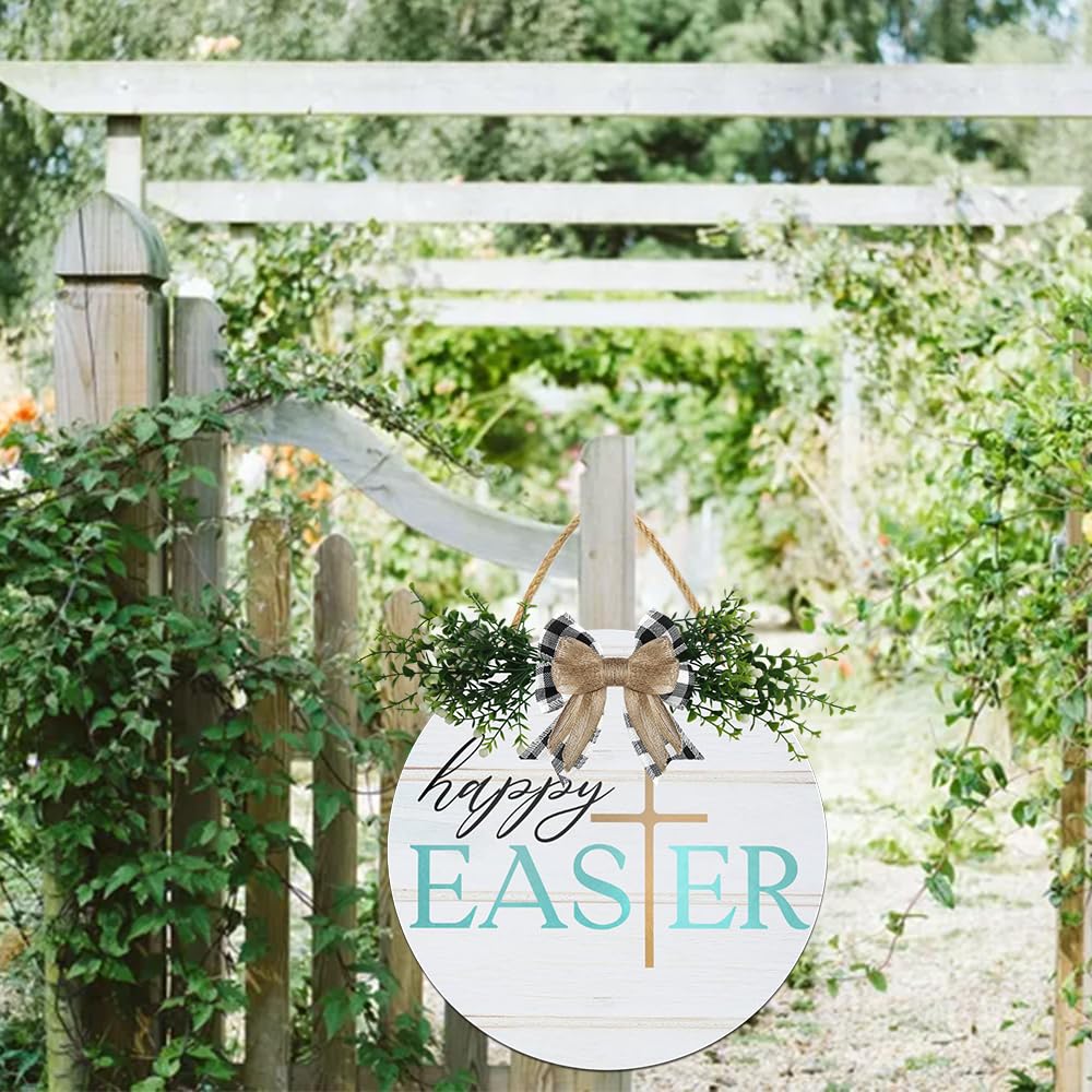 Easter Door Sign:Rustic Wooden Hanging Wreath with Bow