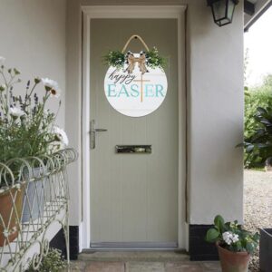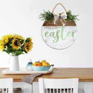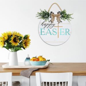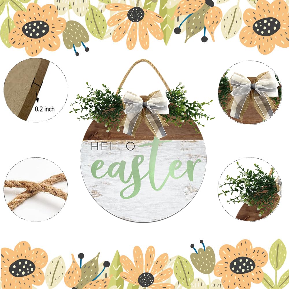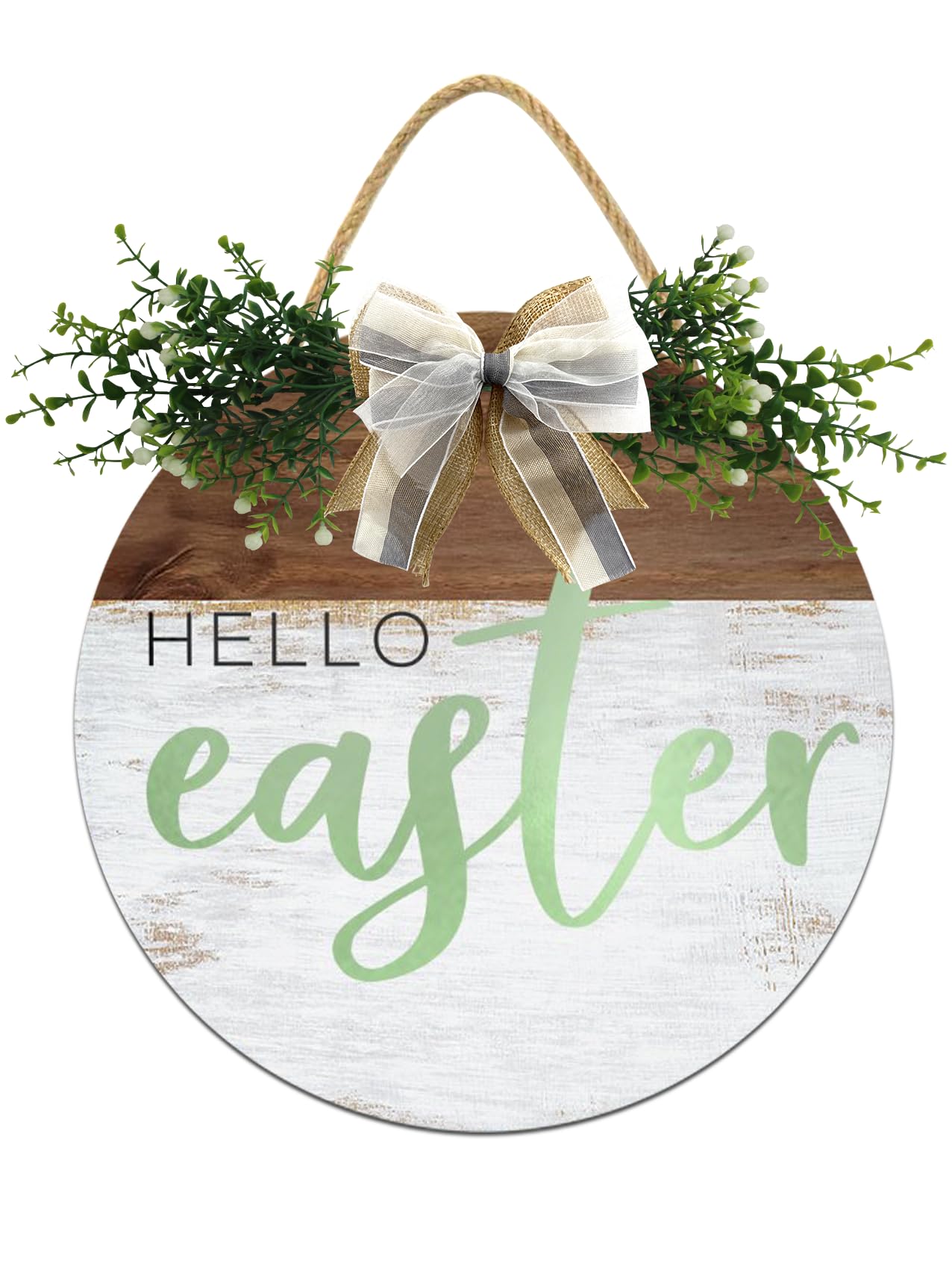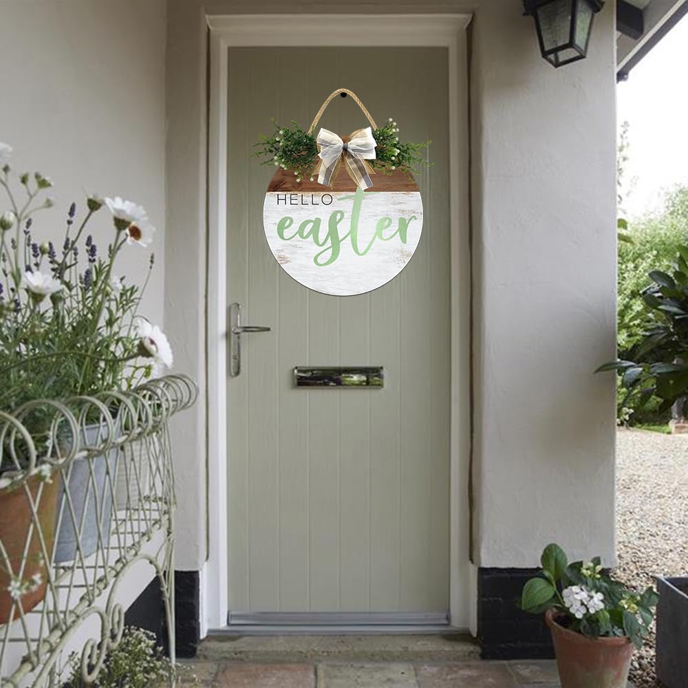 Easter Door Sign:Rustic Wooden Hanging Wreath with Bow