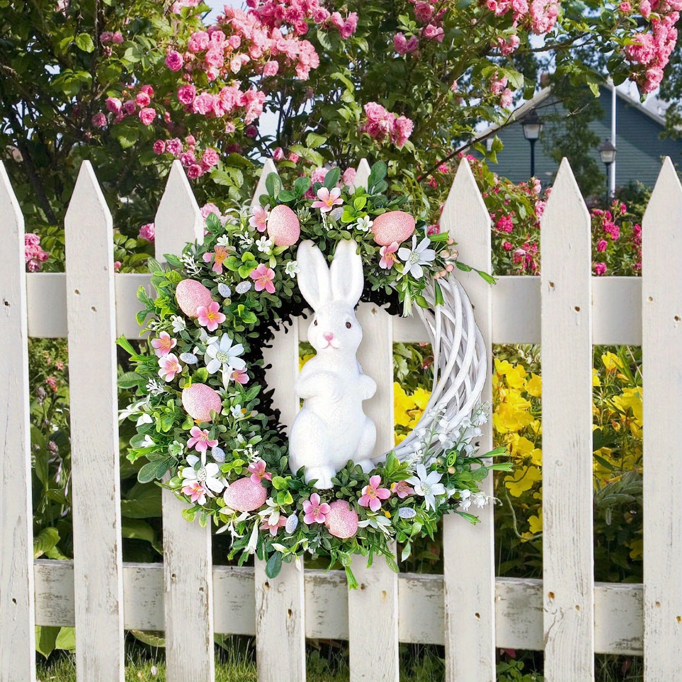 PartyDecorpro: Leading custom wreath manufacturer and reliable wreath supplier, delivering premium OEM services worldwide. This easter bunny wreath features vibrant eggs and flowers, perfect for spring doors. Ideal for B2B wholesale and custom wreath projects.