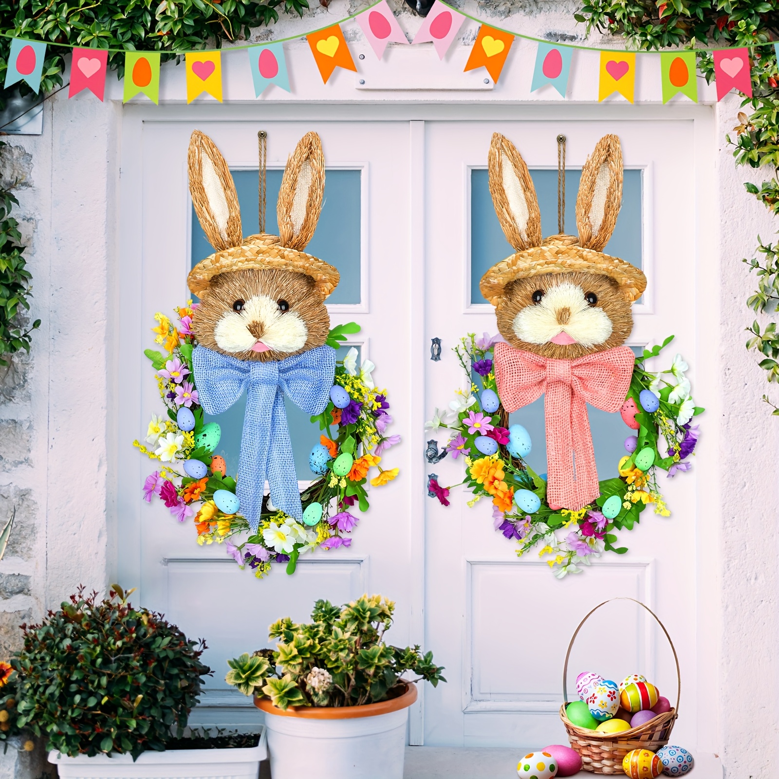 Easter Bunny Wreaths:Classic Rabbit Floral Door Decor