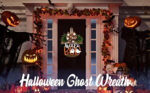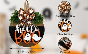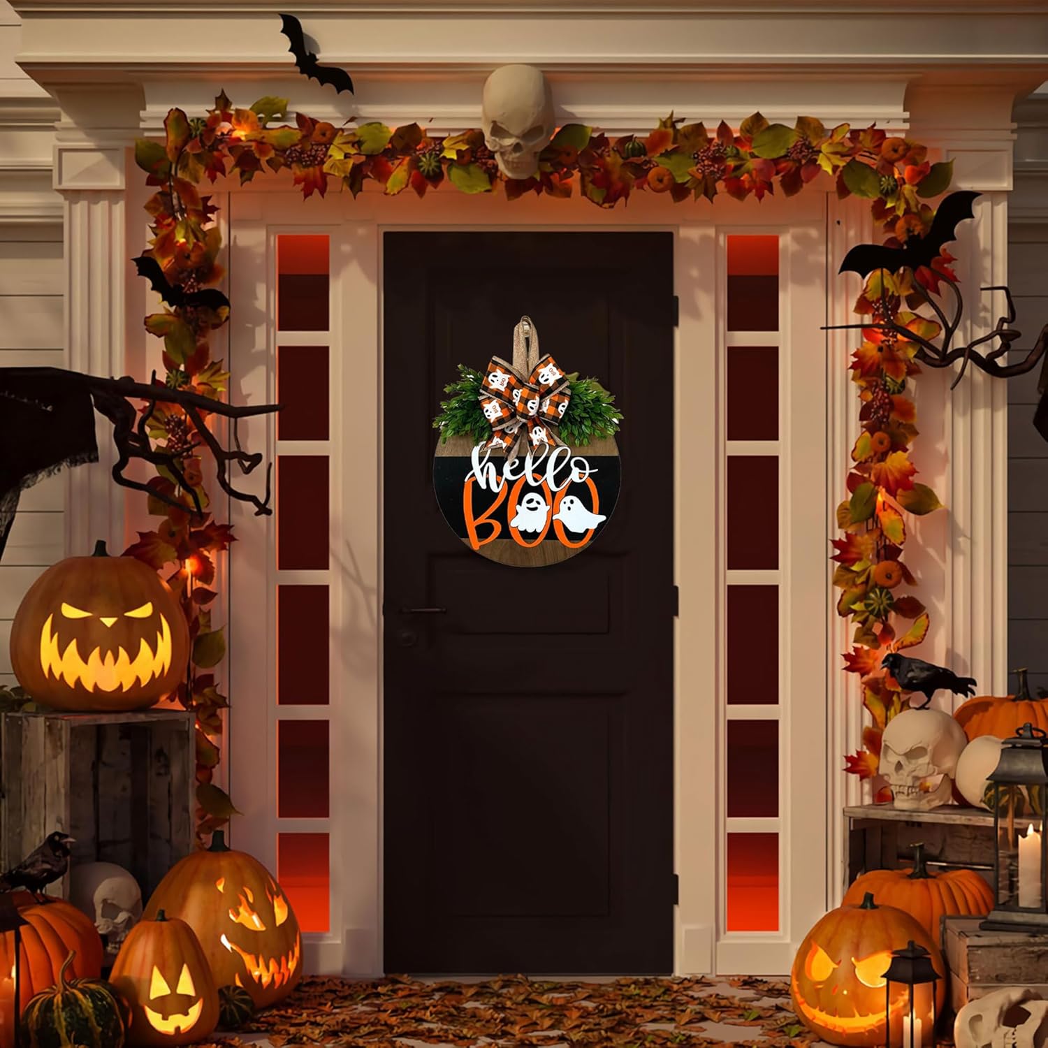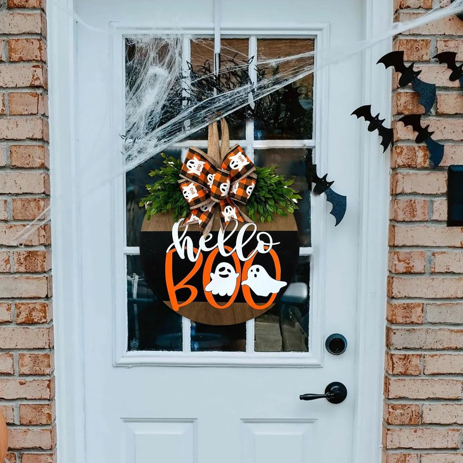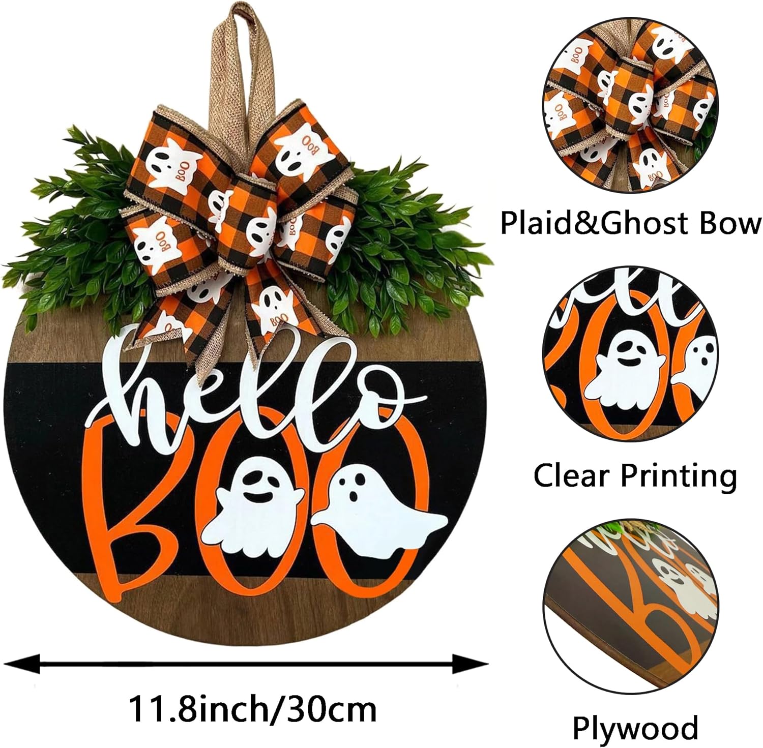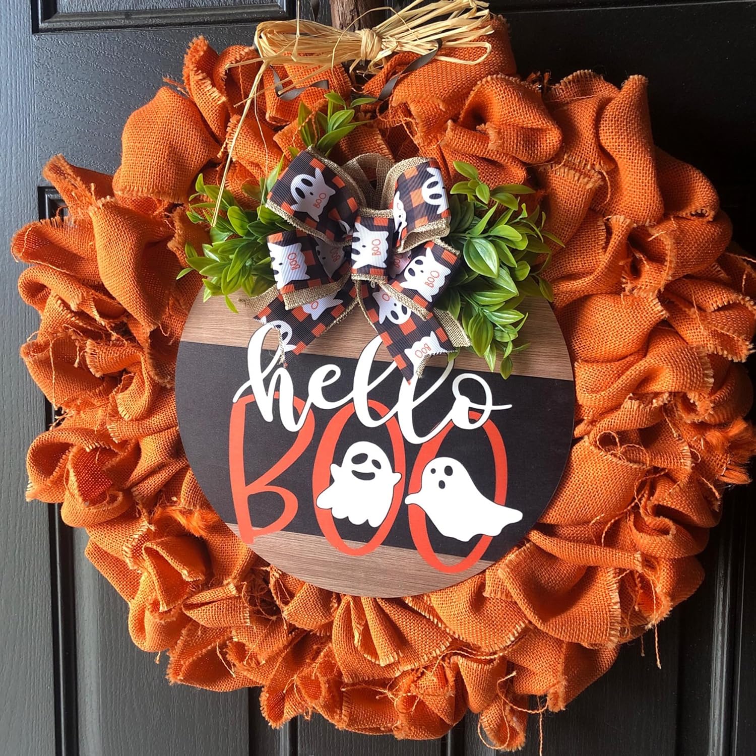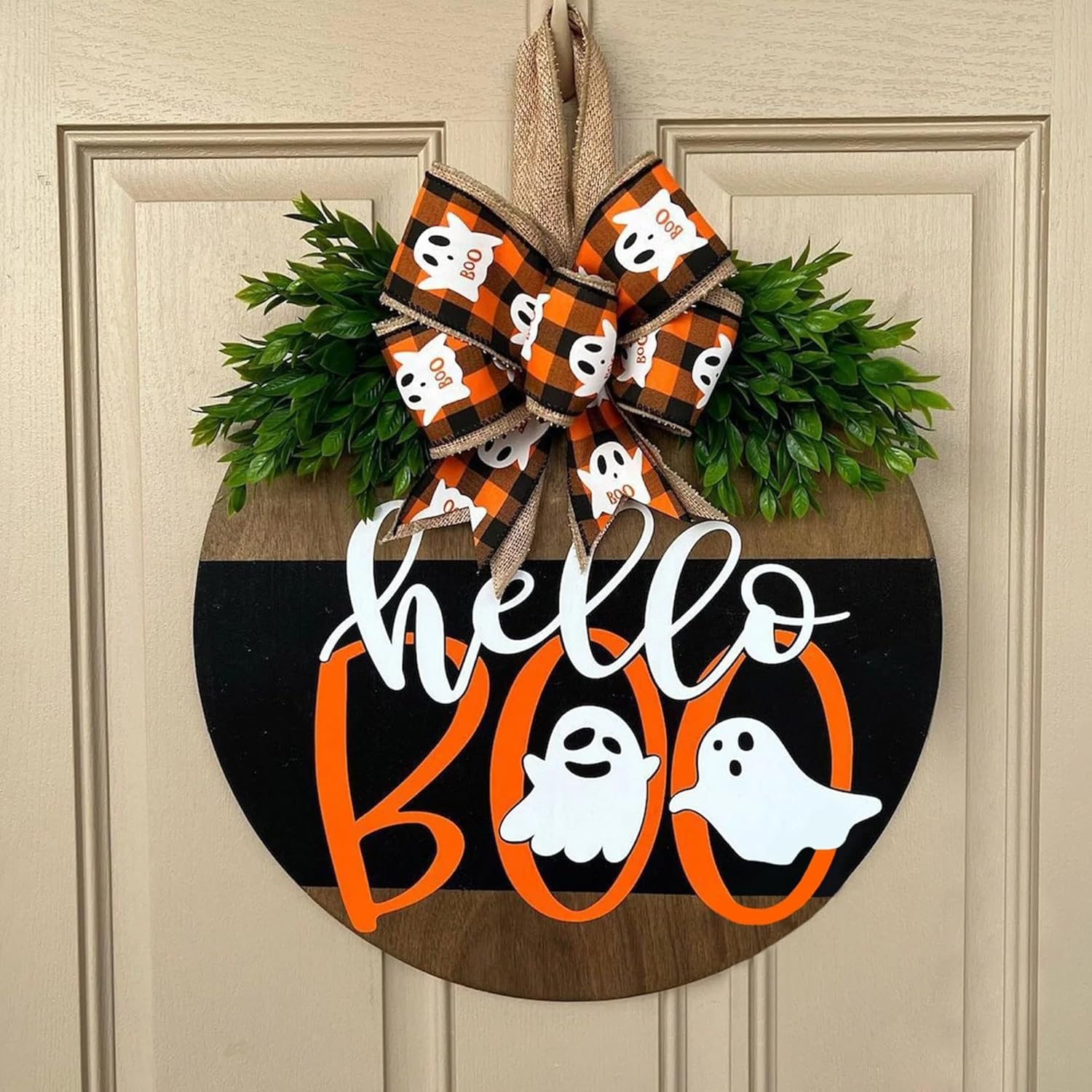 Halloween Ghost Wreath – Hello Boo Wooden Door Sign