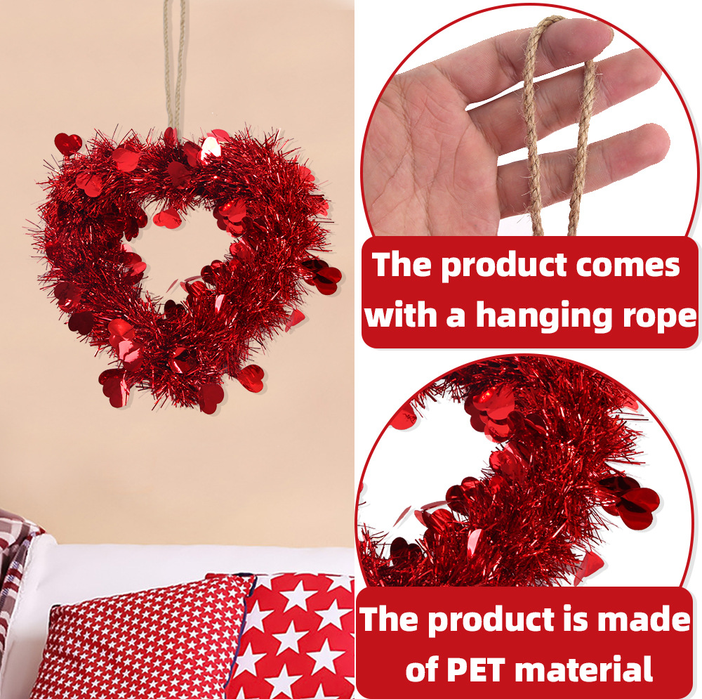 Premium valentine’s day heart wreath for tinsel wreath wholesale. As custom wreath supplier, we offer OEM customization of logo, pattern, style and size for bulk orders.