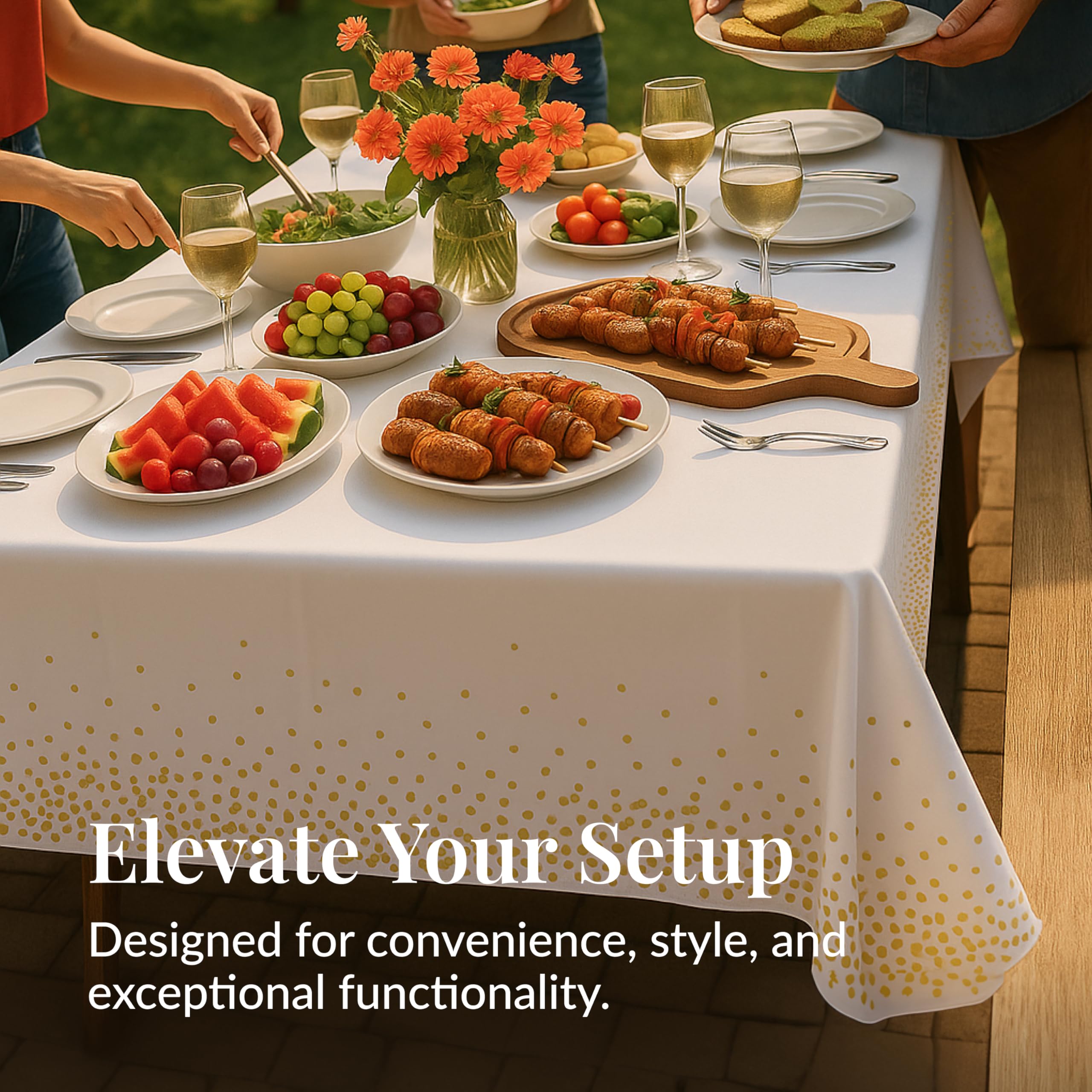 PartyDecorpro: As a leading disposable tablecloth manufacturer, we provide OEM/ODM services globally. Our plastic party table covers with elegant dot design suit wedding disposable tablecloth needs. Perfect for disposable tablecloth supplier and wholesale, supporting custom logo, pattern, color, size and packaging.