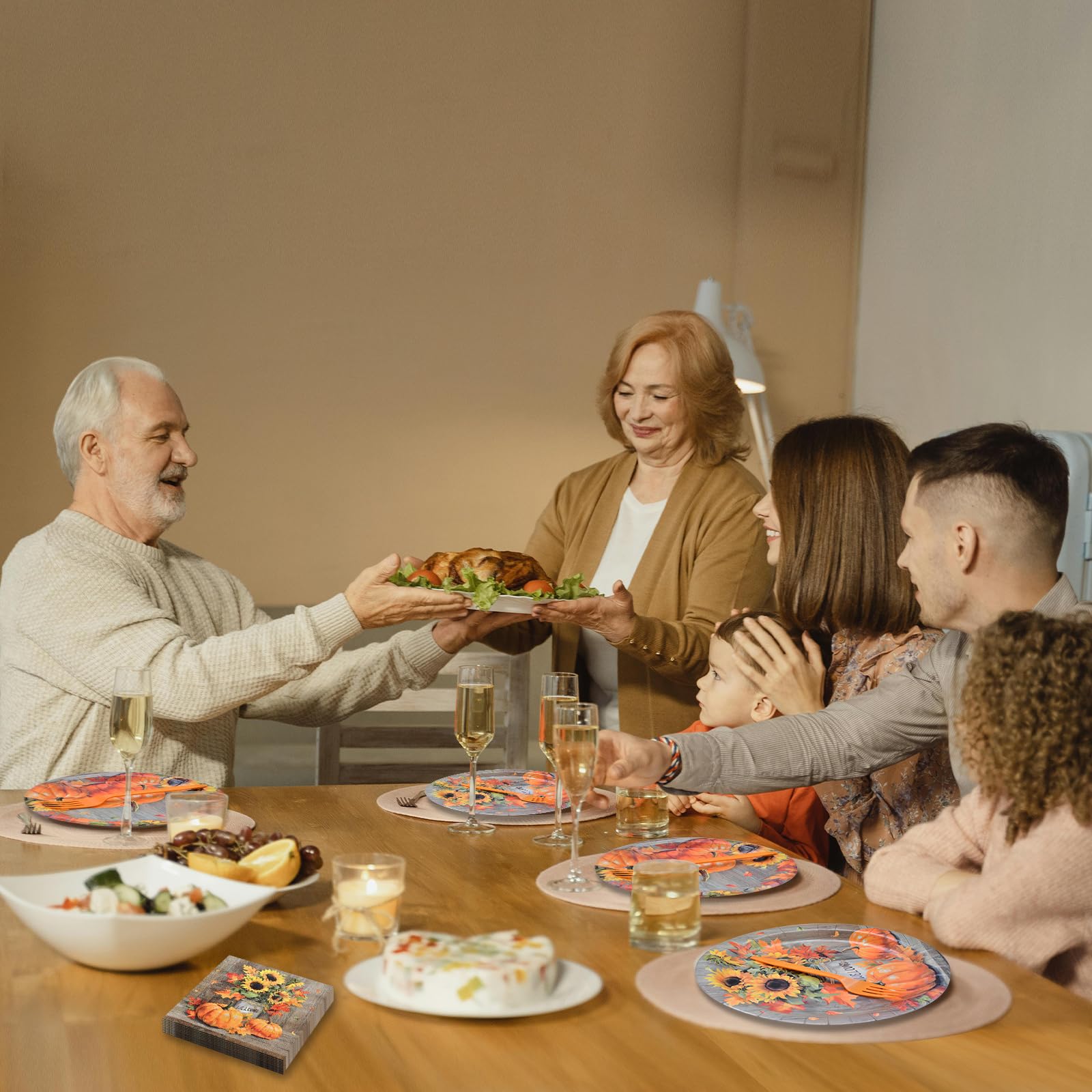 PartyDecorpro: As a leading disposable tableware manufacturer, we offer full OEM/ODM services worldwide. Premium Thanksgiving disposable tableware with rustic pumpkin & sunflower design brings warm fall vibe. Perfect for custom disposable plates supplier needs, wholesale options support custom logo, pattern, size and packaging.