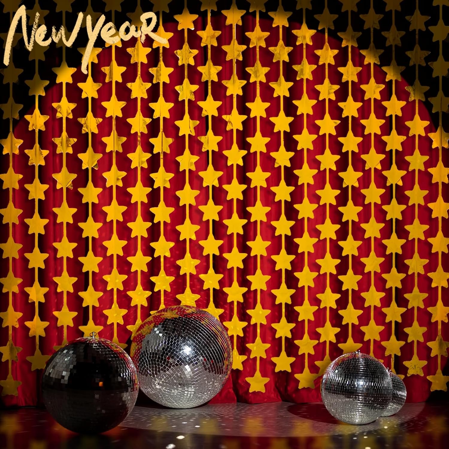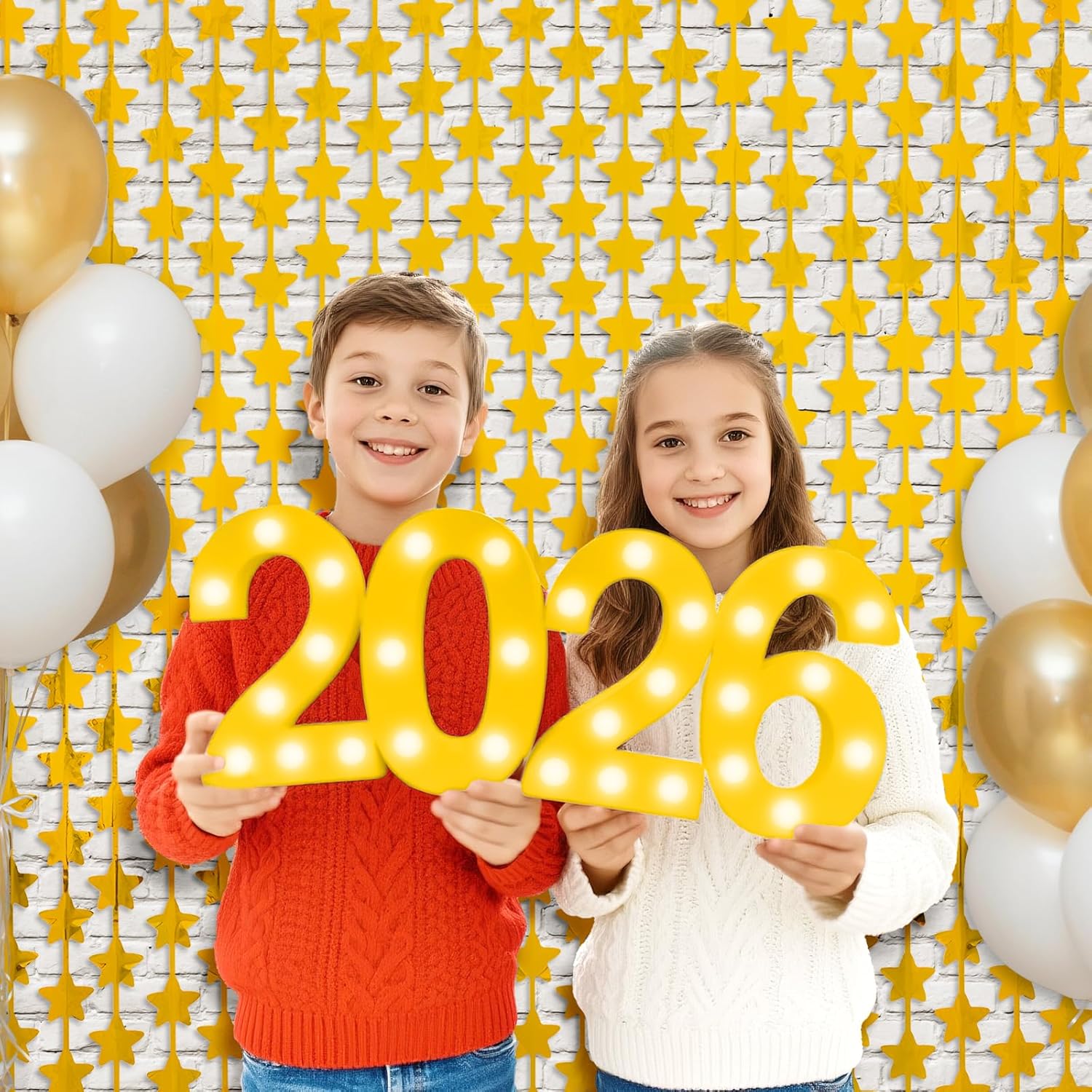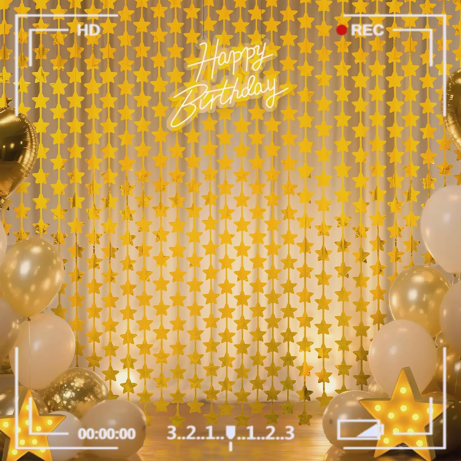 The Foil Curtain Backdrop is a two-piece set of gold star-patterned aluminum foil fringe curtains, ideal for wholesalers, party supply retailers, event companies, and e-commerce sellers catering to birthday parties, weddings, and holiday events. Each piece measures 3.3 ft wide by 6.6 ft high, offering broad coverage as a door curtain fringe or photo booth background. Its lightweight design supports bulk inventory for seasonal promotions while reducing logistics costs.