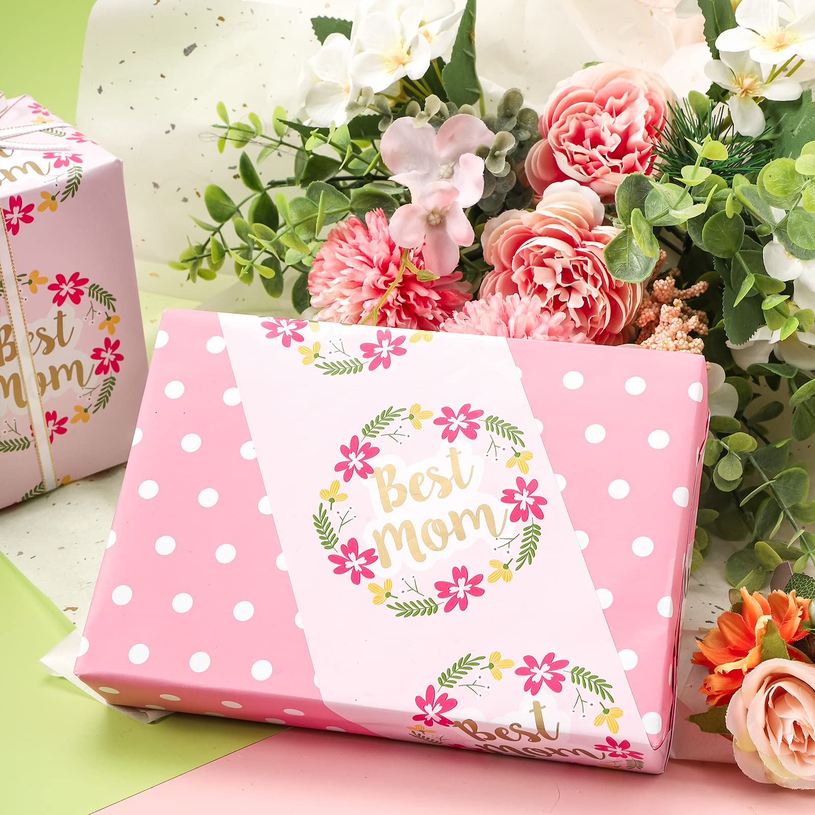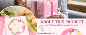 PartyDecorpro: As a professional custom wrapping paper manufacturer, we offer OEM/ODM services worldwide. Our reversible Mother’s day wrapping paper features elegant floral “Best Mom” design with metallic gold. Ideal for gift wrap supplier needs, with wholesale options for custom logo, pattern, style and size.